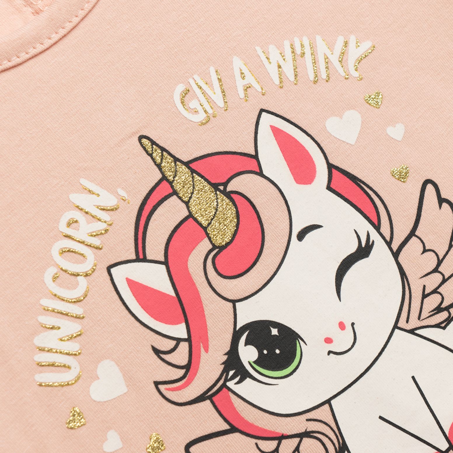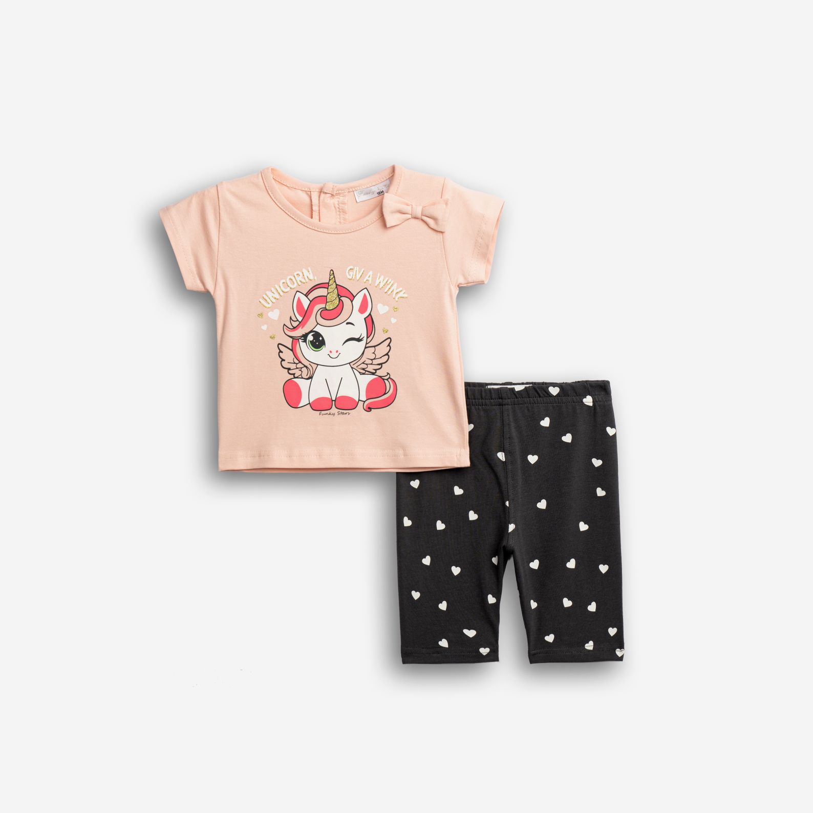 Μπλούζα κάλτσα με τύπωμα (μονόκερος) και κολάν κάπρι με τύπωμα allover σε χρώμα ροζ πούδρας/ανθρακί για κορίτσι μηνών