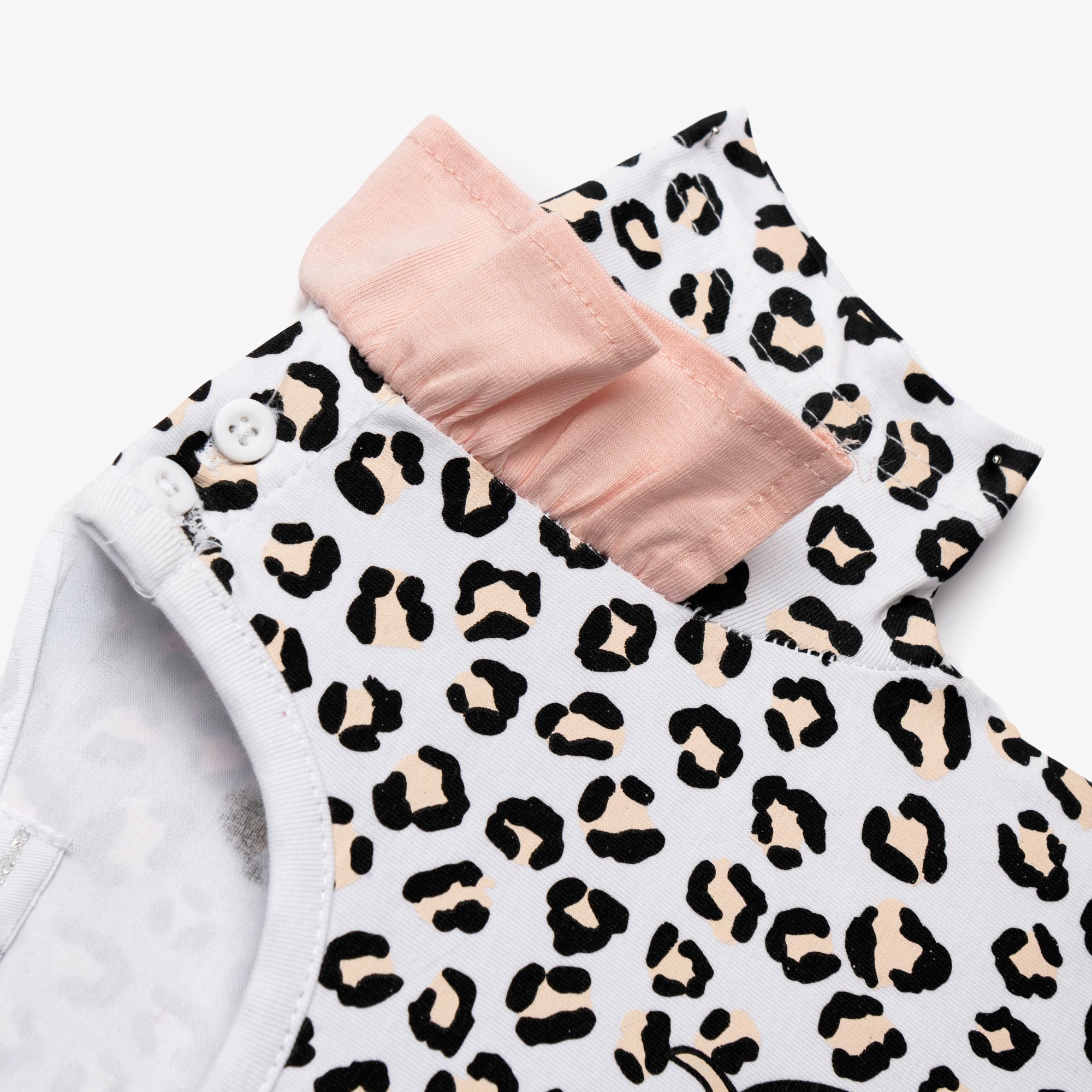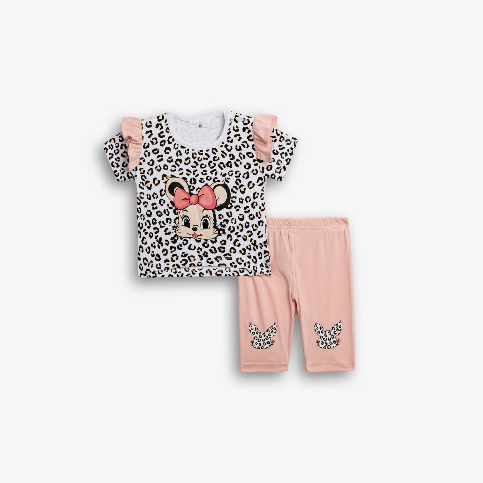 Μπλούζα κάλτσα με τύπωμα (ποντικάκι) allover και κολάν κάπρι με τύπωμα σε χρώμα λευκό-ροζ πούδρας/ροζ πούδρας για κορίτσι μηνών
