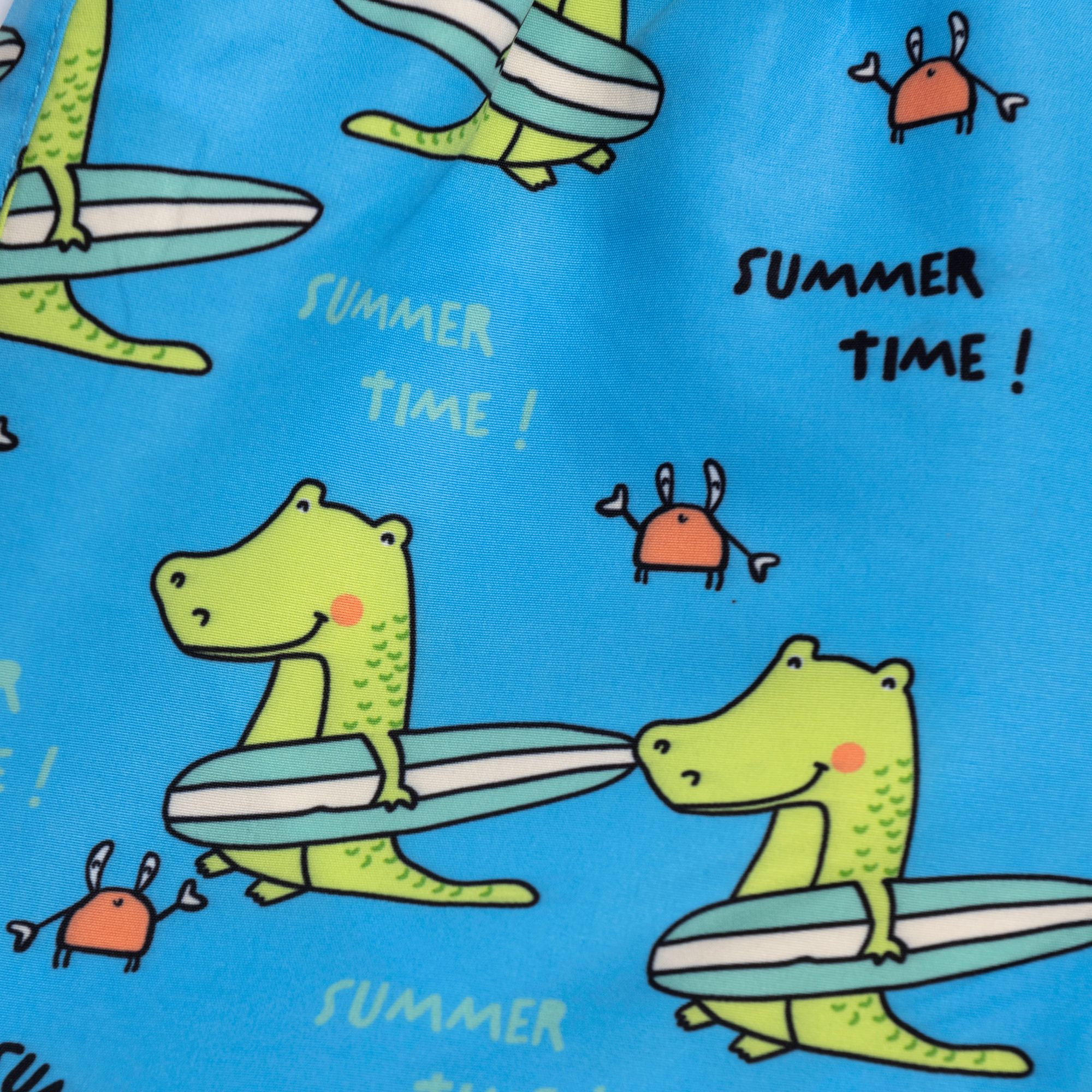 Swimwear corduroy with printing (crocodiles) in color fluorescent turqoise for boys 1-6 years