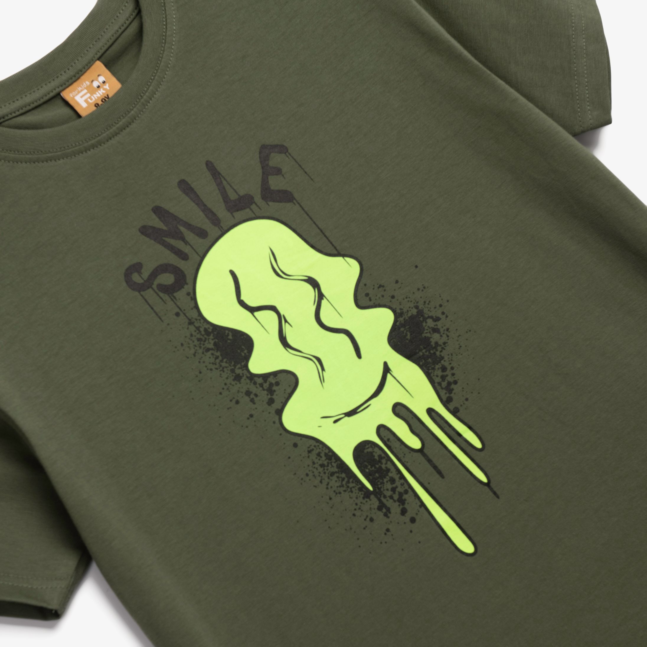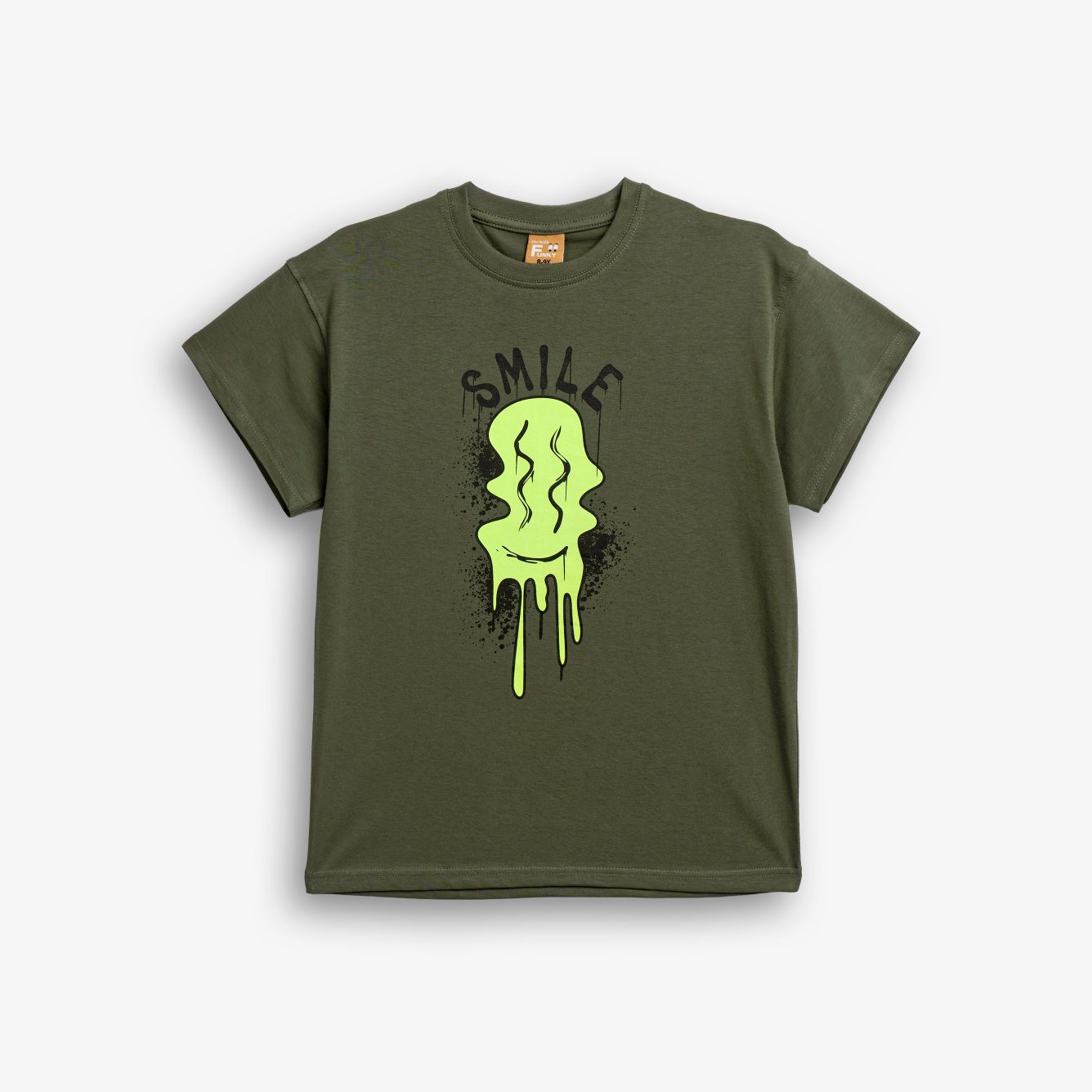 T-shirt jersey with printing (faces) in color khaki for boys 6-16 years