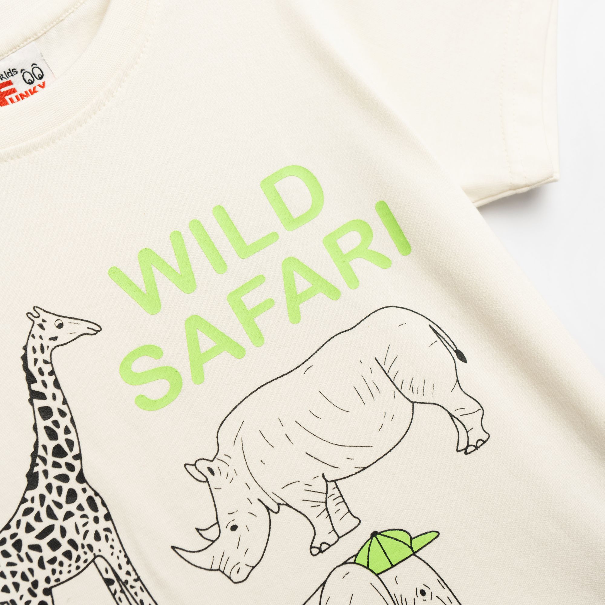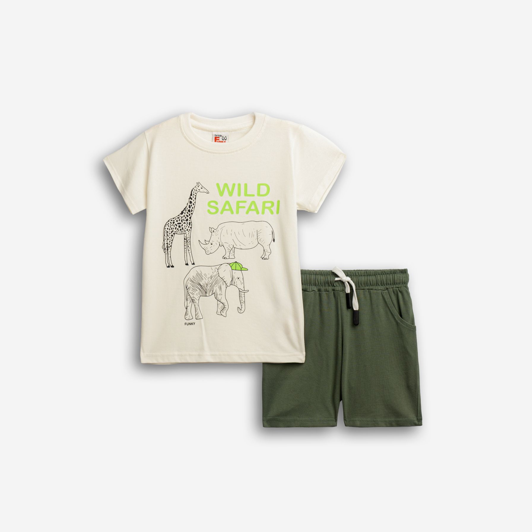 Set T-shirt with printing (safari) and corduroy up to knee in color ecru/khaki for boys 1-6 years