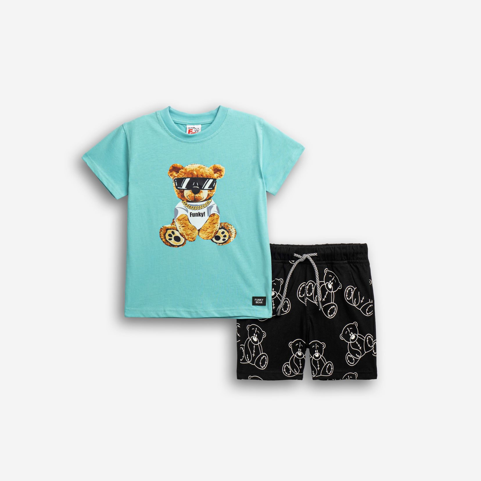 Set T-shirt with printing (teddy bear) and corduroy up to knee with printing allover in color turquoise/black for boys 1-6 years