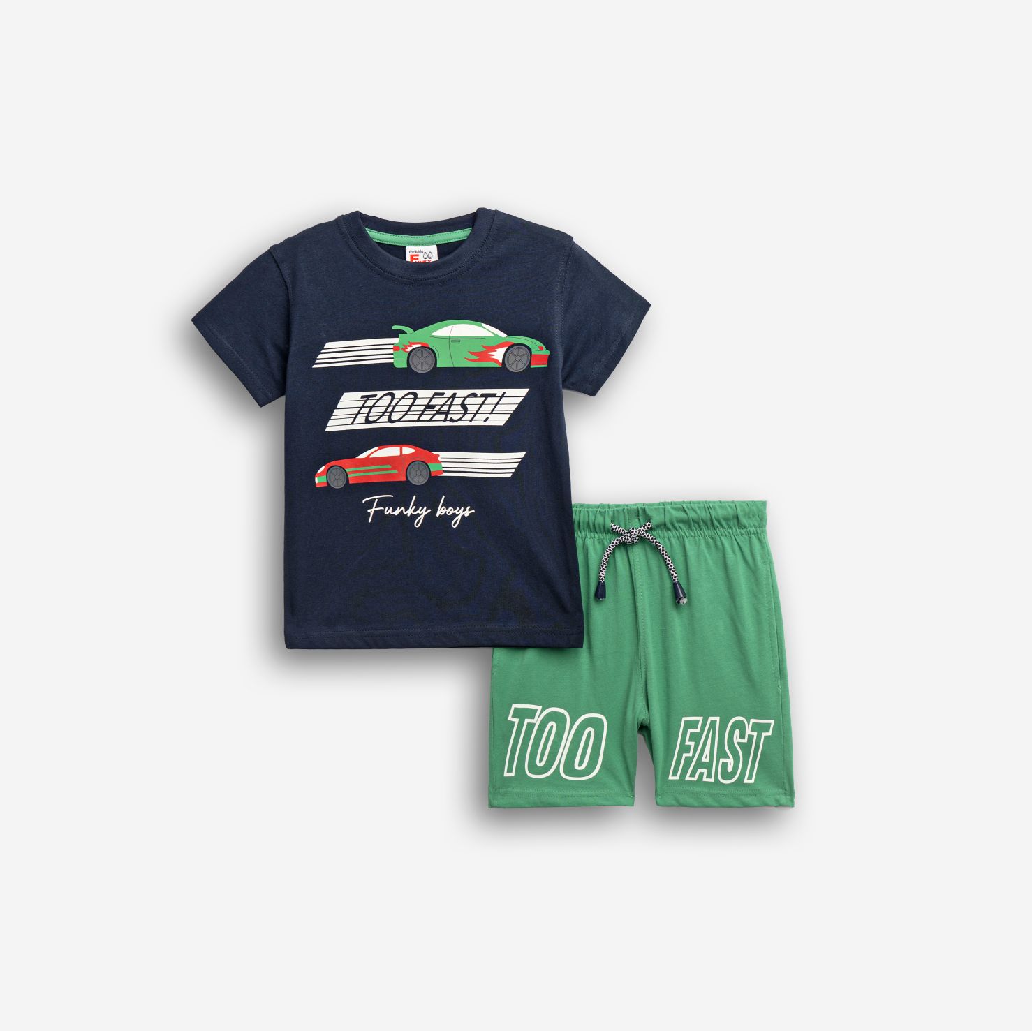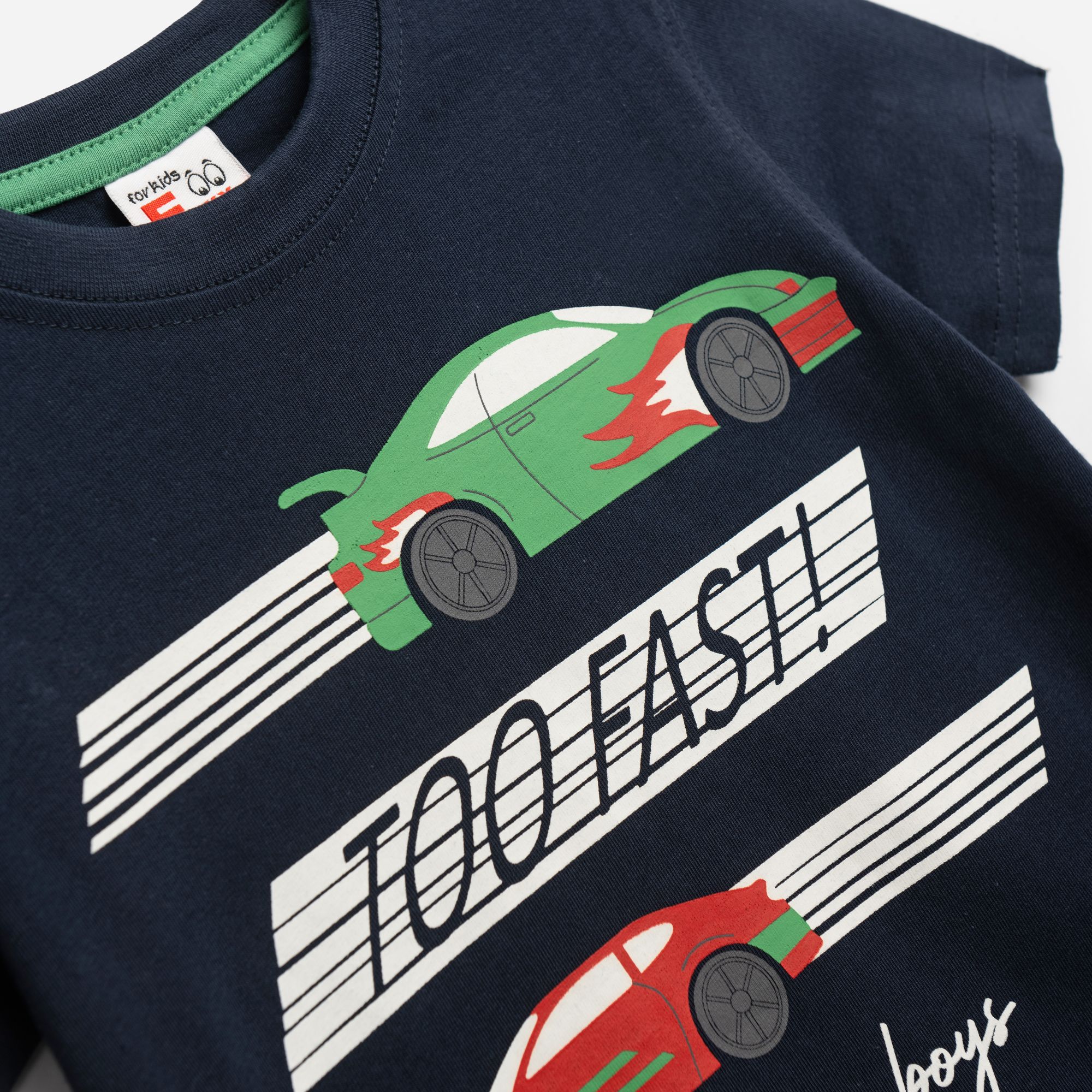 Set T-shirt with printing (too fast) and corduroy up to knee with printing in color blue/leprechaun for boys 1-6 years
