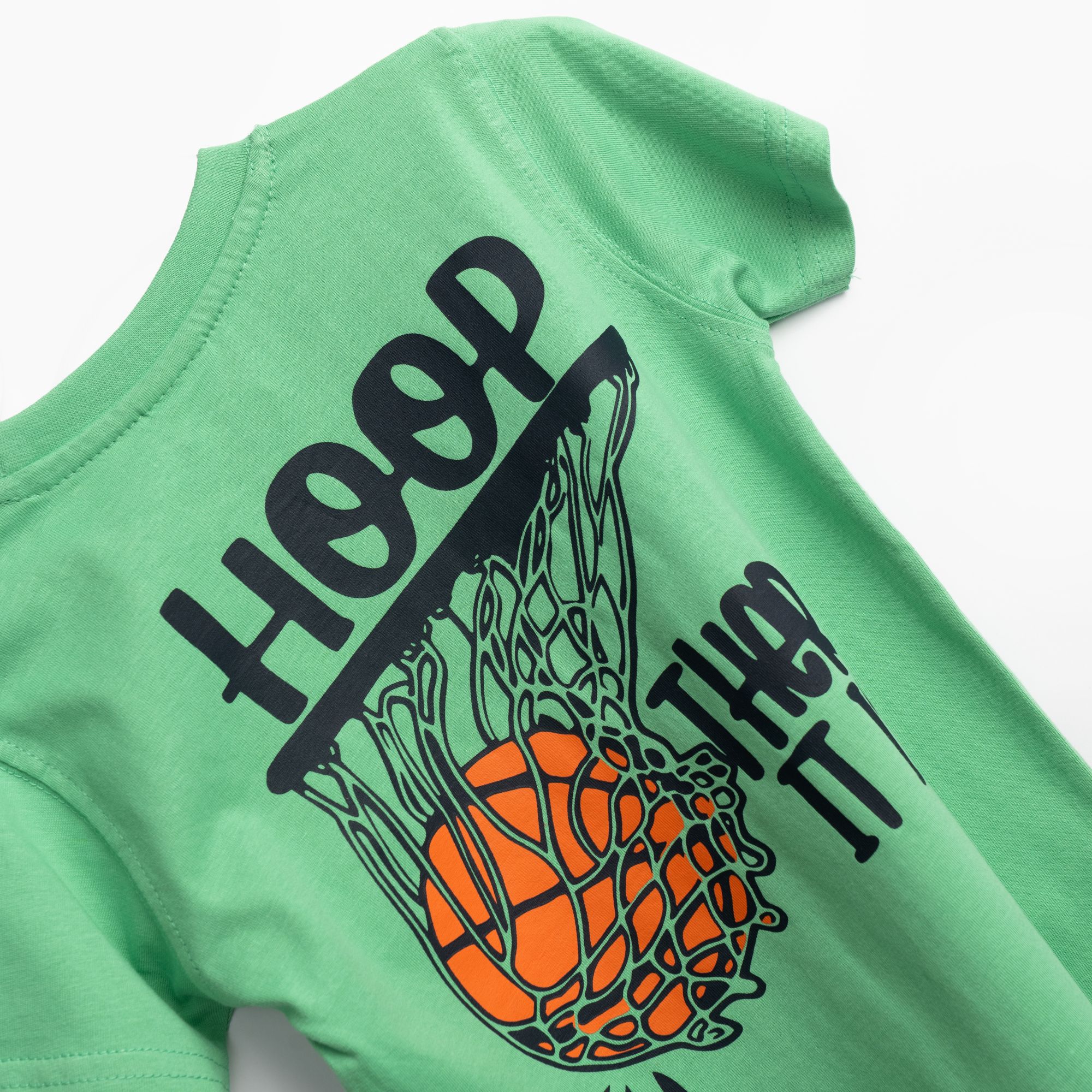 Set T-shirt with printing (take the shoot) and corduroy up to knee with printing in color green parrot/blue for boys 1-6 years
