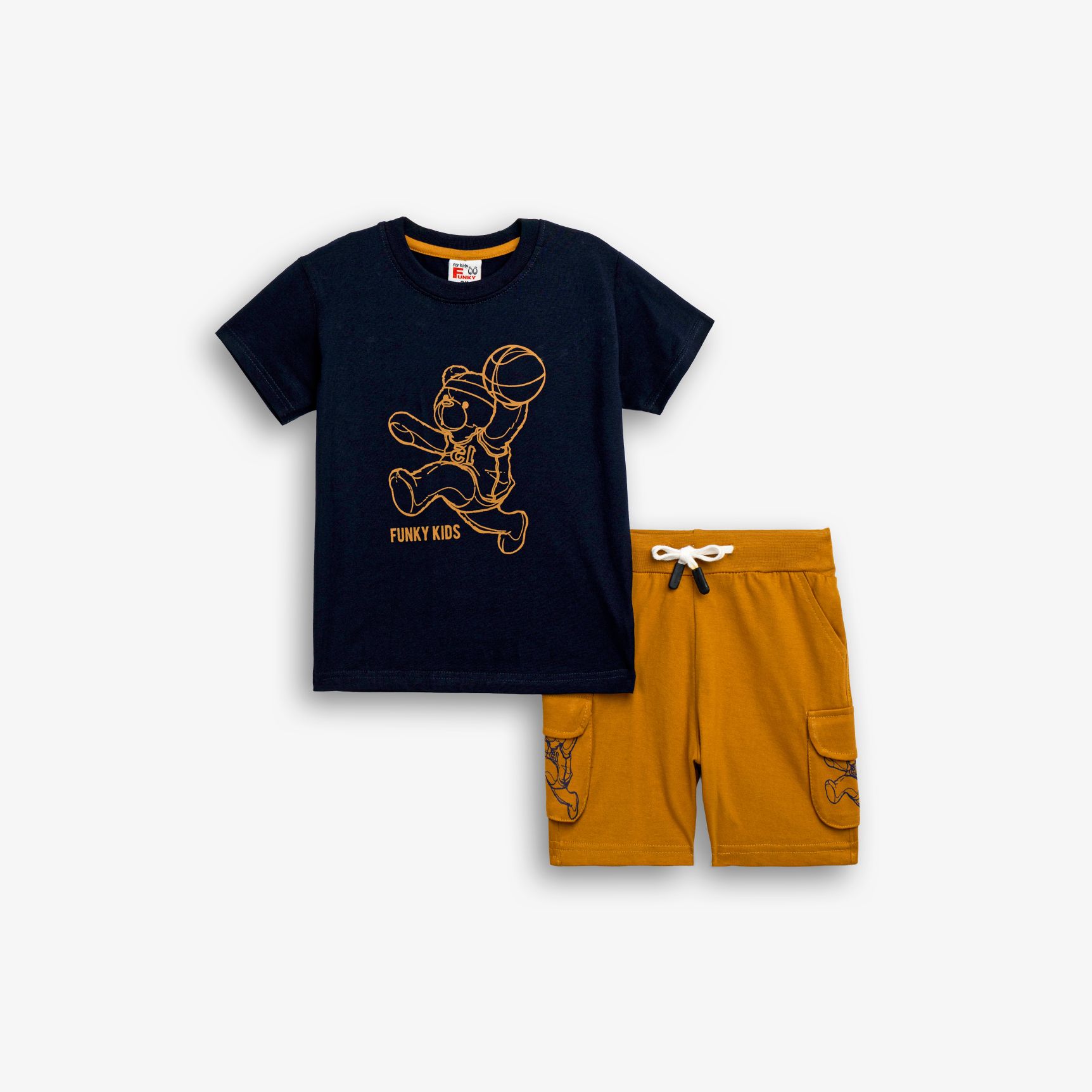 Set T-shirt with printing (teddy bear) and corduroy up to knee with pockets in color blue/ginger for boys 1-6 years