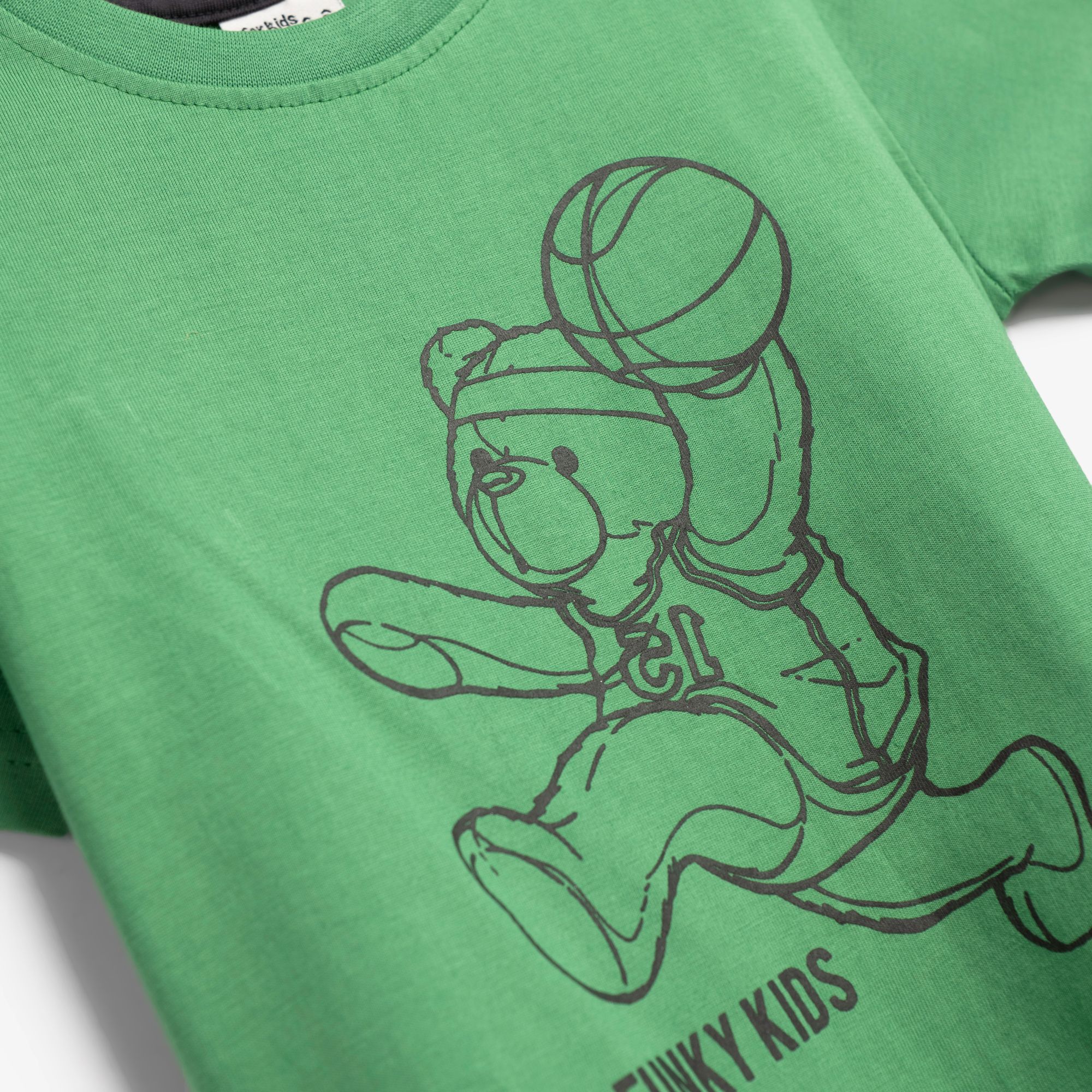 Set T-shirt with printing (teddy bear) and corduroy up to knee with pockets in color leprechaun/anthracite for boys 1-6 years