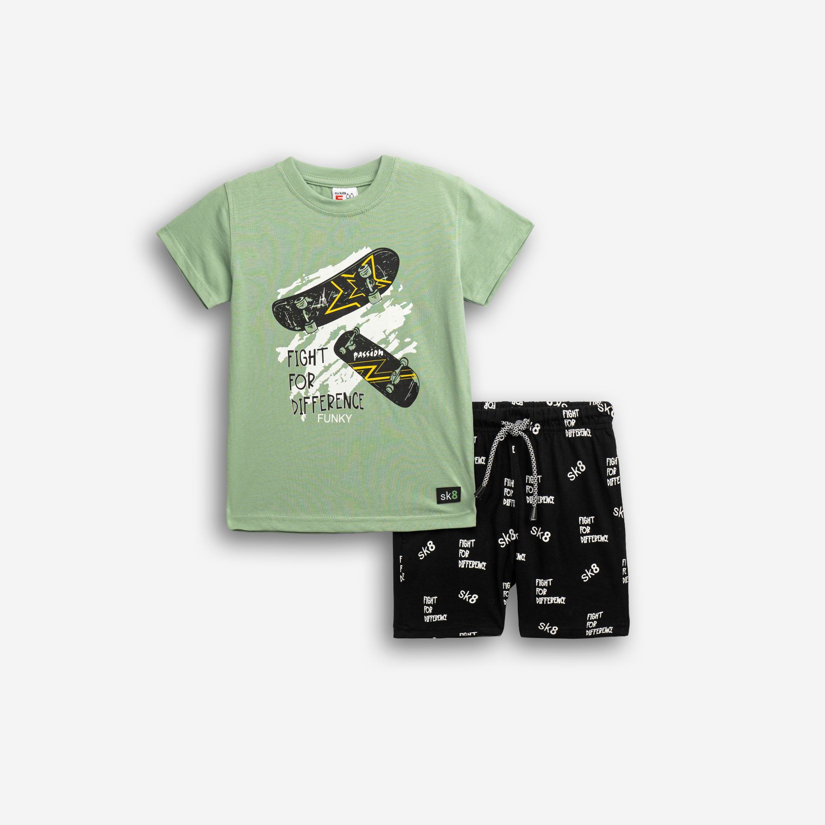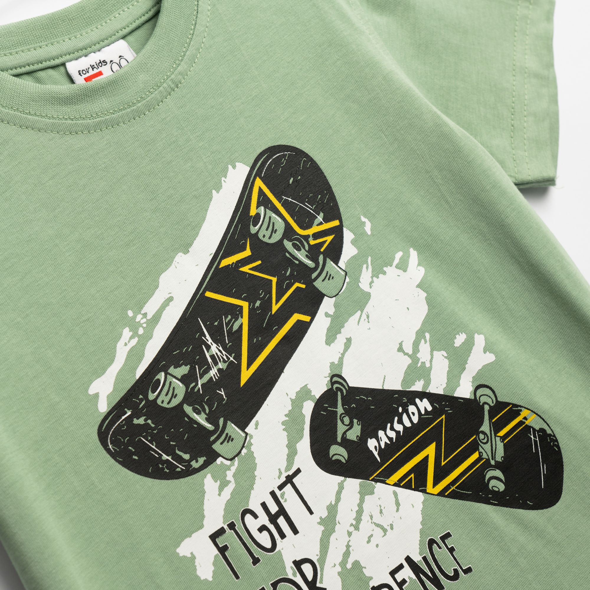 Set T-shirt with printing (skate) and corduroy up to knee with printing allover in color grass/black for boys 1-6 years