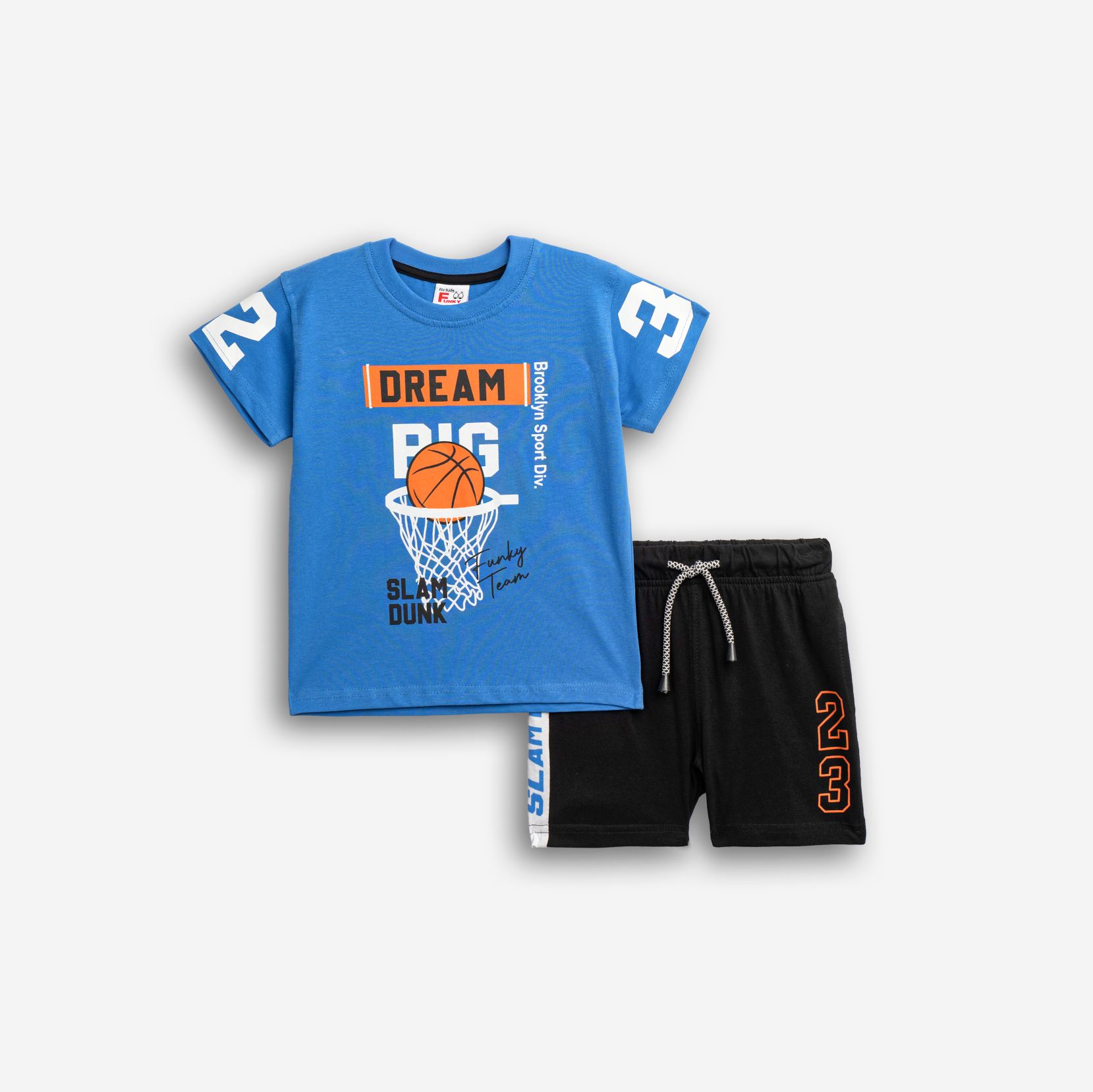 Set T-shirt with printing (dream big) and corduroy up to knee with printing in color light rua/black-white for boys 1-6 years