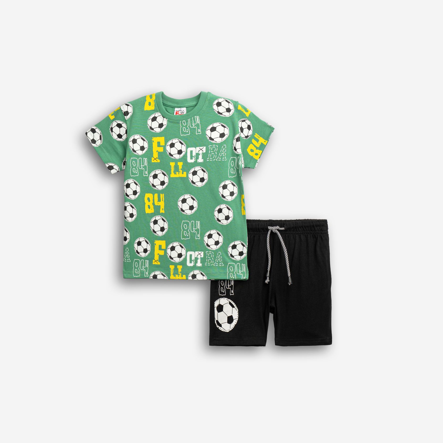 Set T-shirt with printing (football) allover and corduroy up to knee with printing in color leprechaun/black for boys 1-6 years