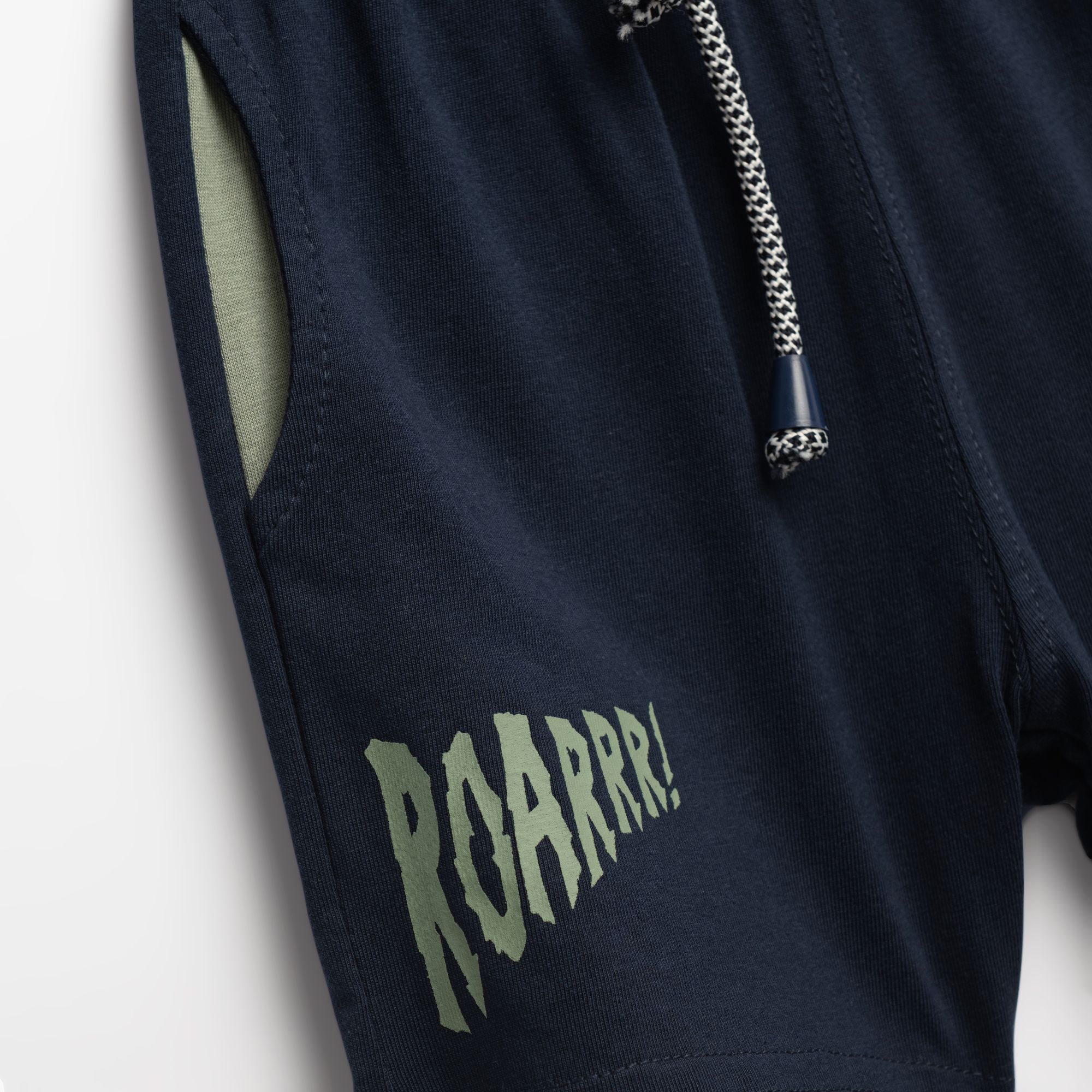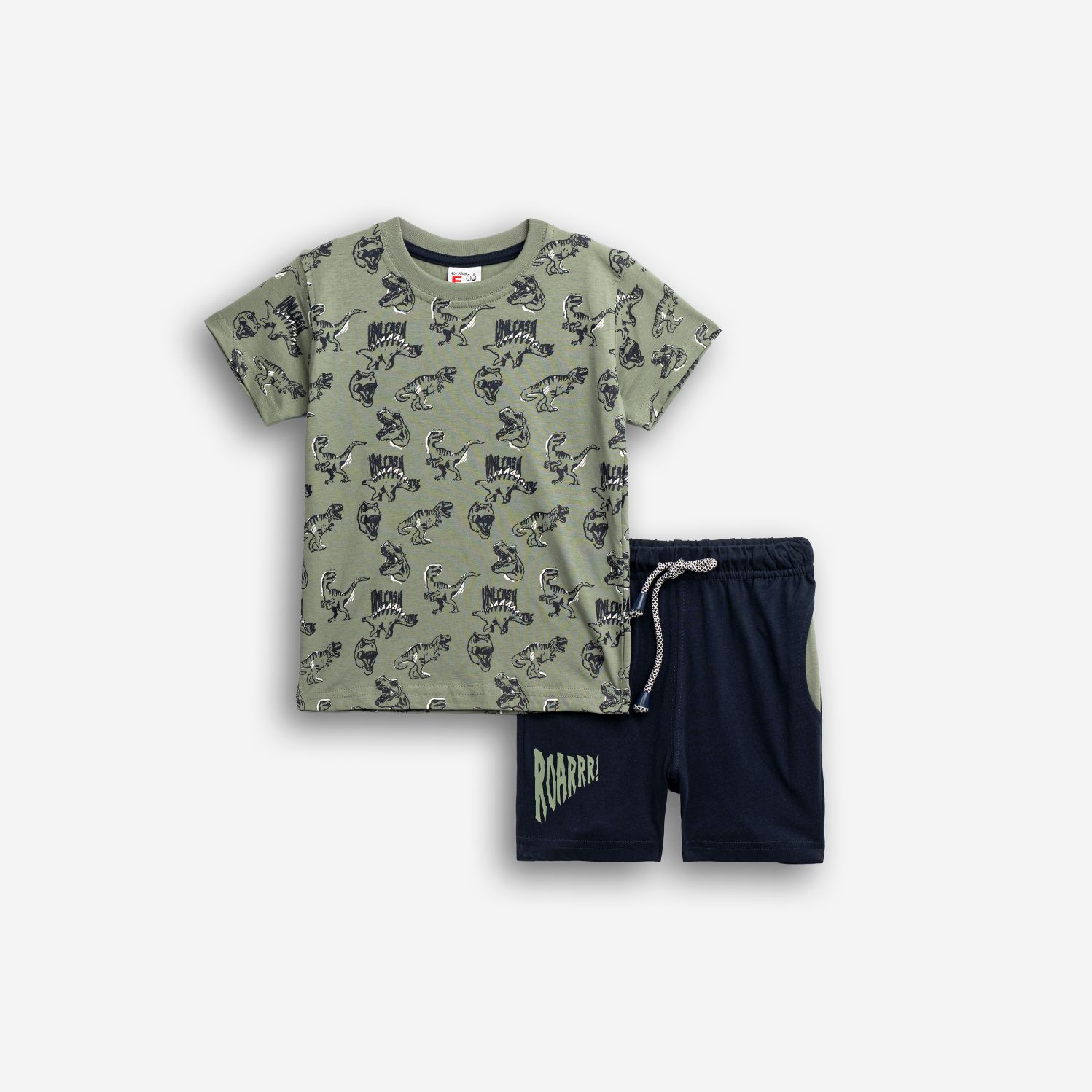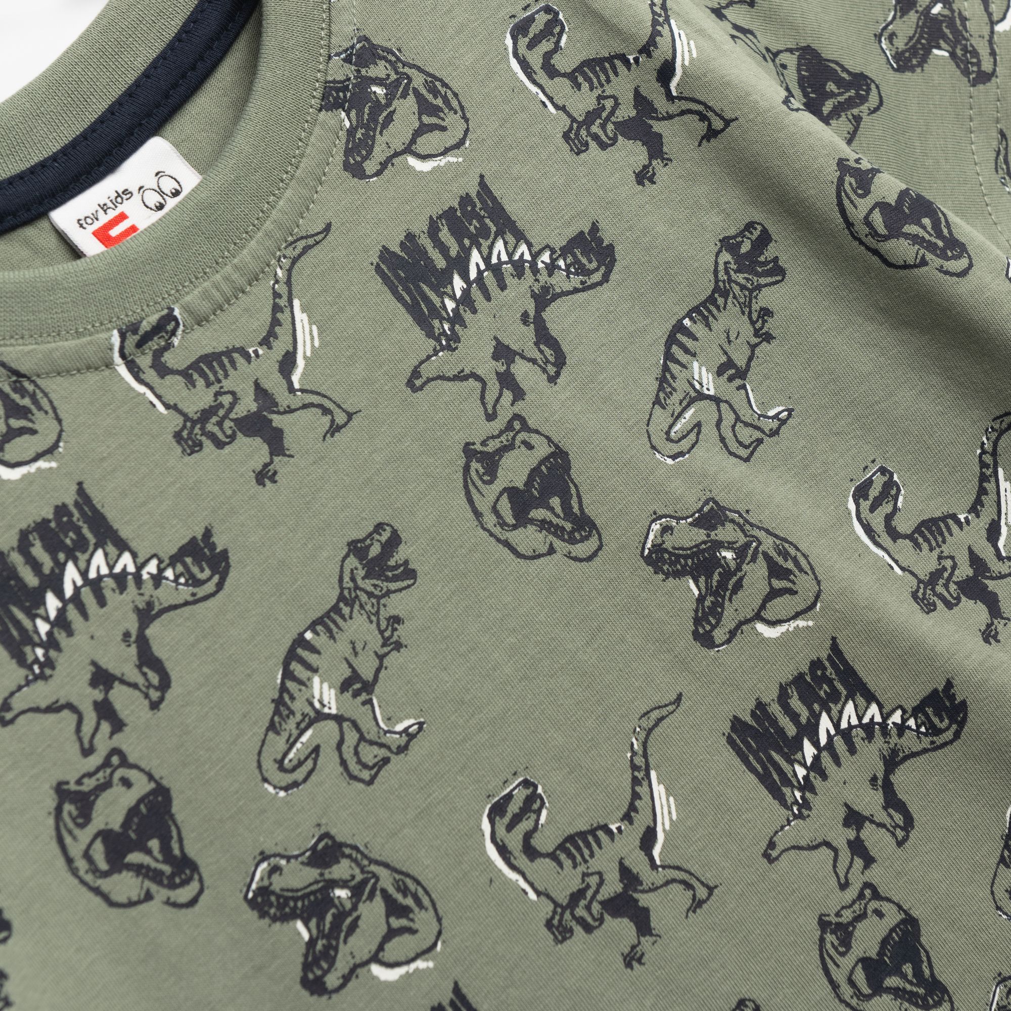 Set T-shirt with printing (dinosaurs) allover and corduroy up to knee with printing in color light khaki/blue-light khaki for boys 1-6 years