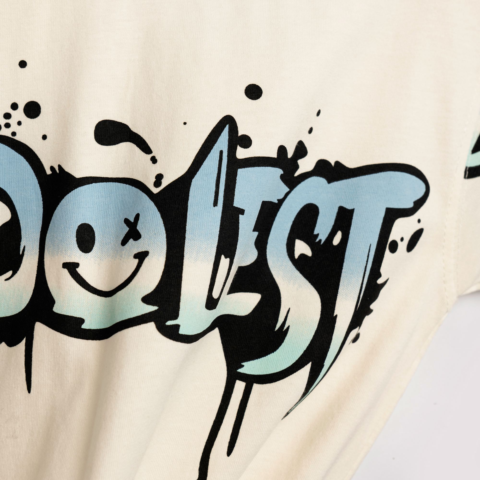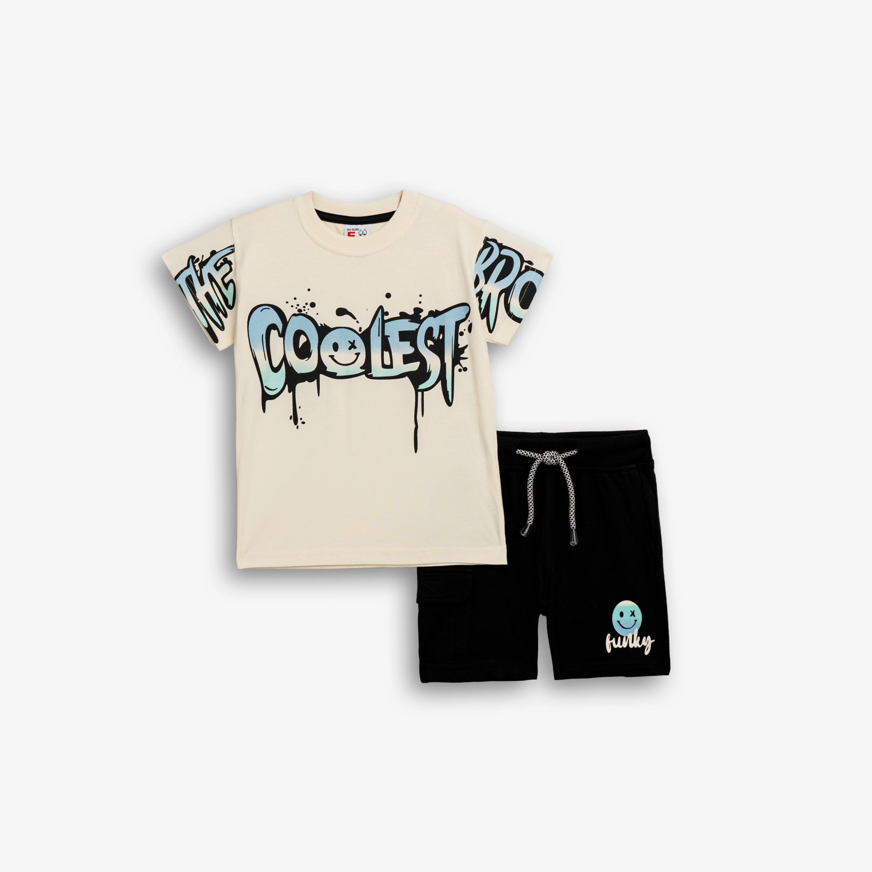 Set T-shirt with printing (the coolest bro) and corduroy up to knee with printing in color ecru/black for boys 1-6 years