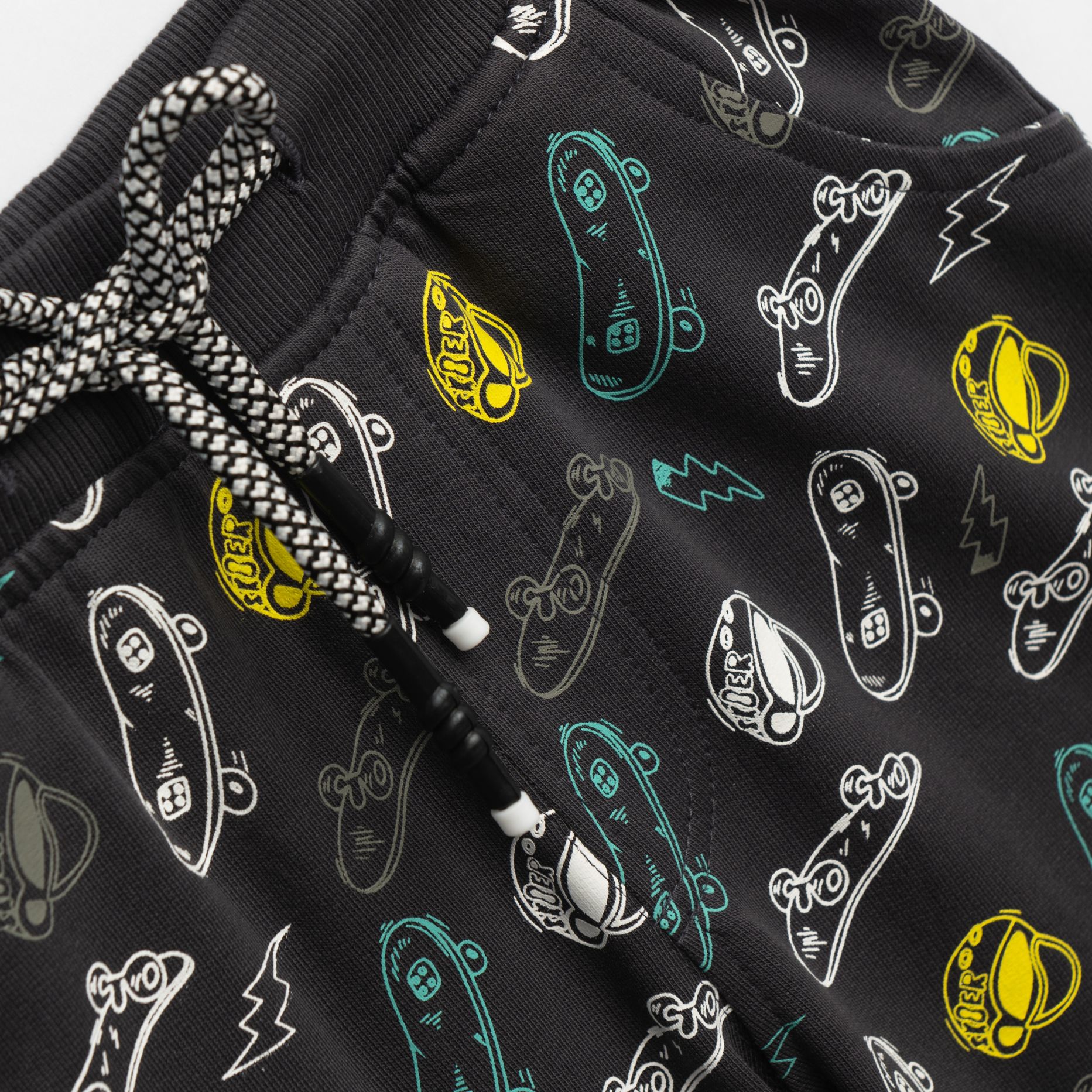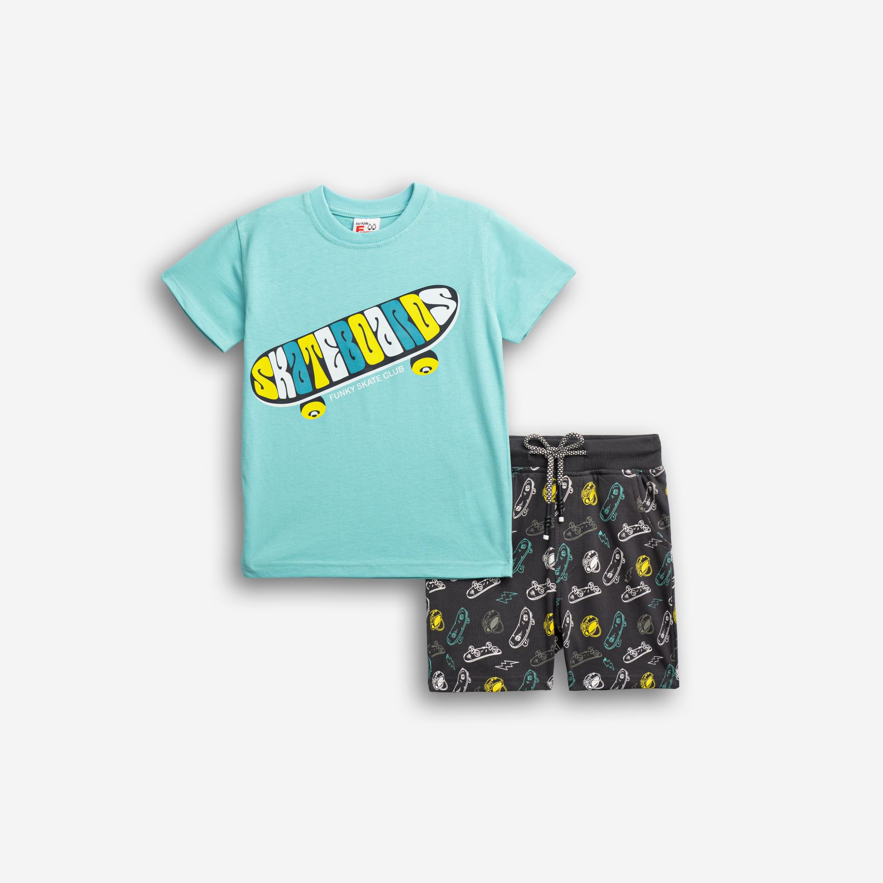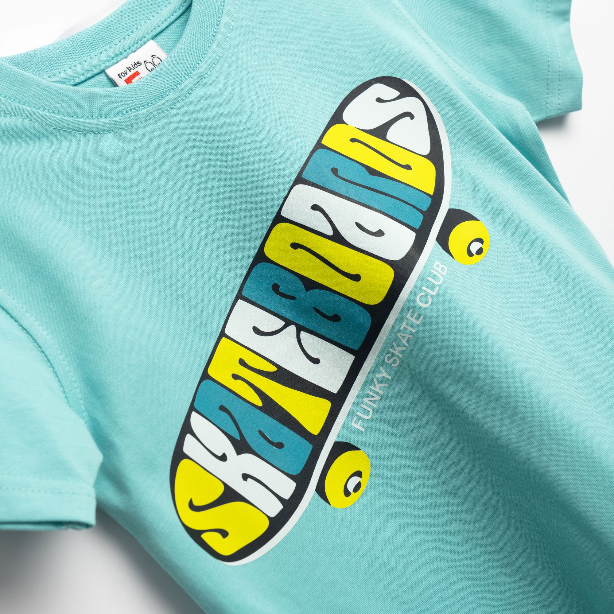 Set T-shirt with printing (skateboards) and corduroy fleece up to knee with printing allover in color turquoise/anthracite for boys 1-6 years