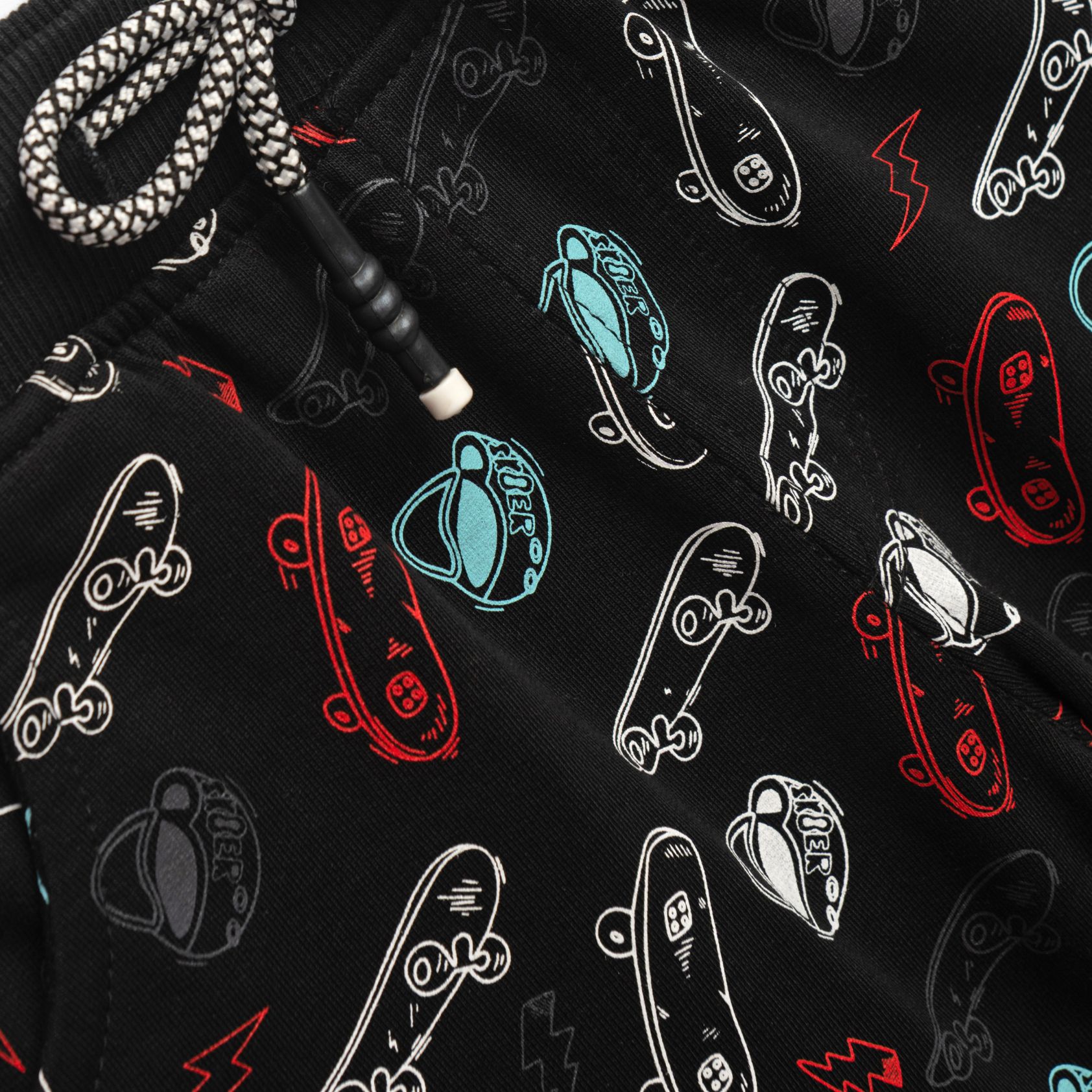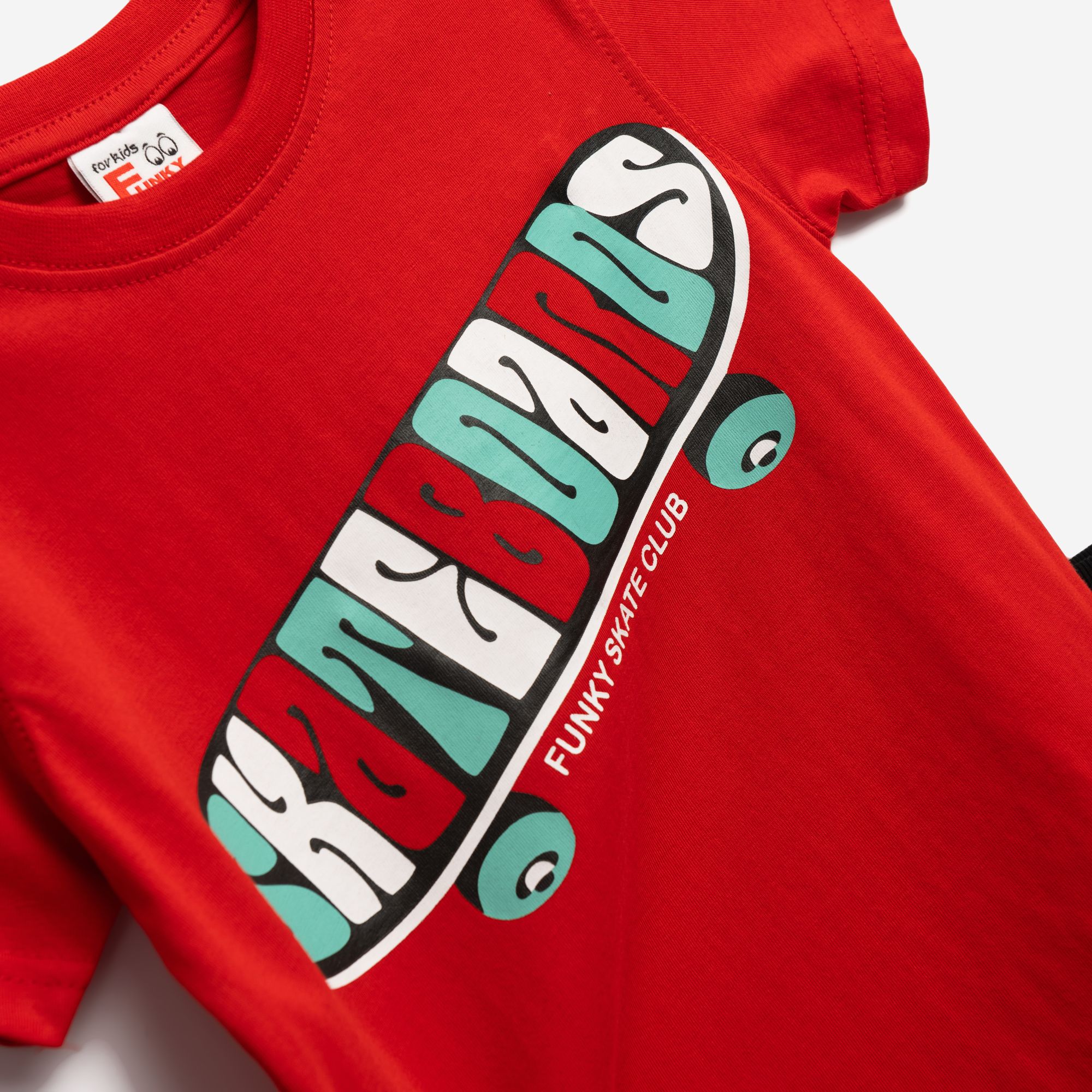Set T-shirt with printing (skateboards) and corduroy fleece up to knee with printing allover in color red/black for boys 1-6 years