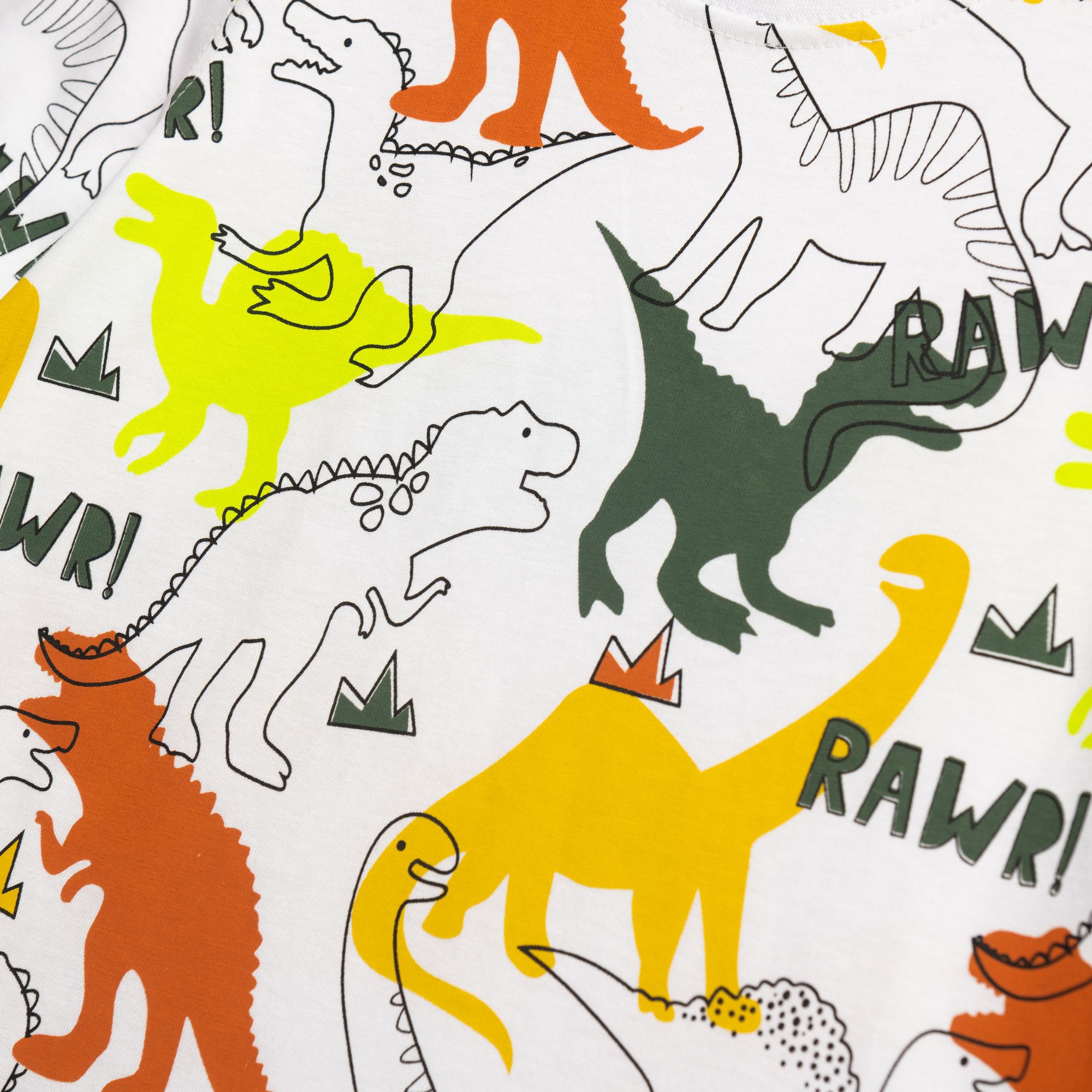 Set T-shirt with printing (dinosaurs) and corduroy fleece up to knee with printing in color white/khaki for boys 1-6 years