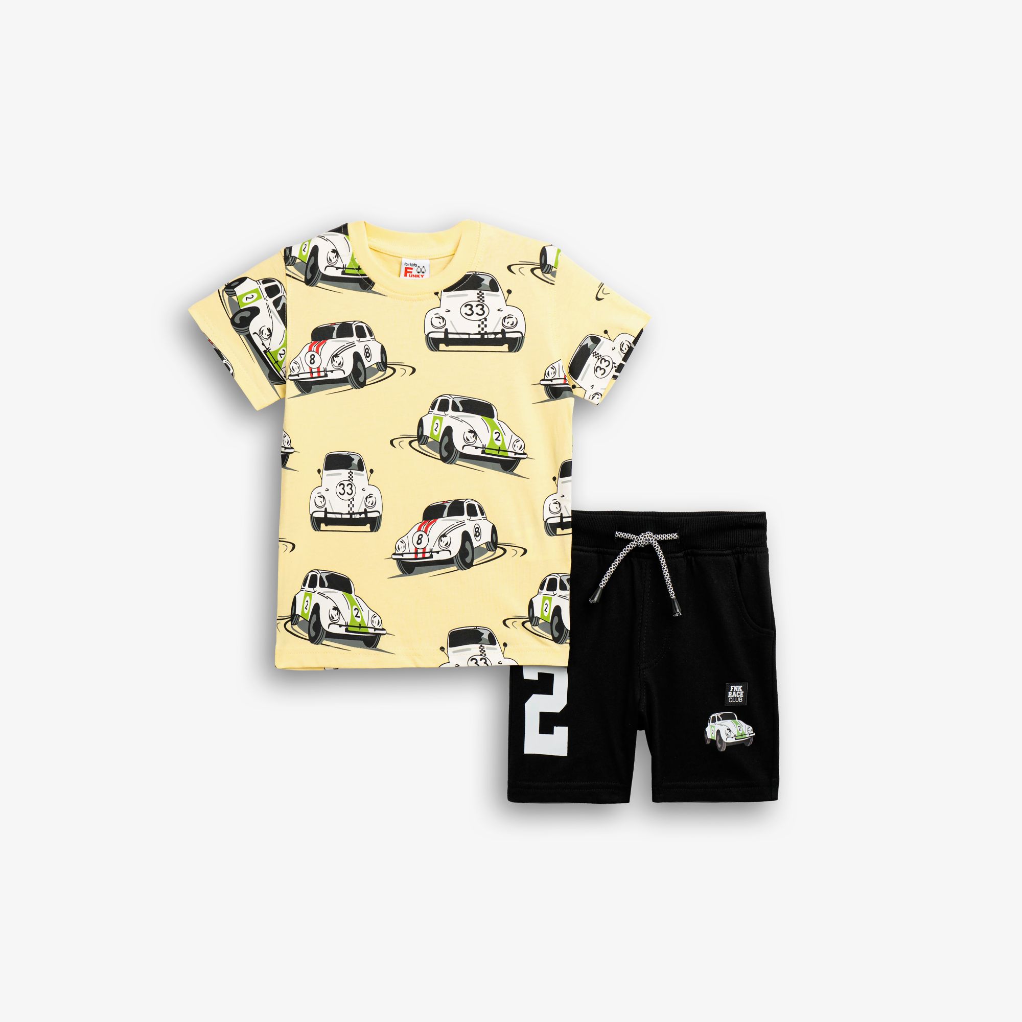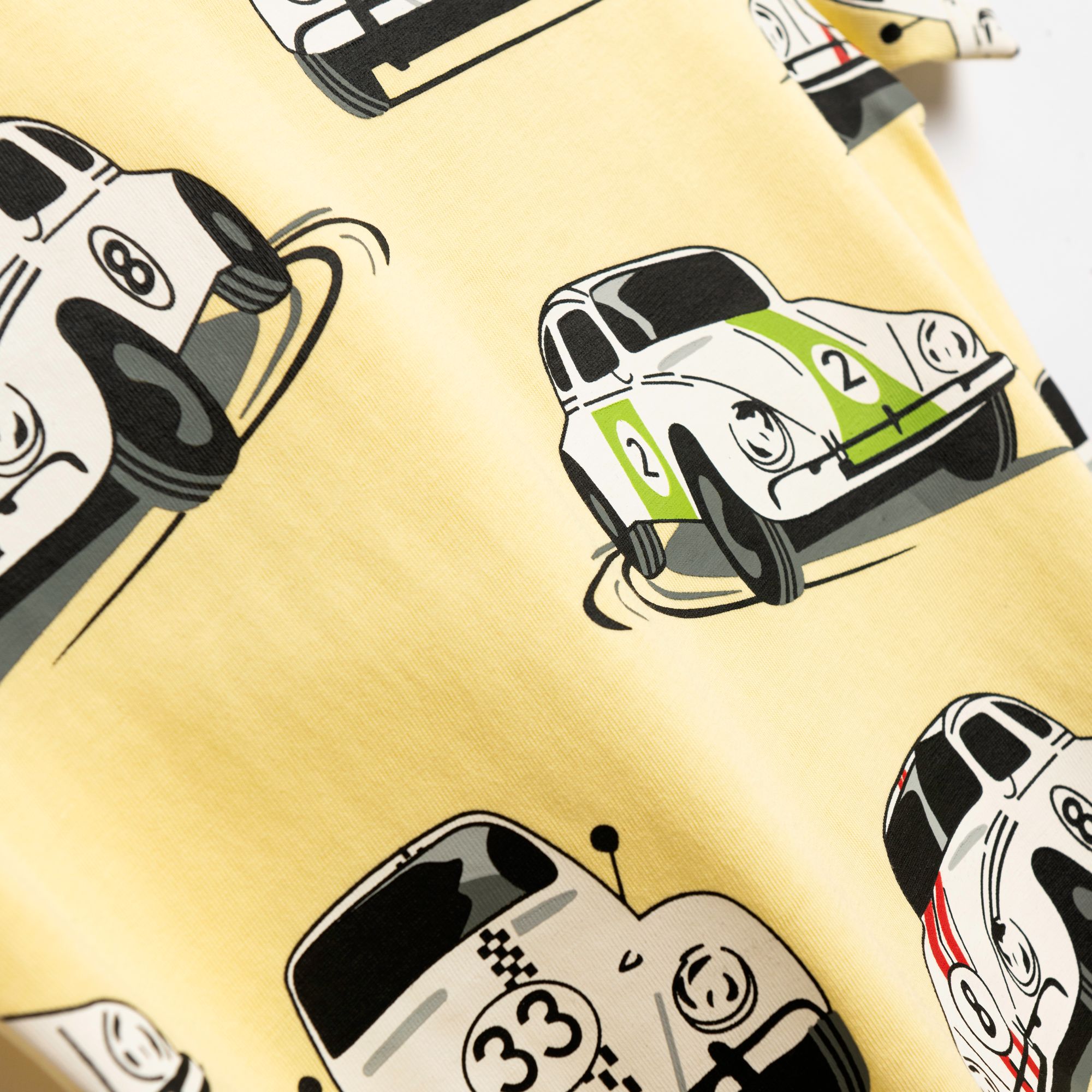 Set T-shirt with printing (race cars) allover and corduroy fleece up to knee with printing in color light lemonade/black for boys 1-6 years