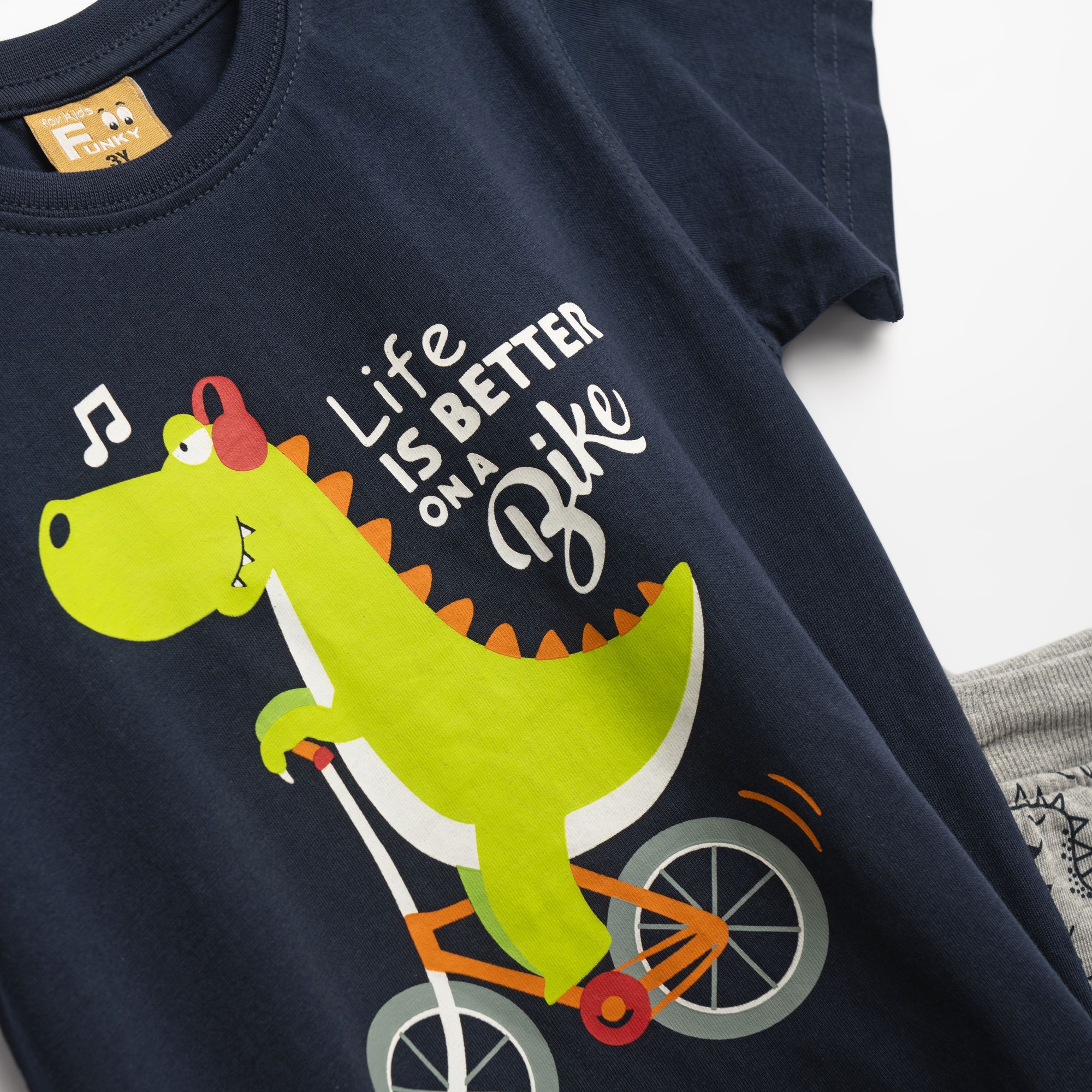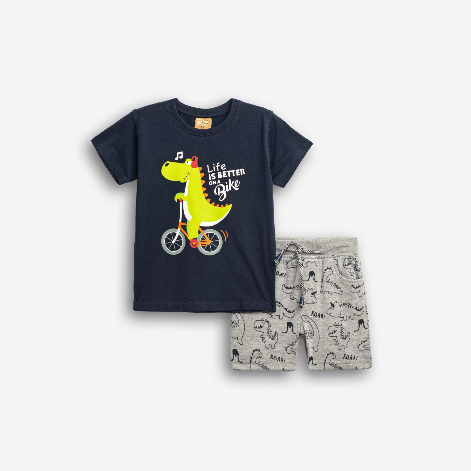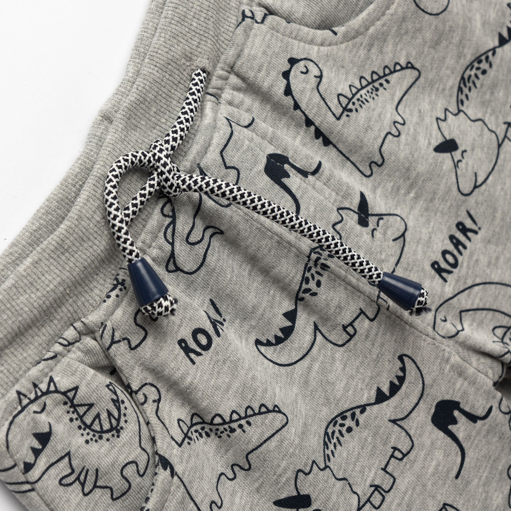 Set T-shirt with printing (dinosaurs) and corduroy fleece up to knee with printing allover in color blue/grey melange for boys 1-6 years
