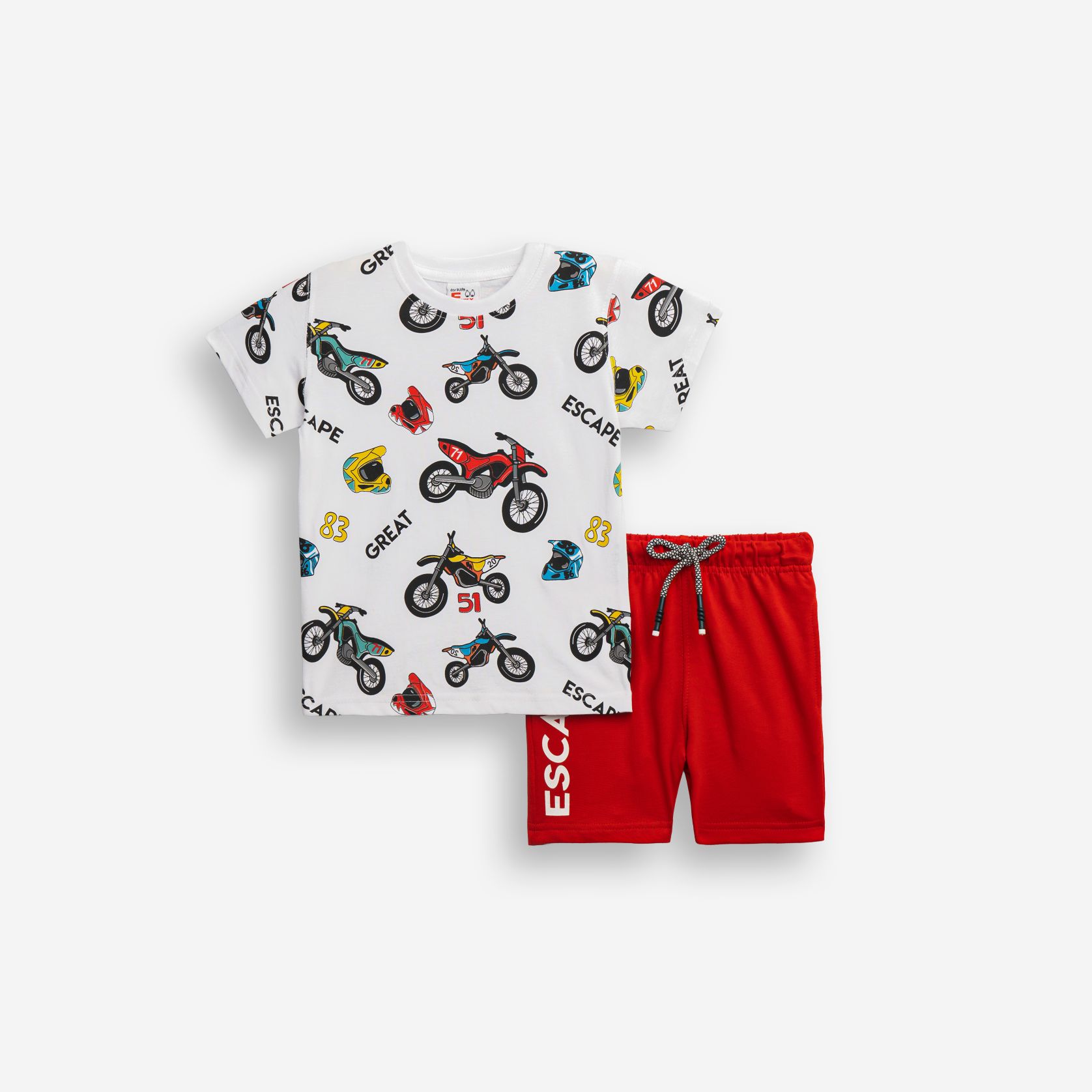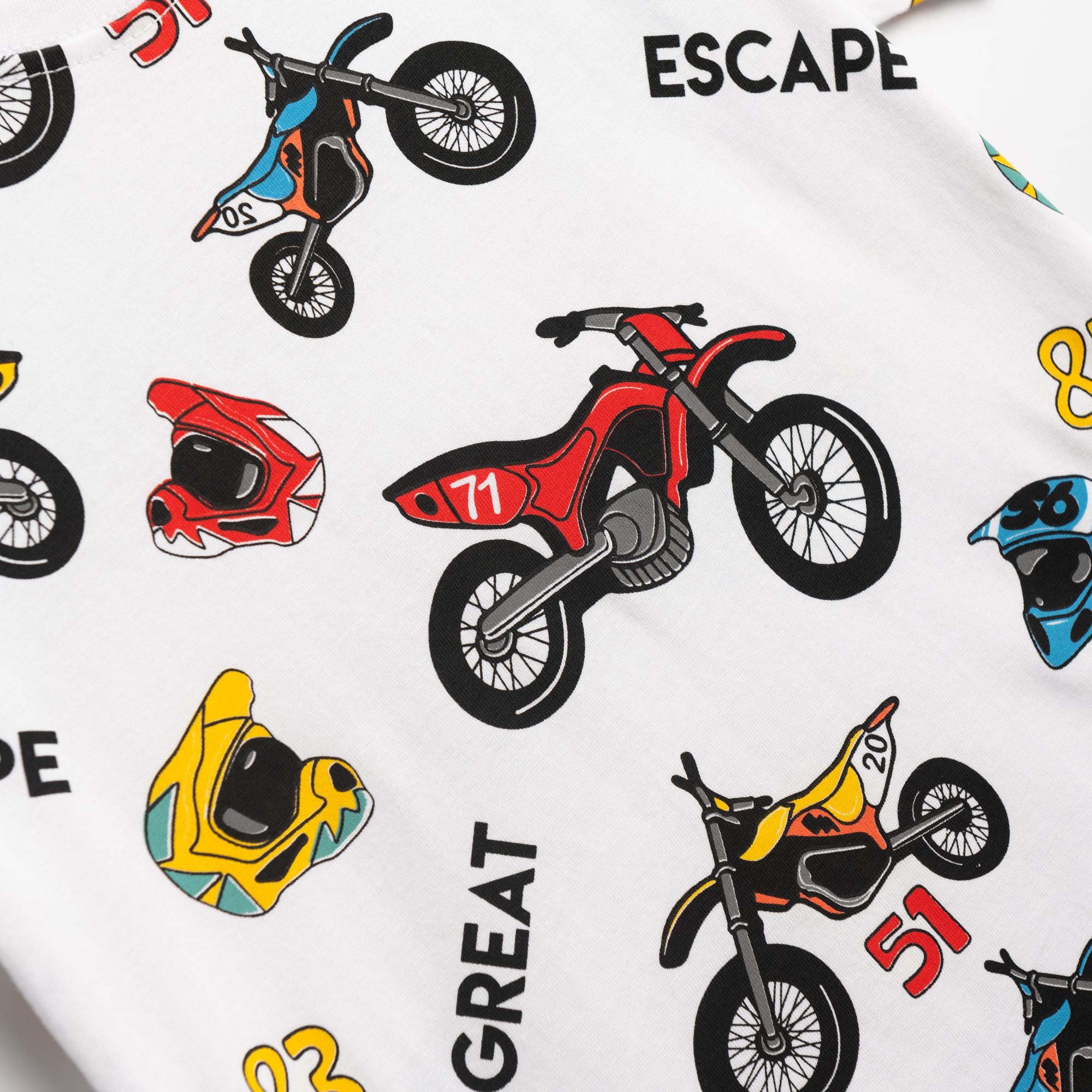 Set T-shirt with printing (motorcycles) allover and corduroy fleece up to knee with printing in color white/red for boys 1-6 years