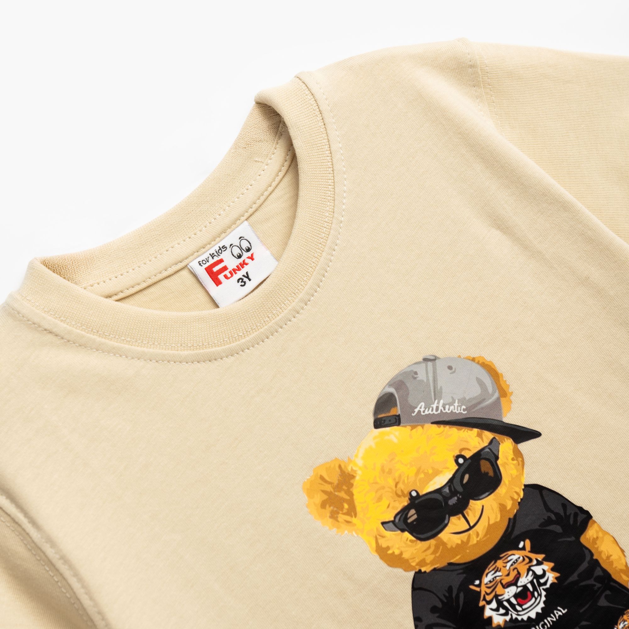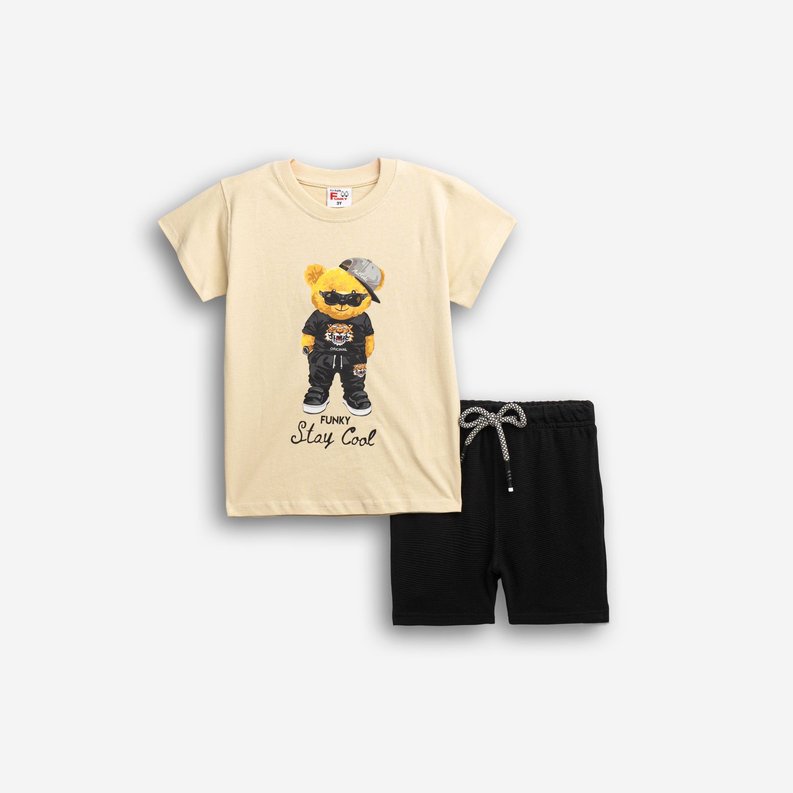 Set T-shirt with printing (teddy bear) and corduroy up to knee with printing in color beige/black for boys 1-6 years