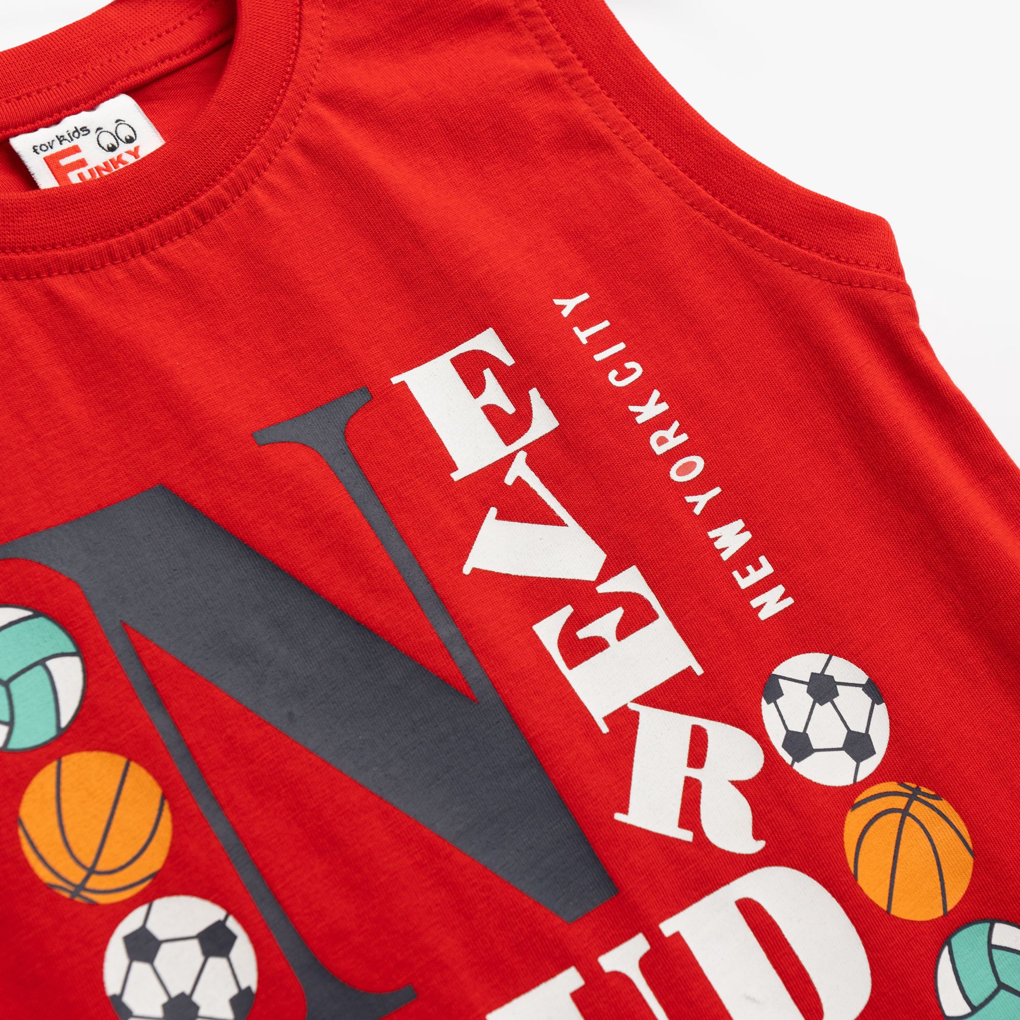 Set sleeveless shirt with printing (never give up) and corduroy up to knee with printing in color red/blue for boys 1-6 years