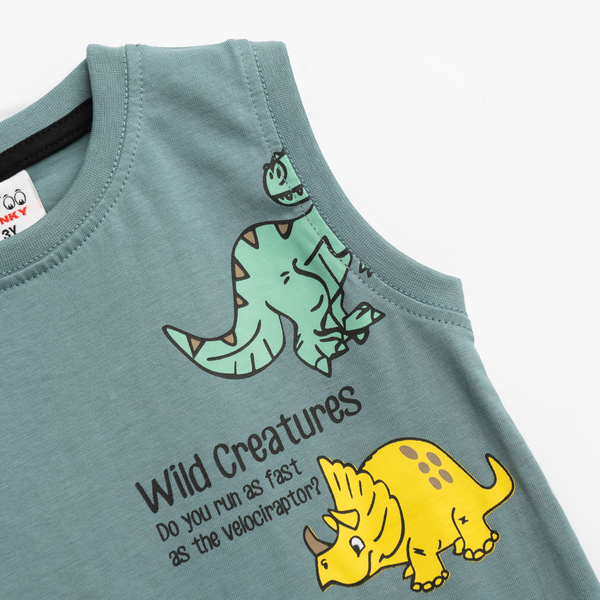 Set sleeveless shirt with printing (dinosaurs) allover and corduroy up to knee with printing in color storm blue/black for boys 1-6 years