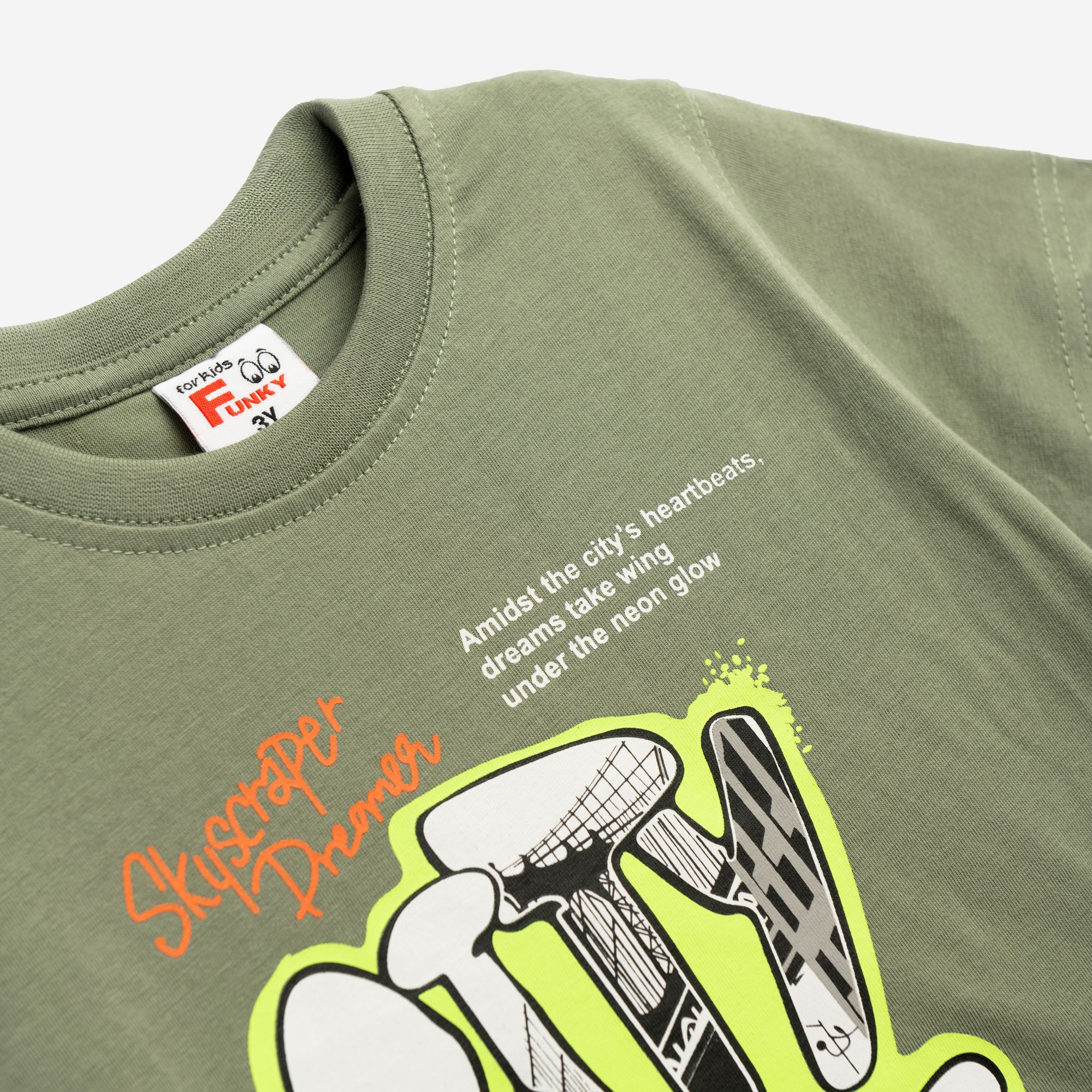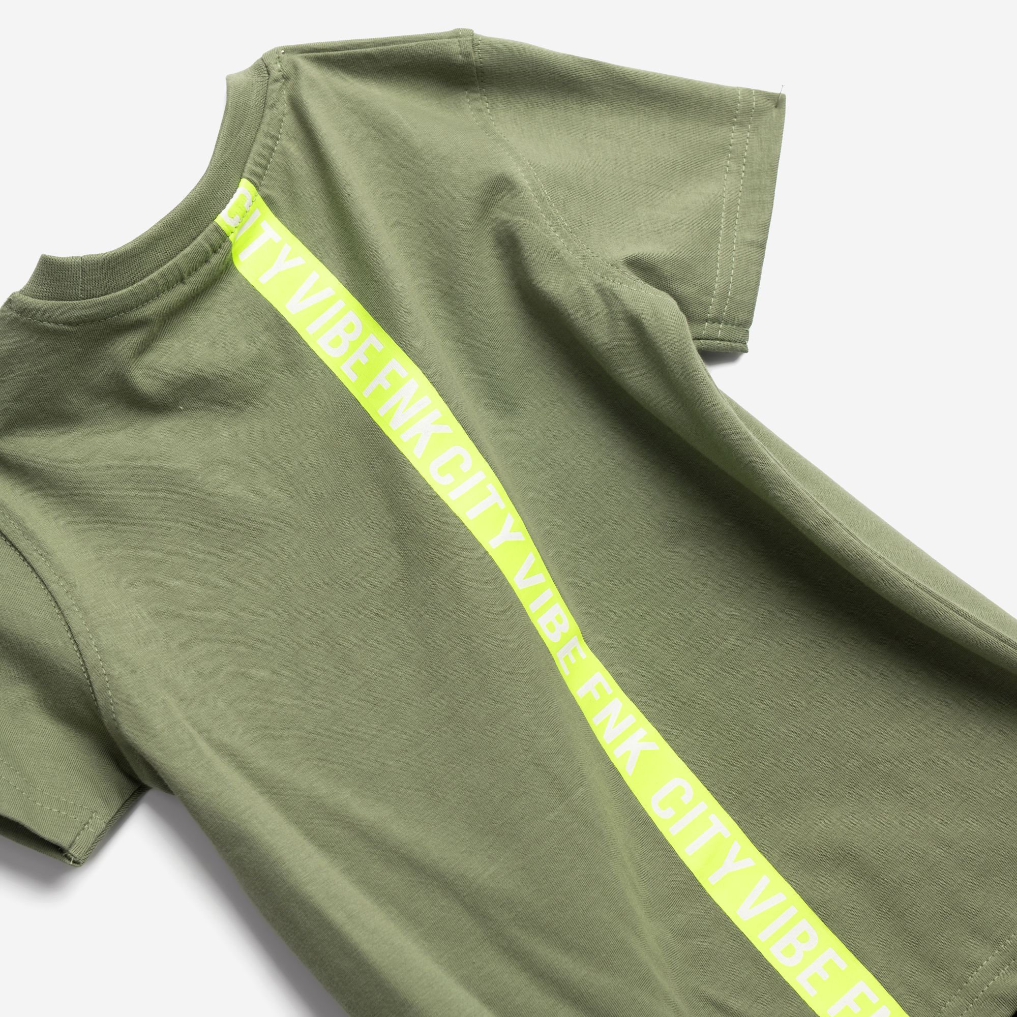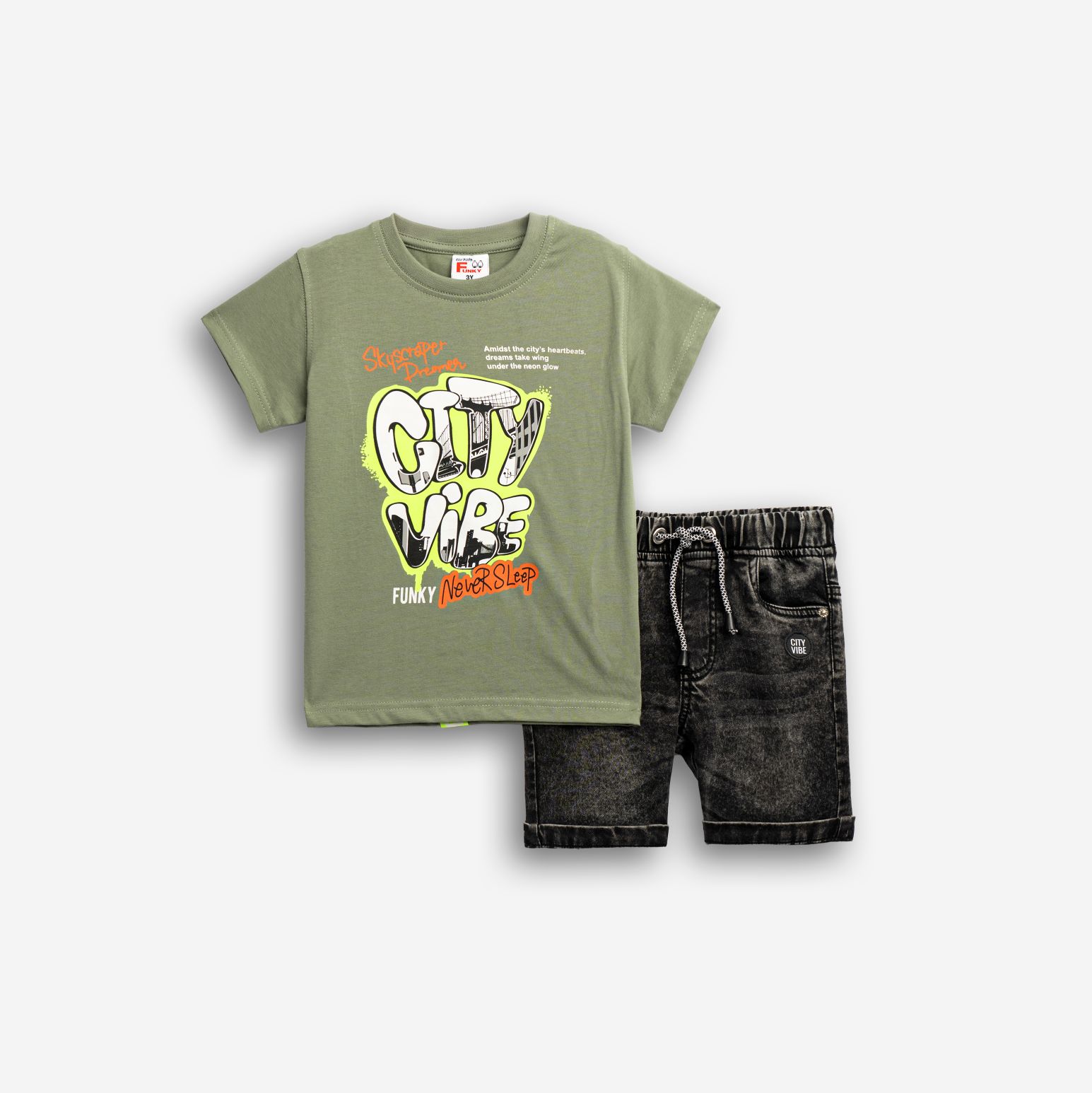 Set T-shirt with printing (city vibe) and corduroy fleece jean up to knee in color light khaki/black jean for boys 1-6 years