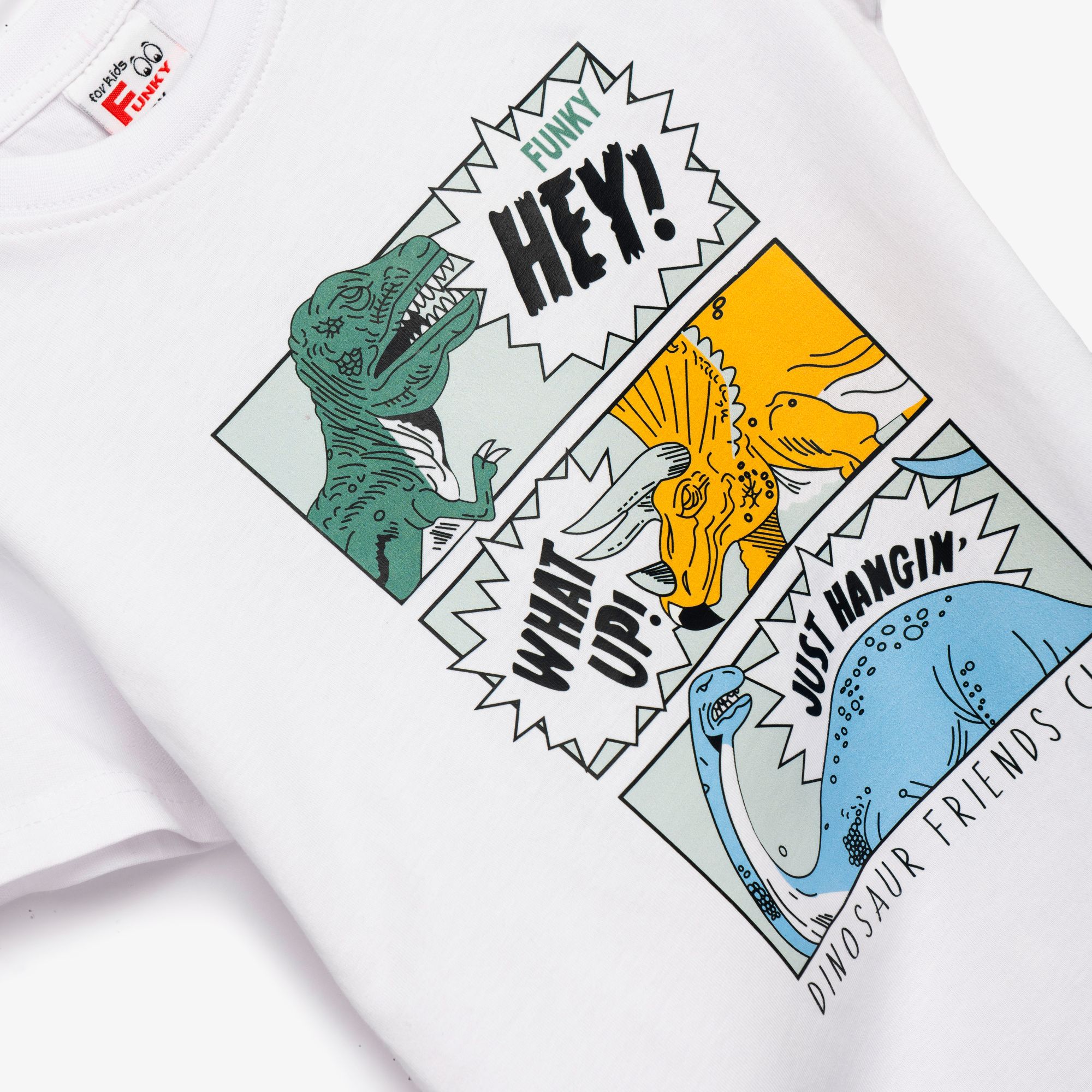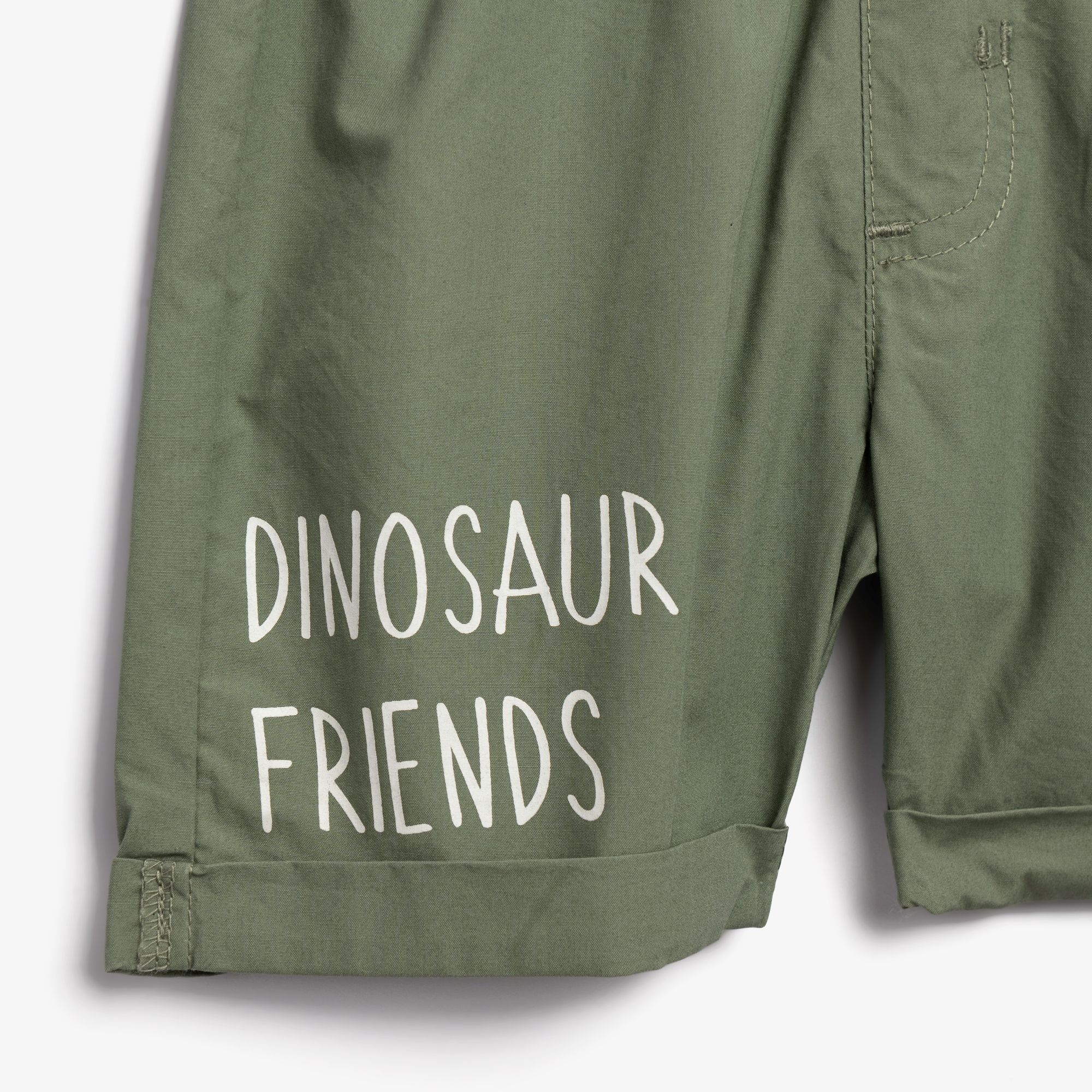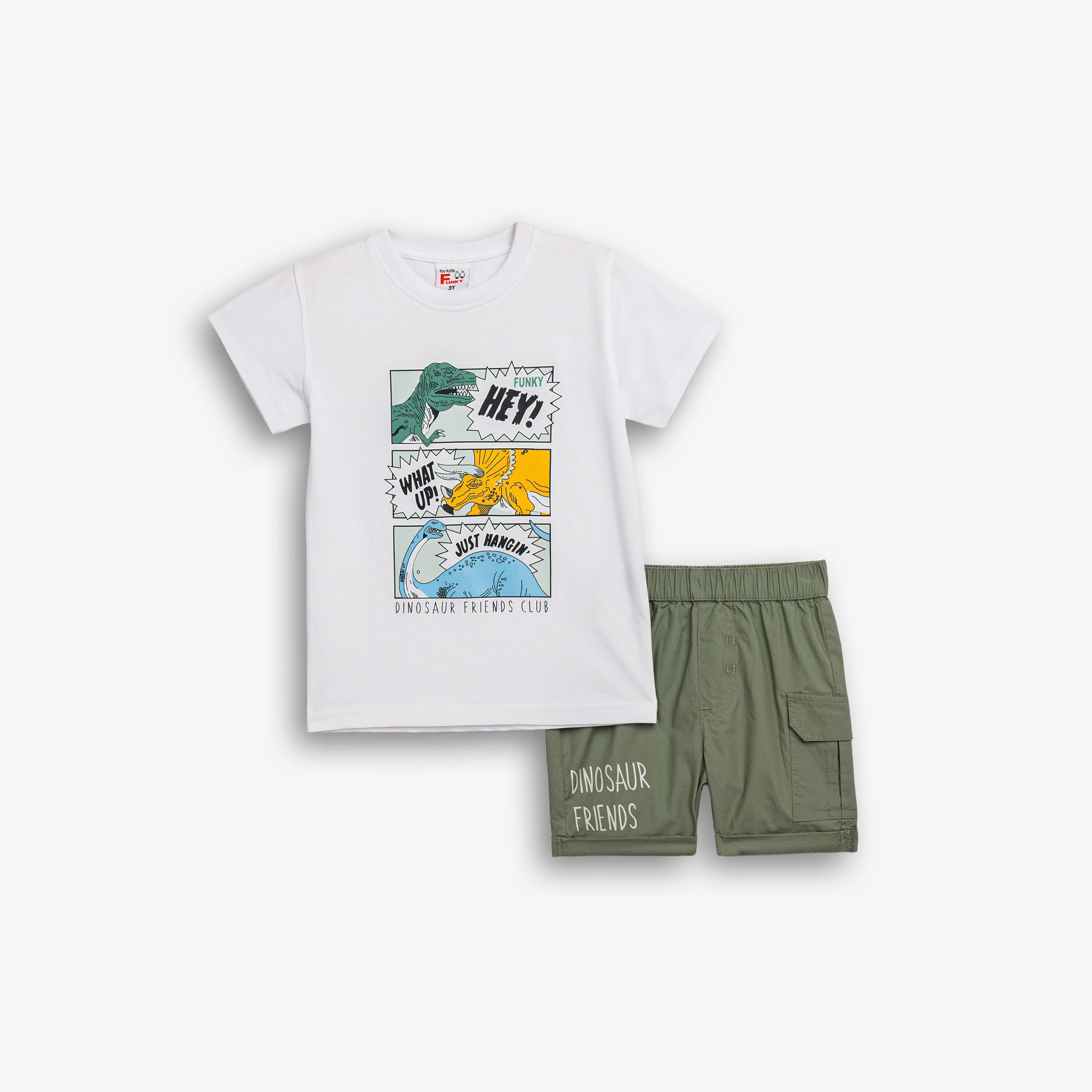 Set T-shirt with printing (comic ndinosaurs) and corduroy stable up to knee with pocket and printing in color white/light khaki for boys 1-6 years