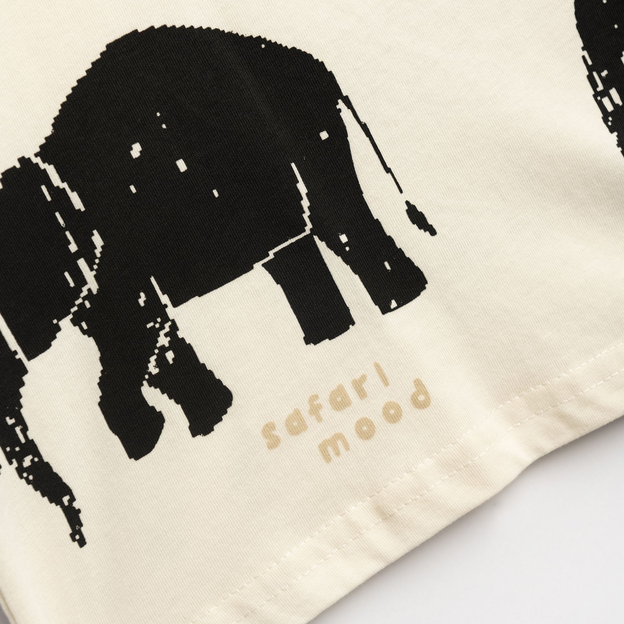 Set T-shirt with printing (elephants) allover and corduroy stable up to knee with pockets in color ecru/beige sand for boys 1-6 years