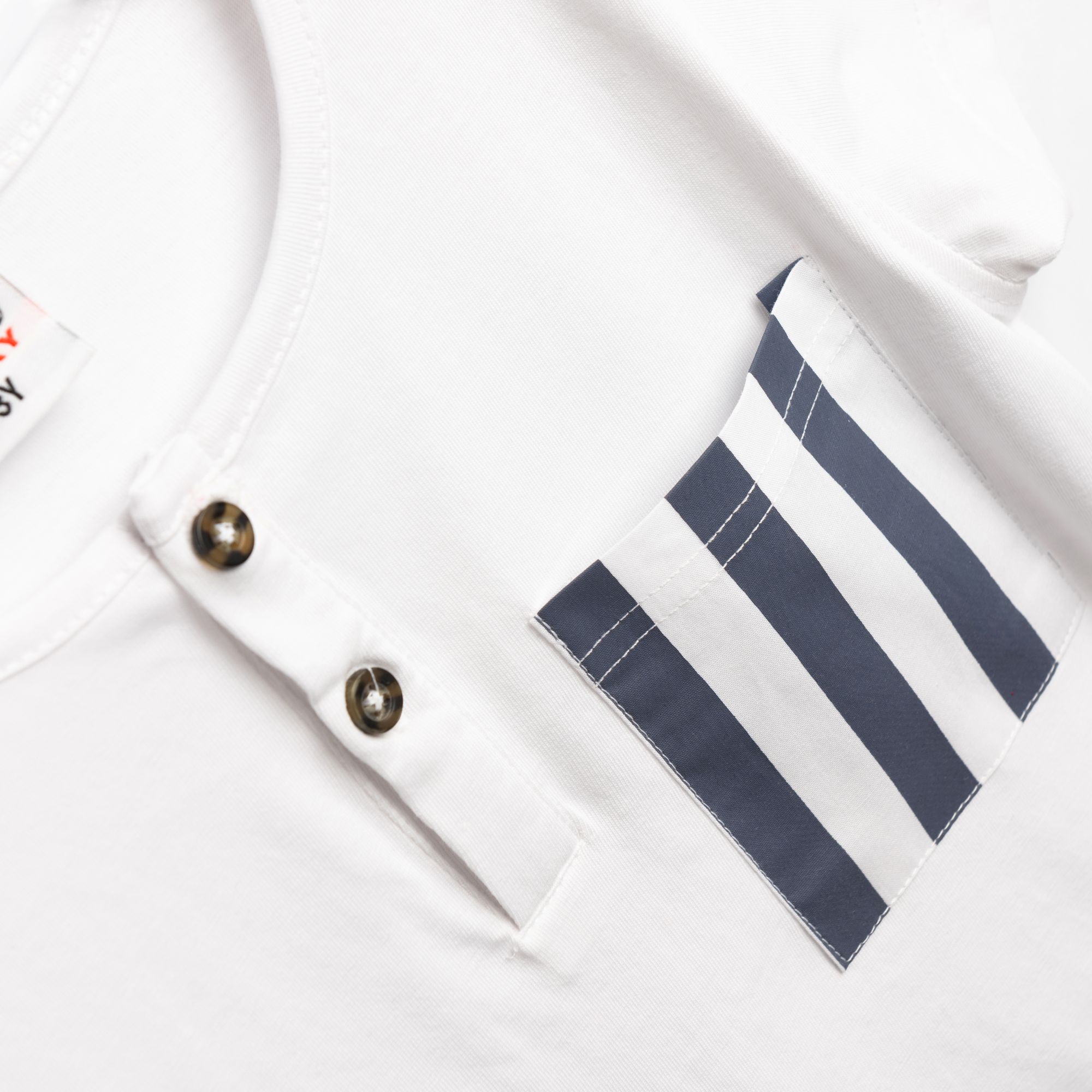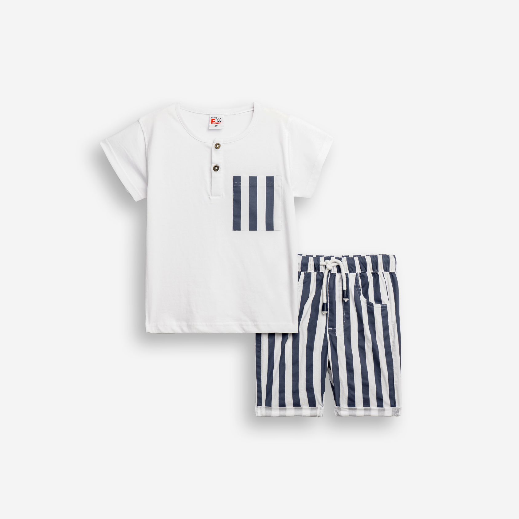 Set T-shirt with pocket and corduroy stable up to knee with printing allover in color white/white striped for boys 1-6 years