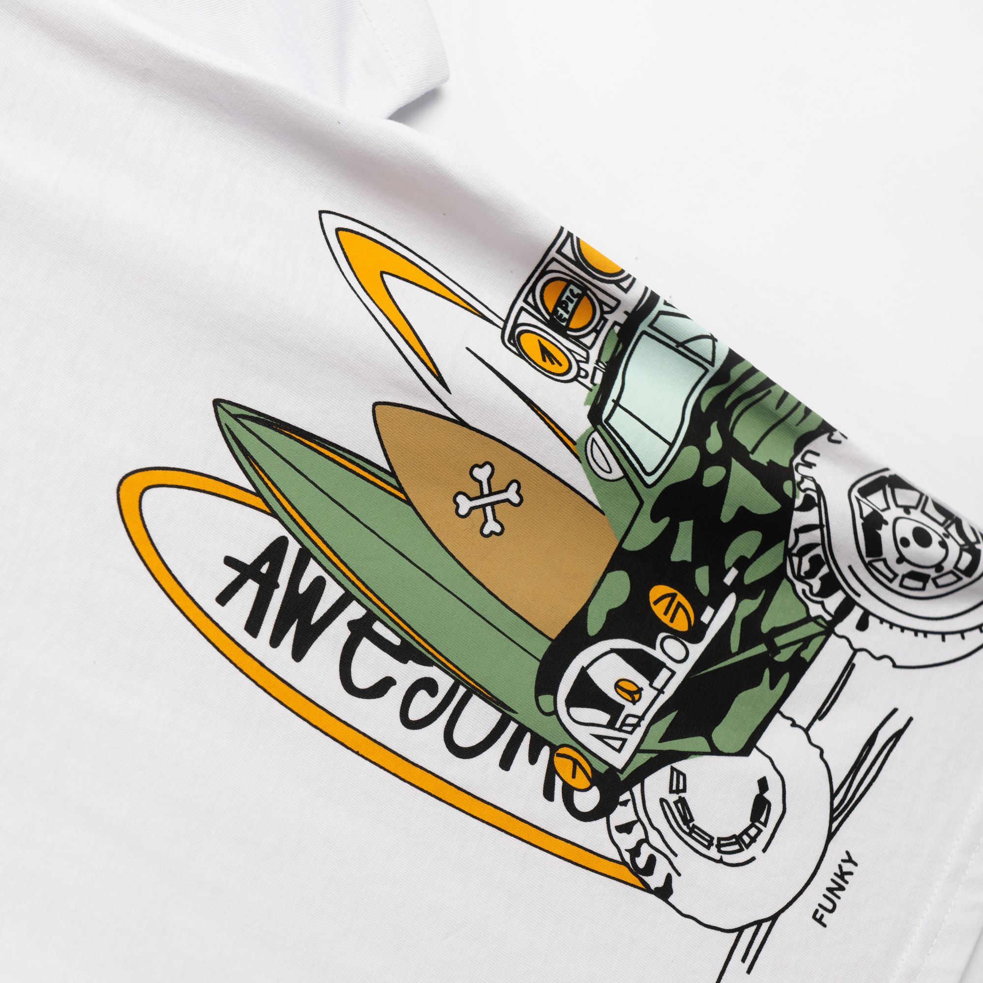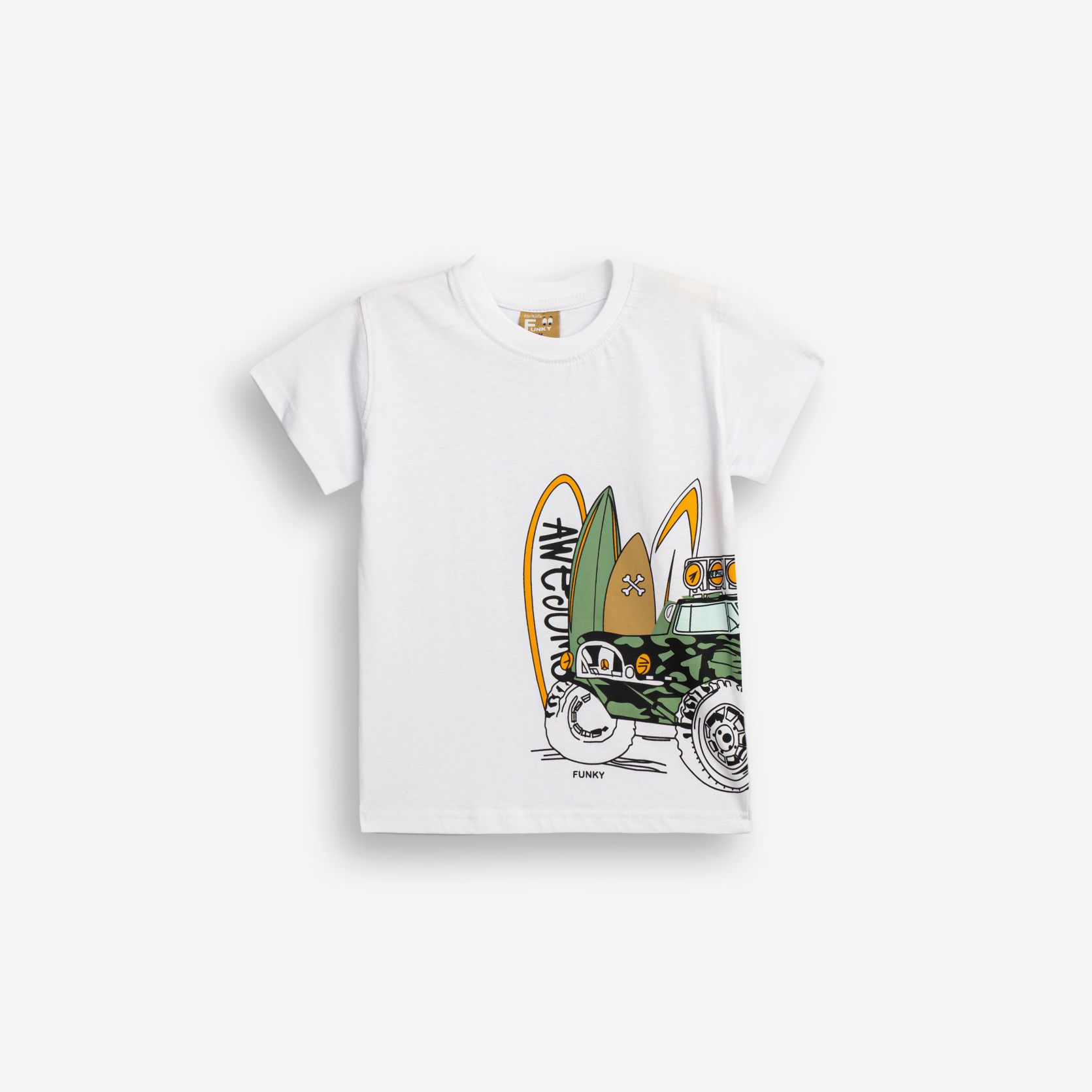 T-shirt jersey with printing (surfboard) in color white for boys 1-6 years
