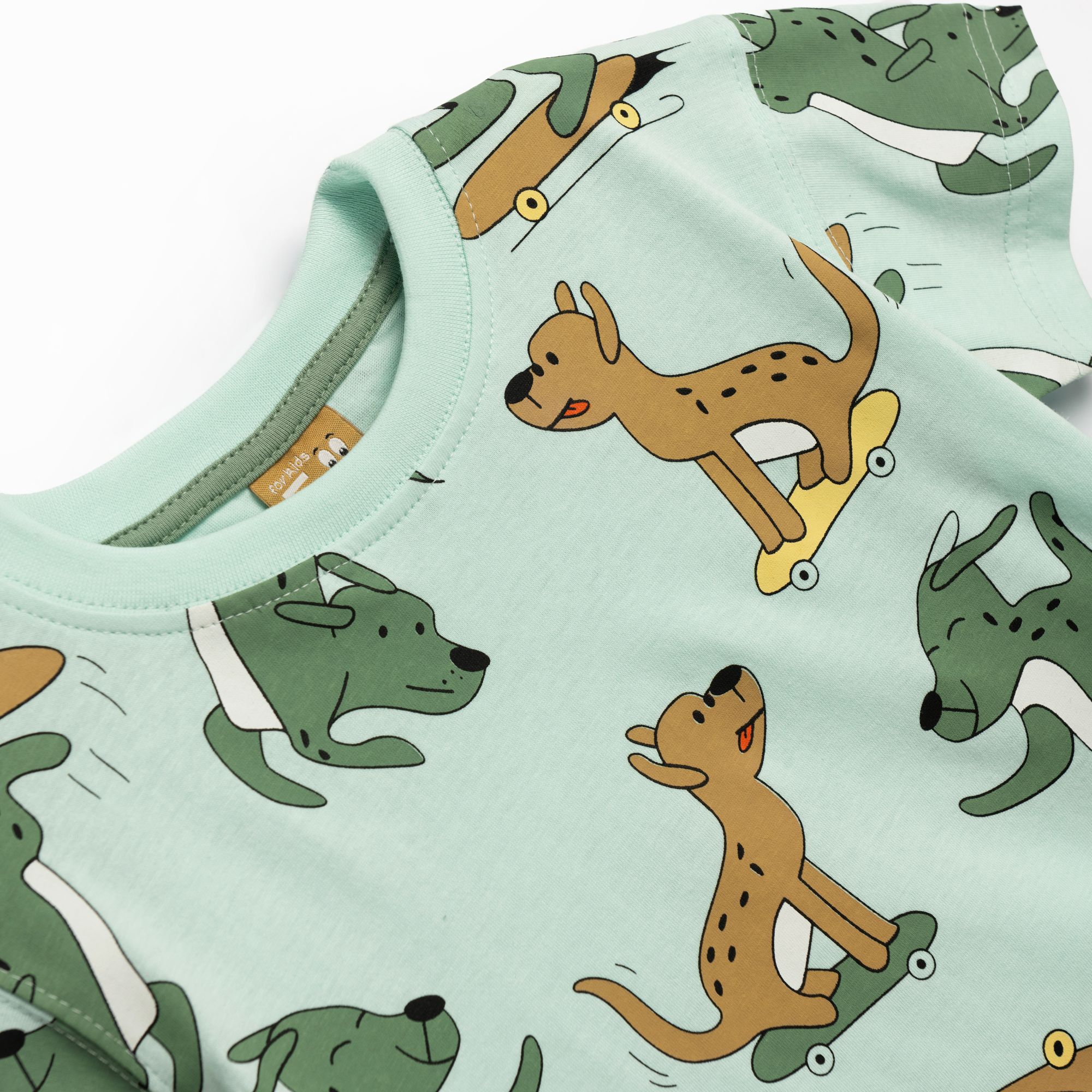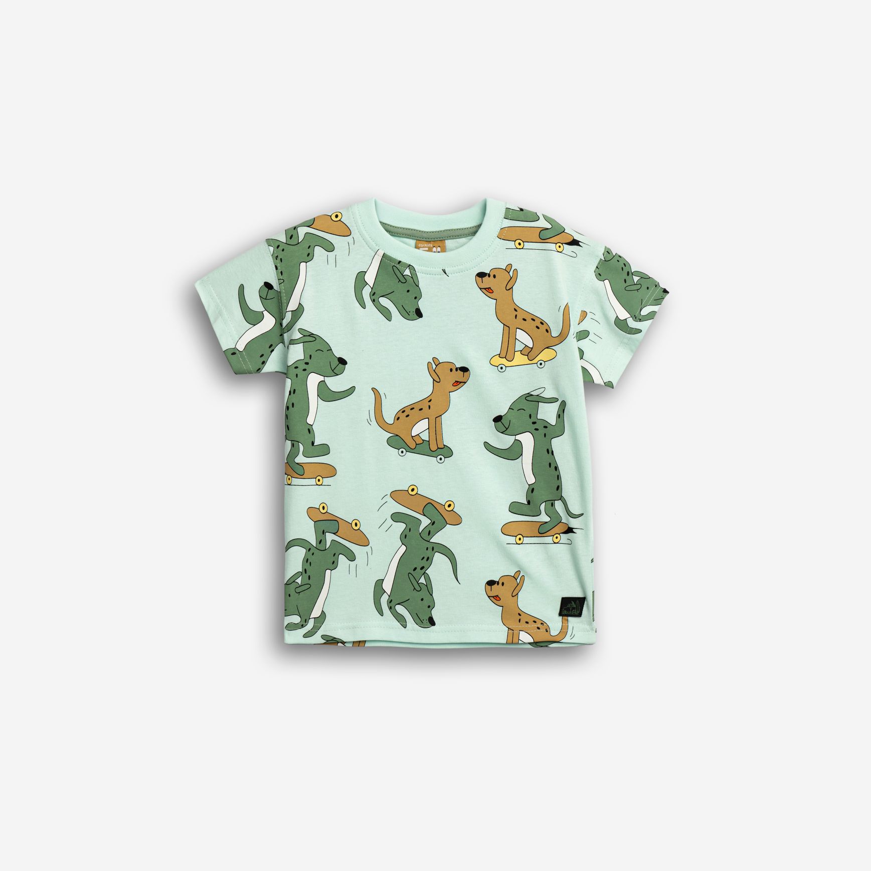 T-shirt jersey with printing (animals with skate) allover in color light laqua for boys 1-6 years