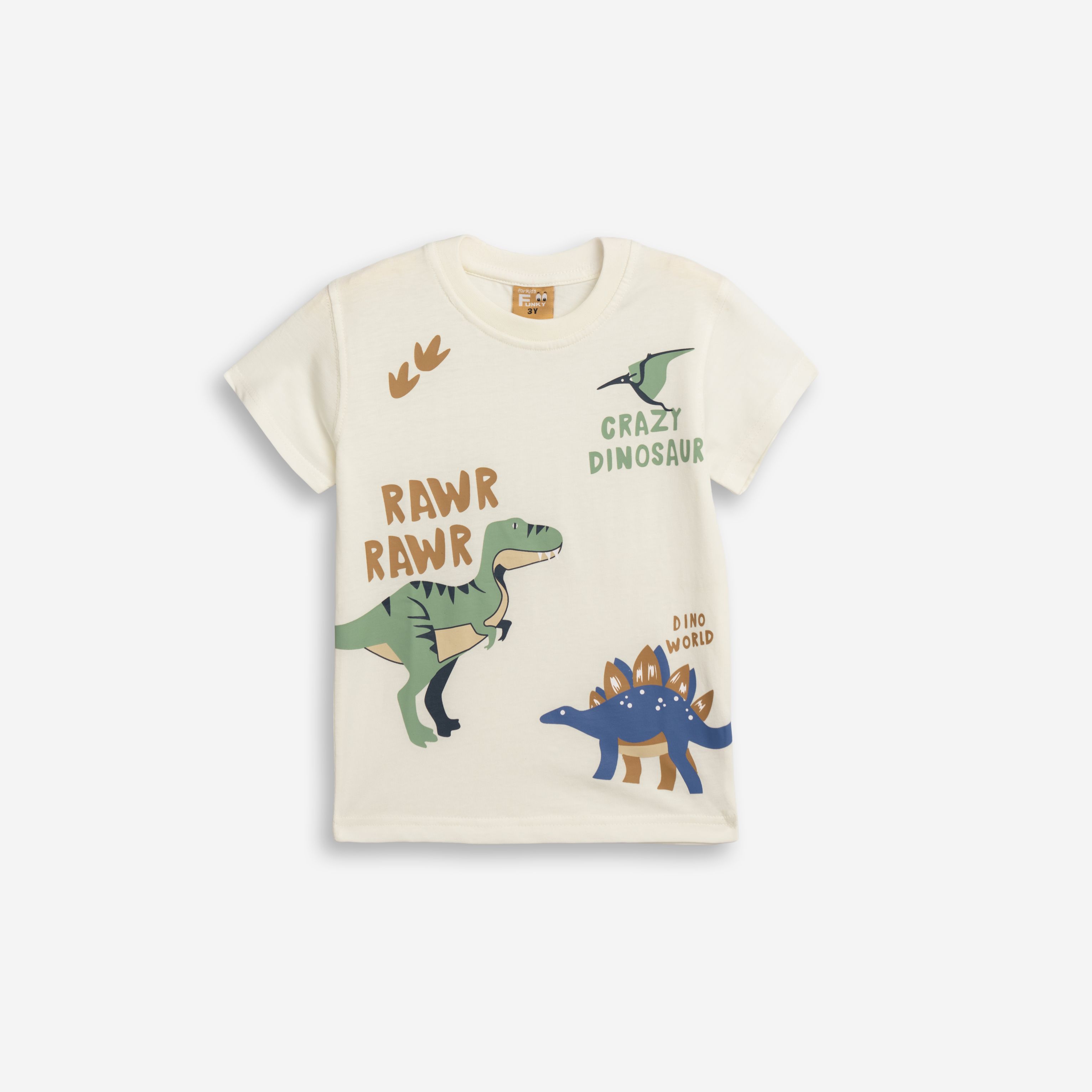 T-shirt jersey with printing (dinosaurs) in color ecru for boys 1-6 years