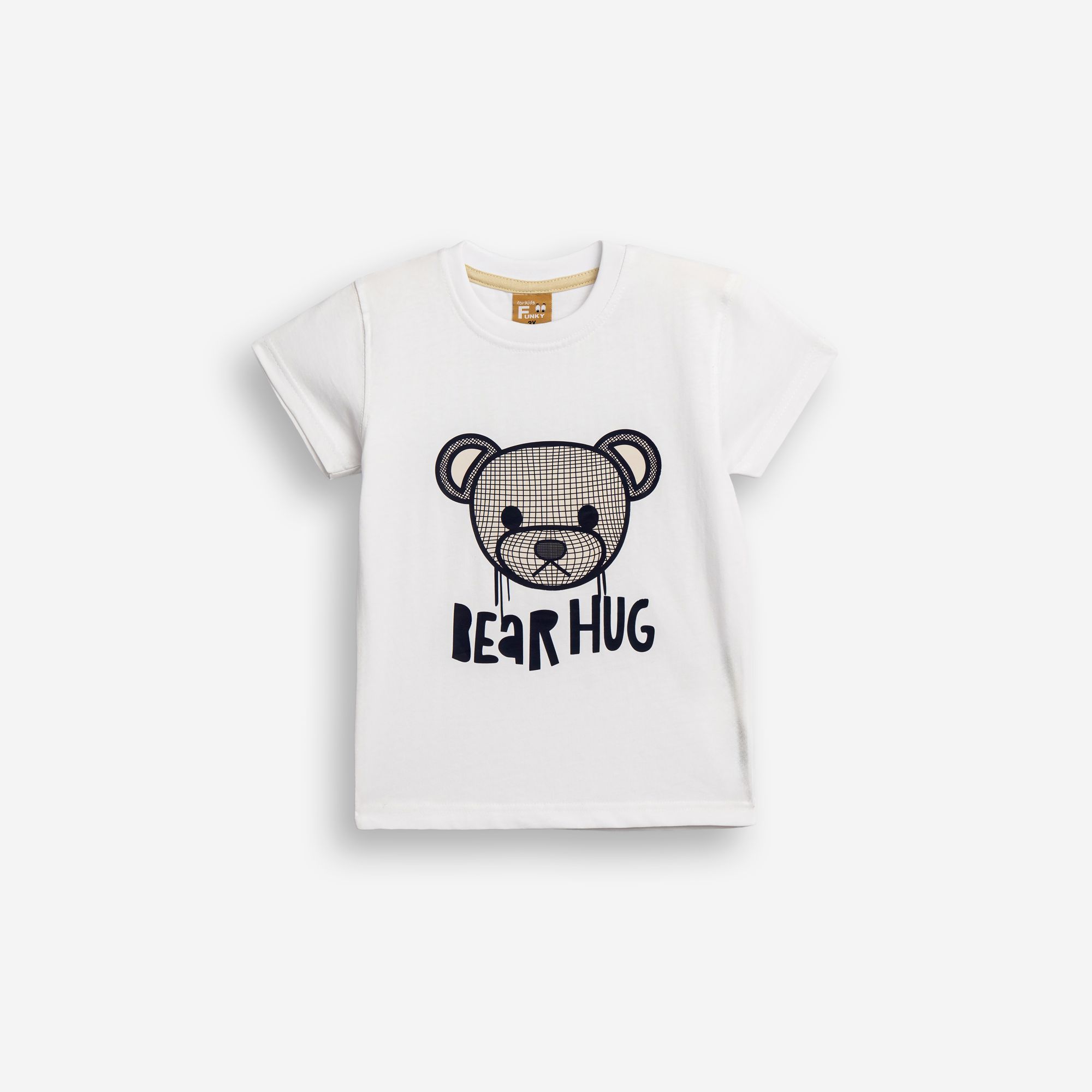 T-shirt jersey with printing (bear hug) in color white for boys 1-6 years