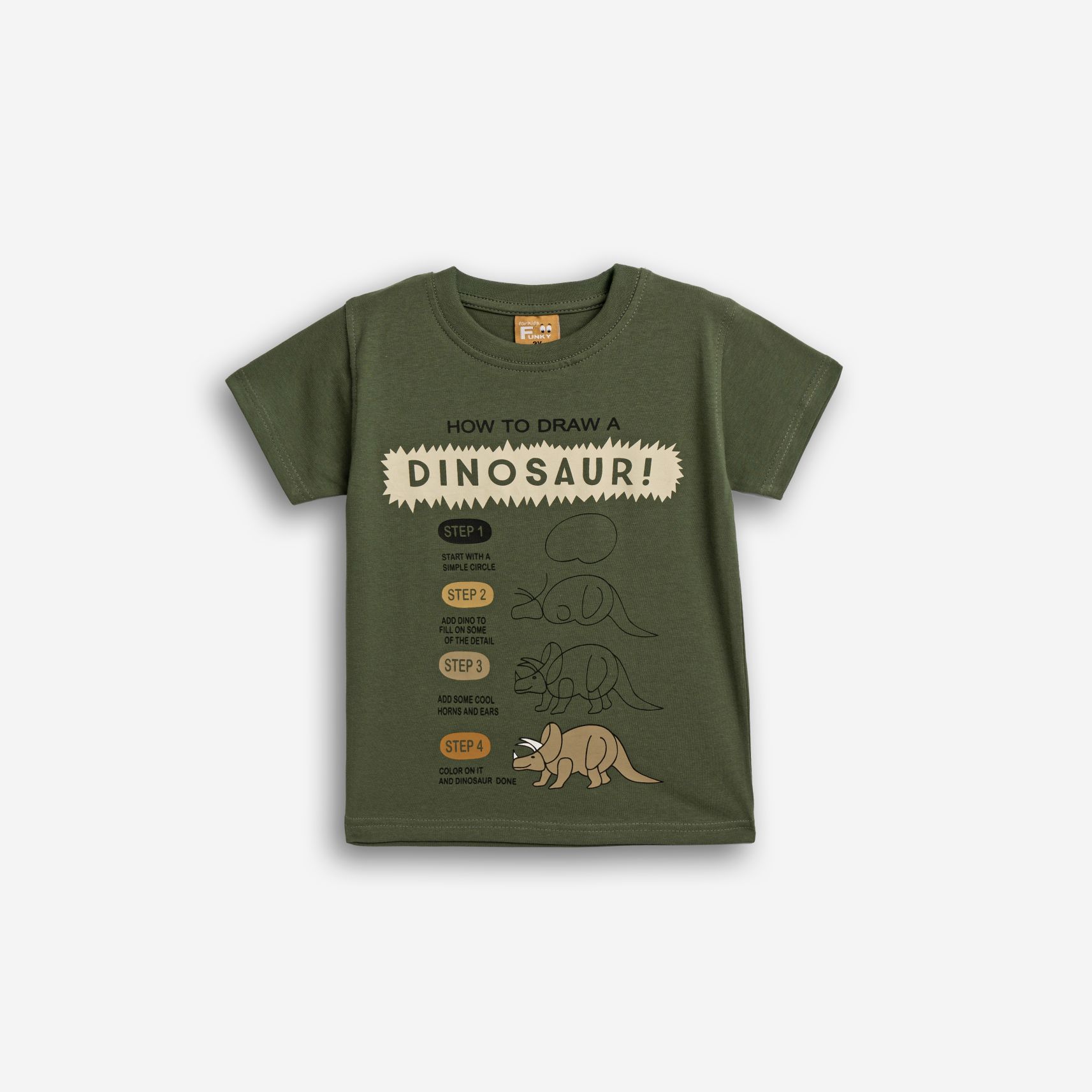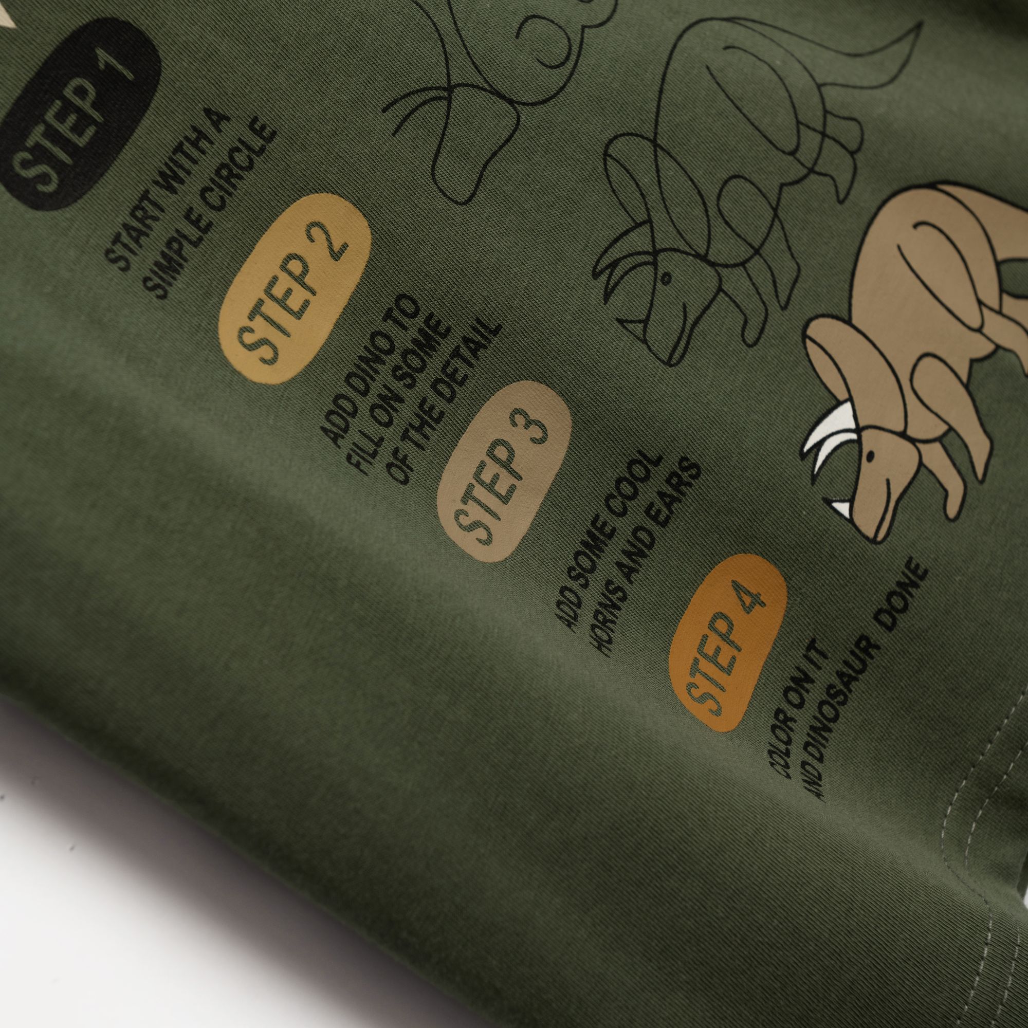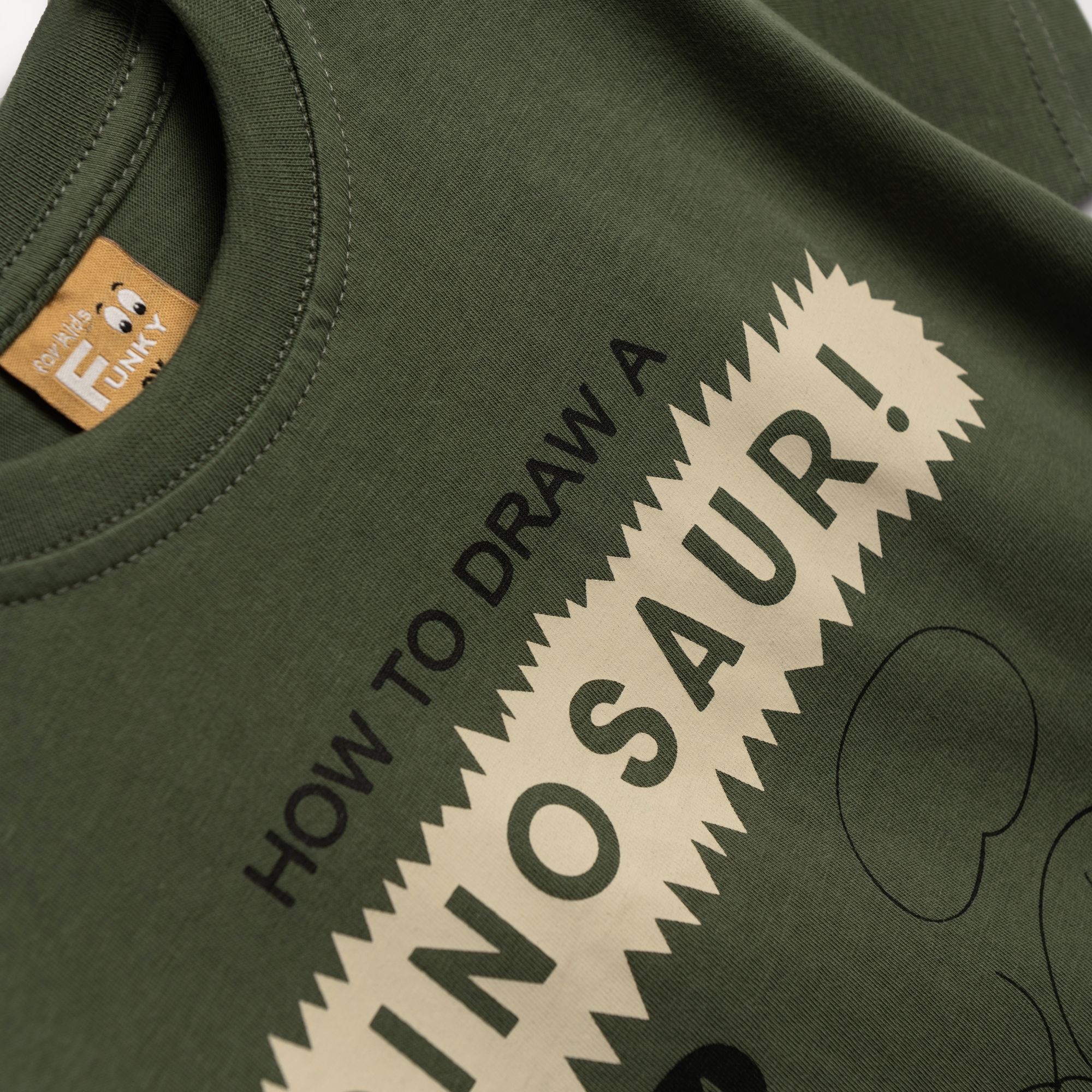T-shirt jersey with printing (how to draw a dinosaur) in color khaki for boys 1-6 years