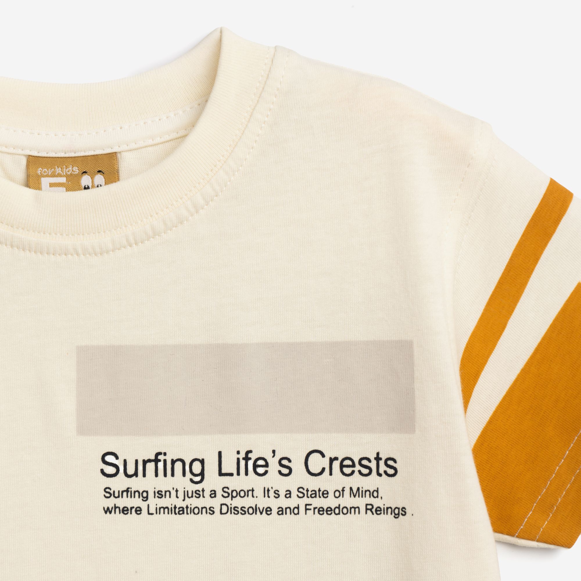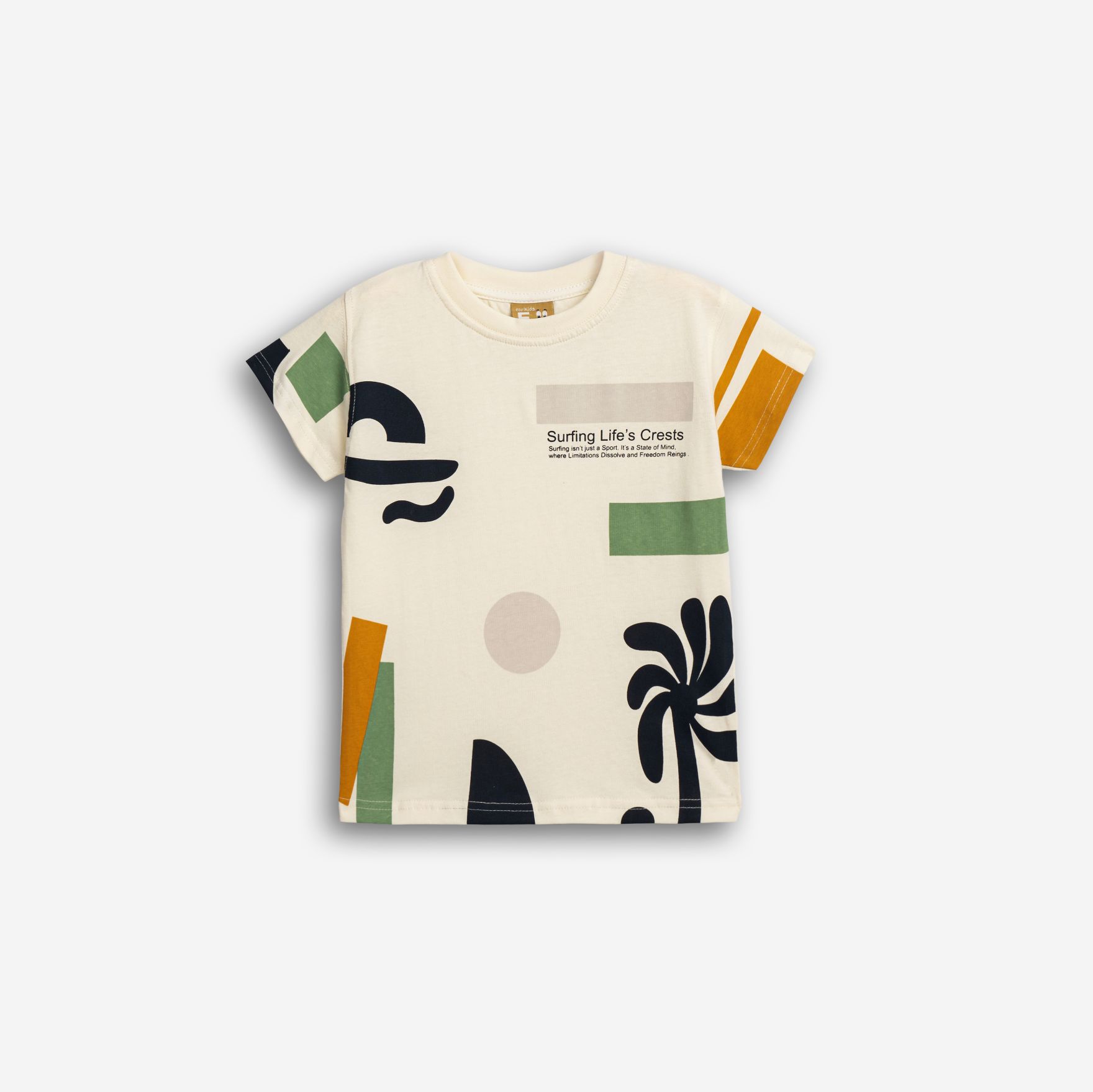 T-shirt jersey with printing (surfing life's crests) in color ecru for boys 1-6 years
