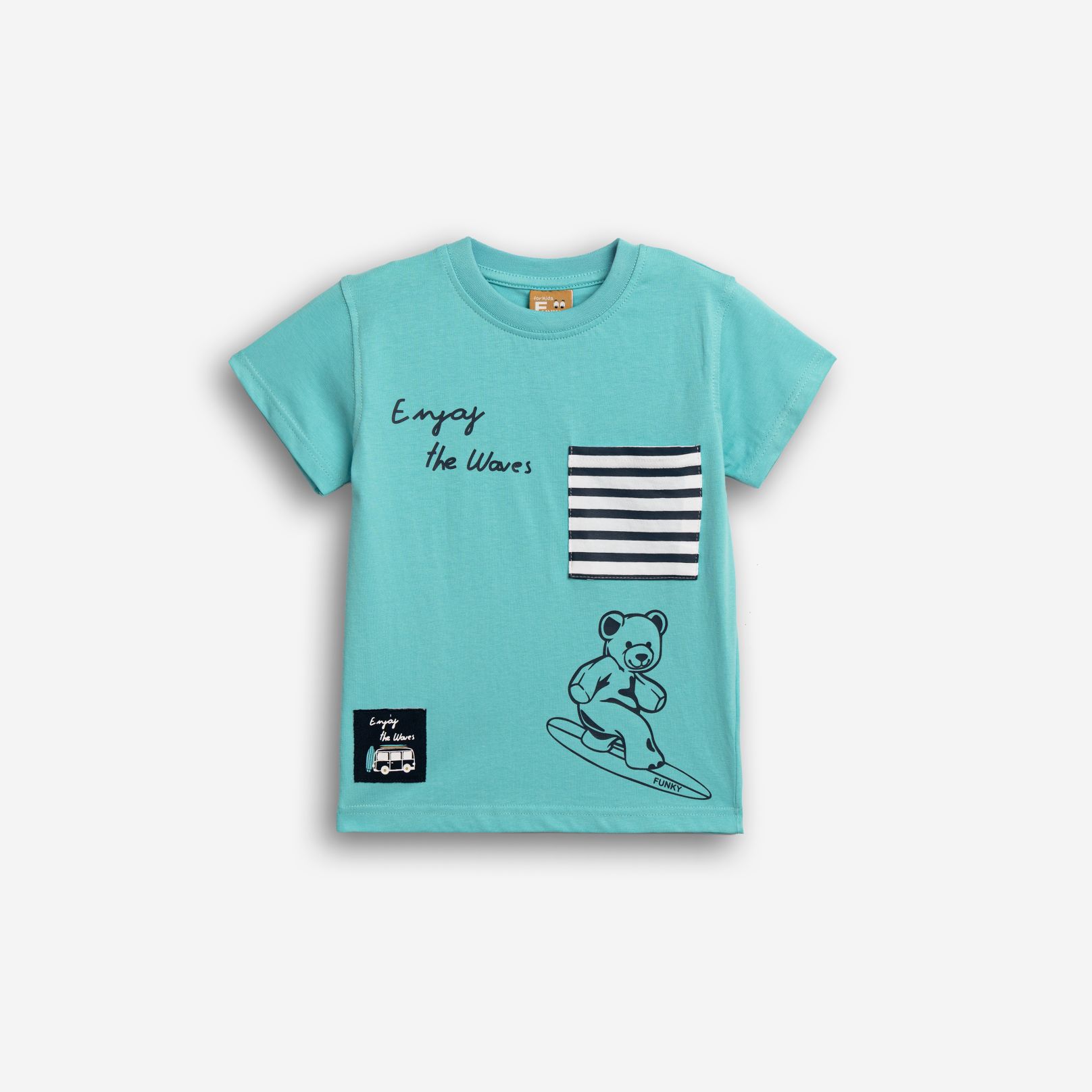 T-shirt jersey with printing (teddy bear) in color turquoise for boys 1-6 years