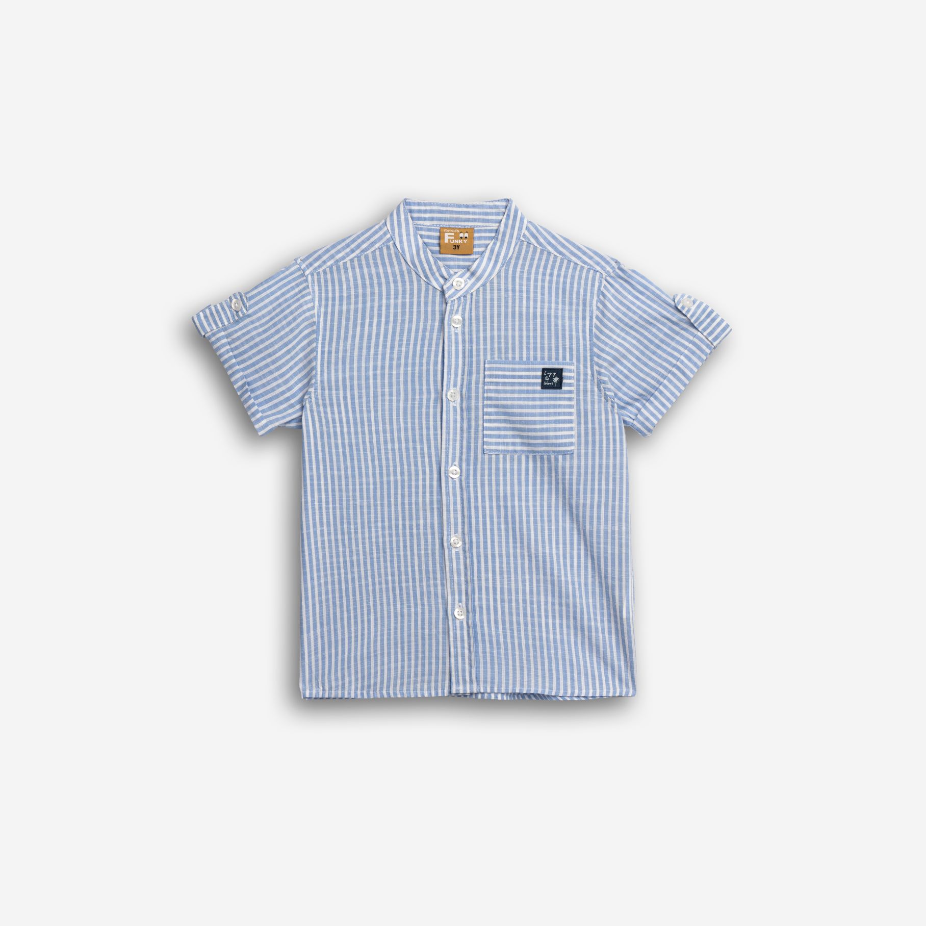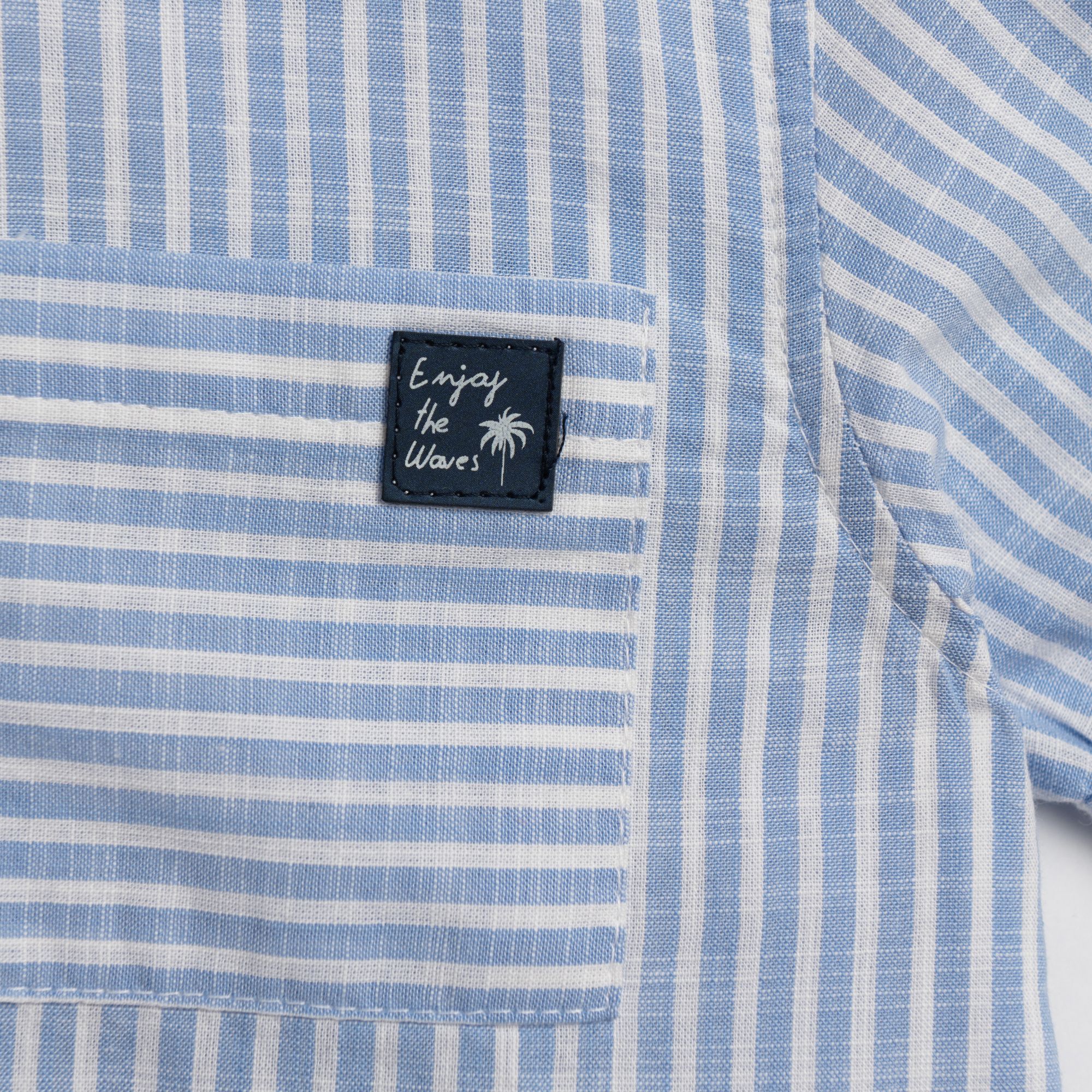 Shirt short-sleeved poplin with pocket in color white-cyan stripe for boys 1-6 years
