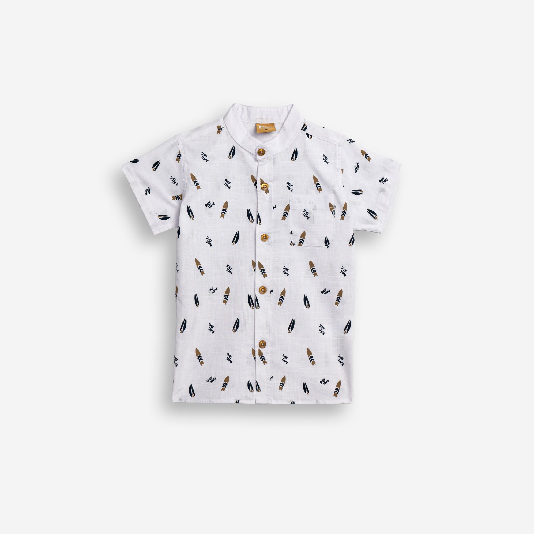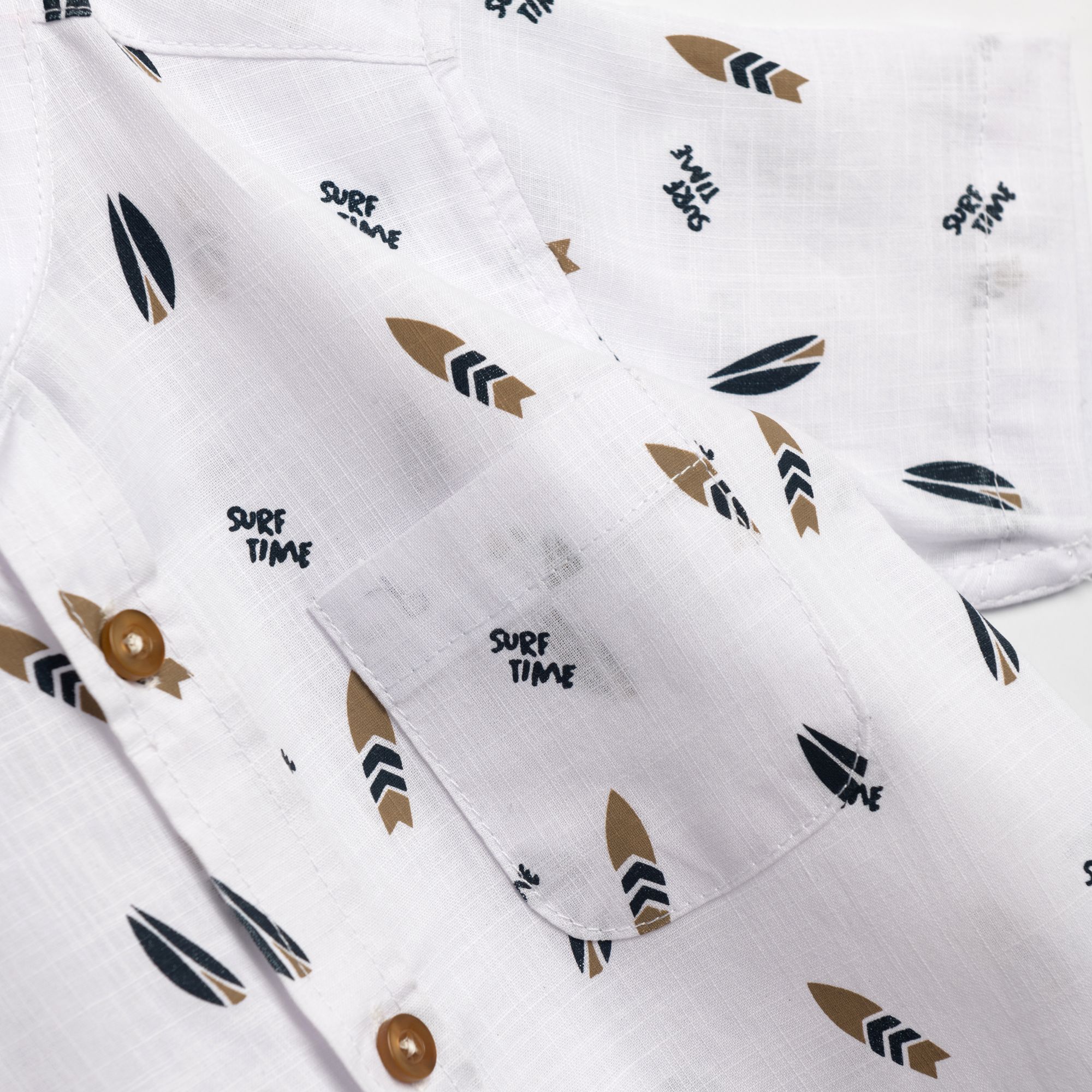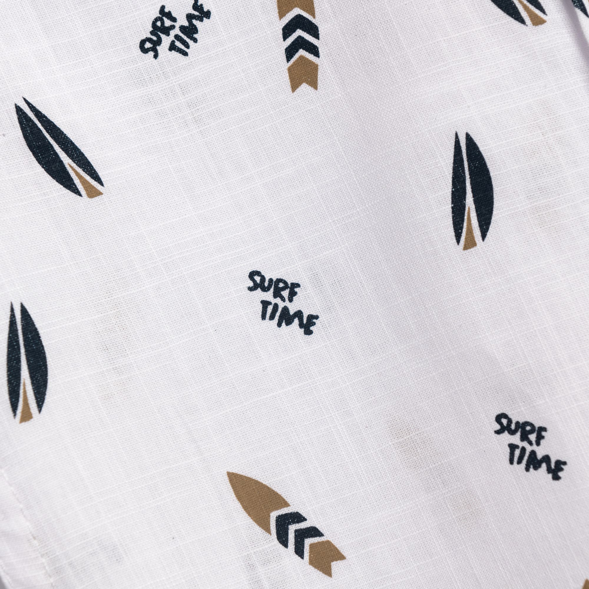 Shirt short-sleeved linen with printing (surfboards) in color white for boys 1-6 years
