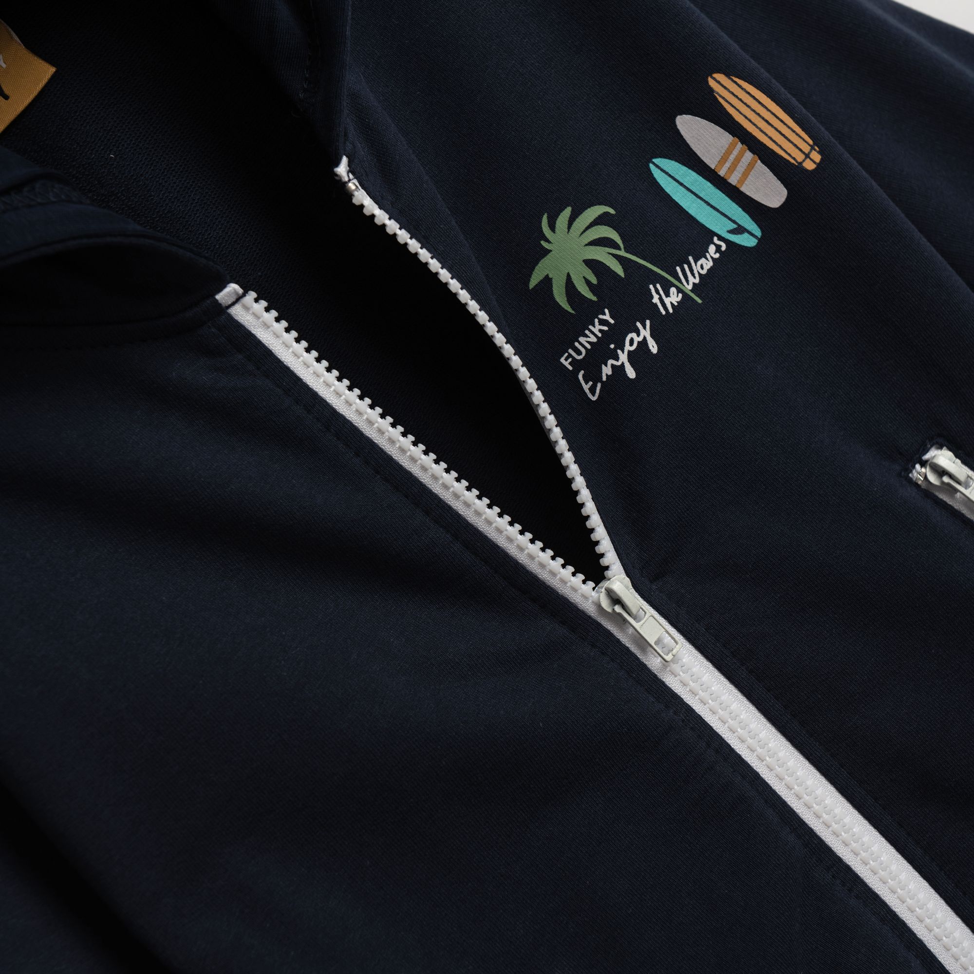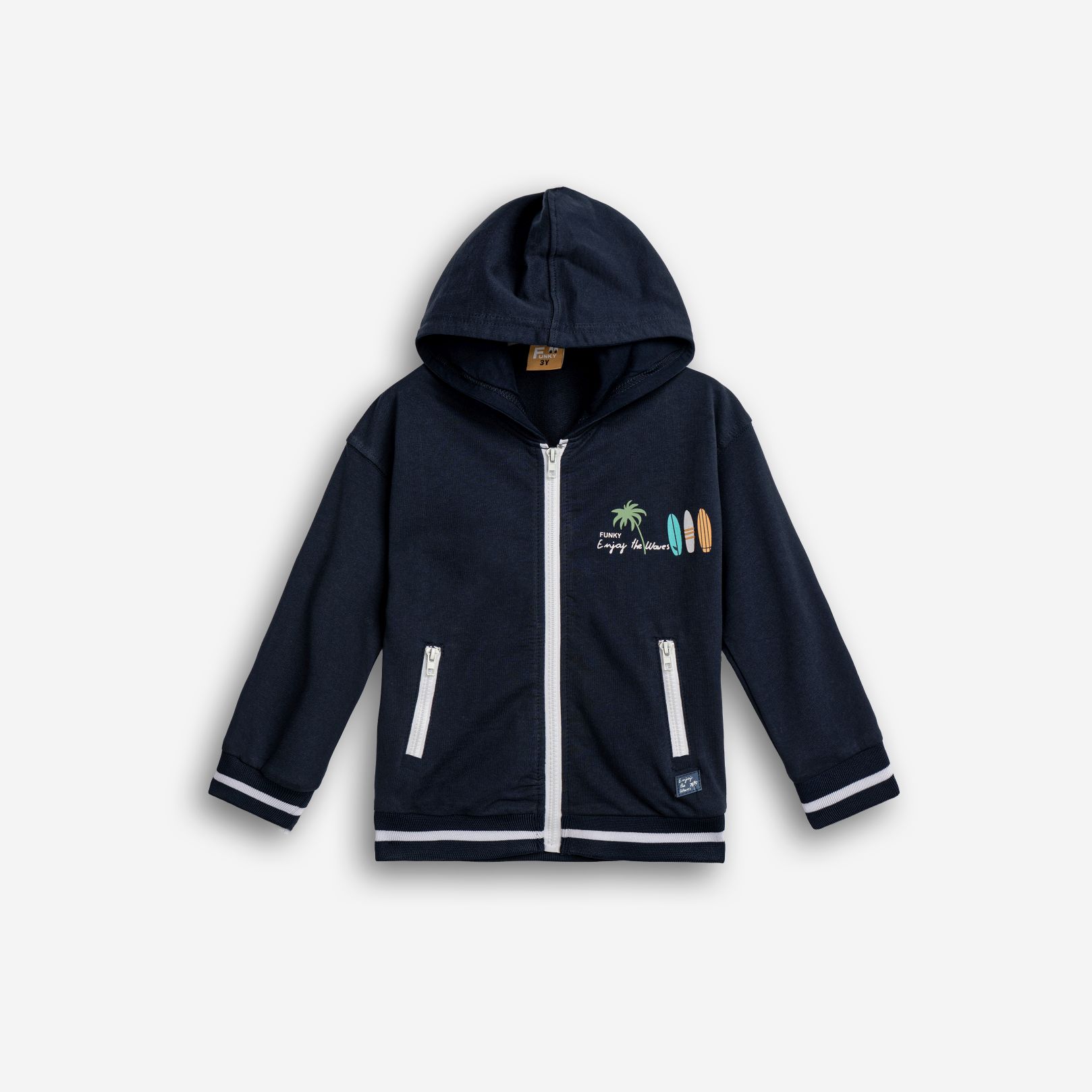 Jacket fleece with printing (enjoy the waves) in color blue for boys 1-6 years
