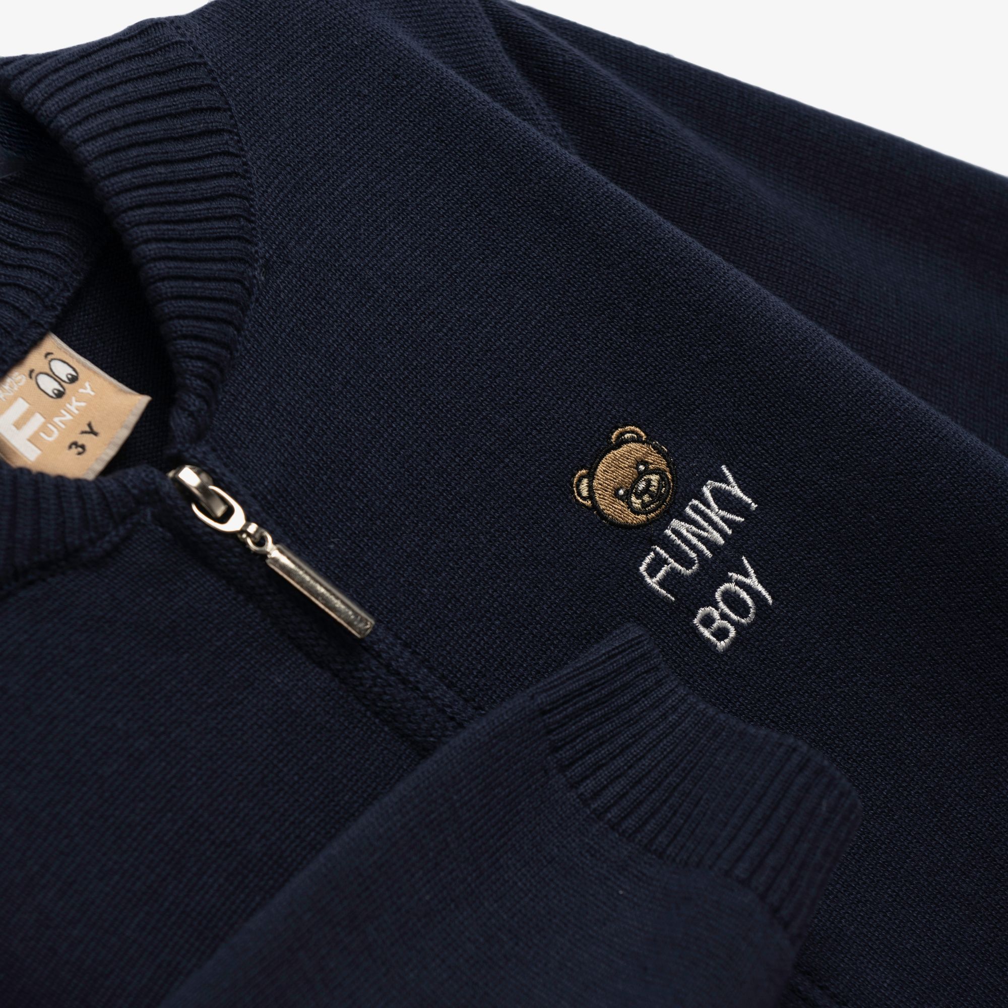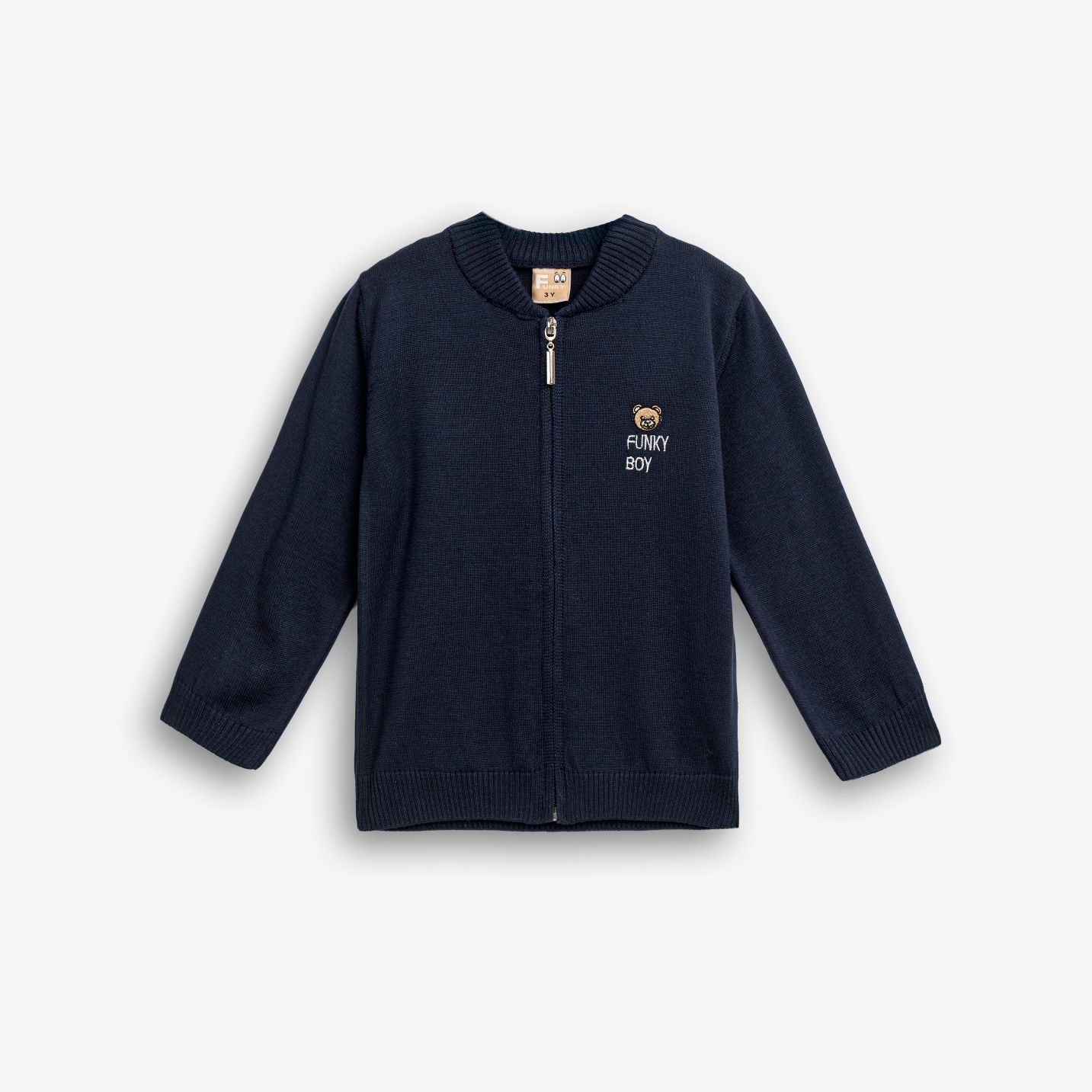 Jacket knitted with printing (funky boy) in color blue for boys 1-6 years