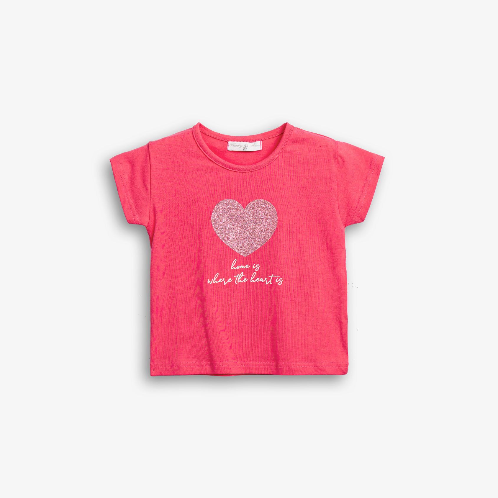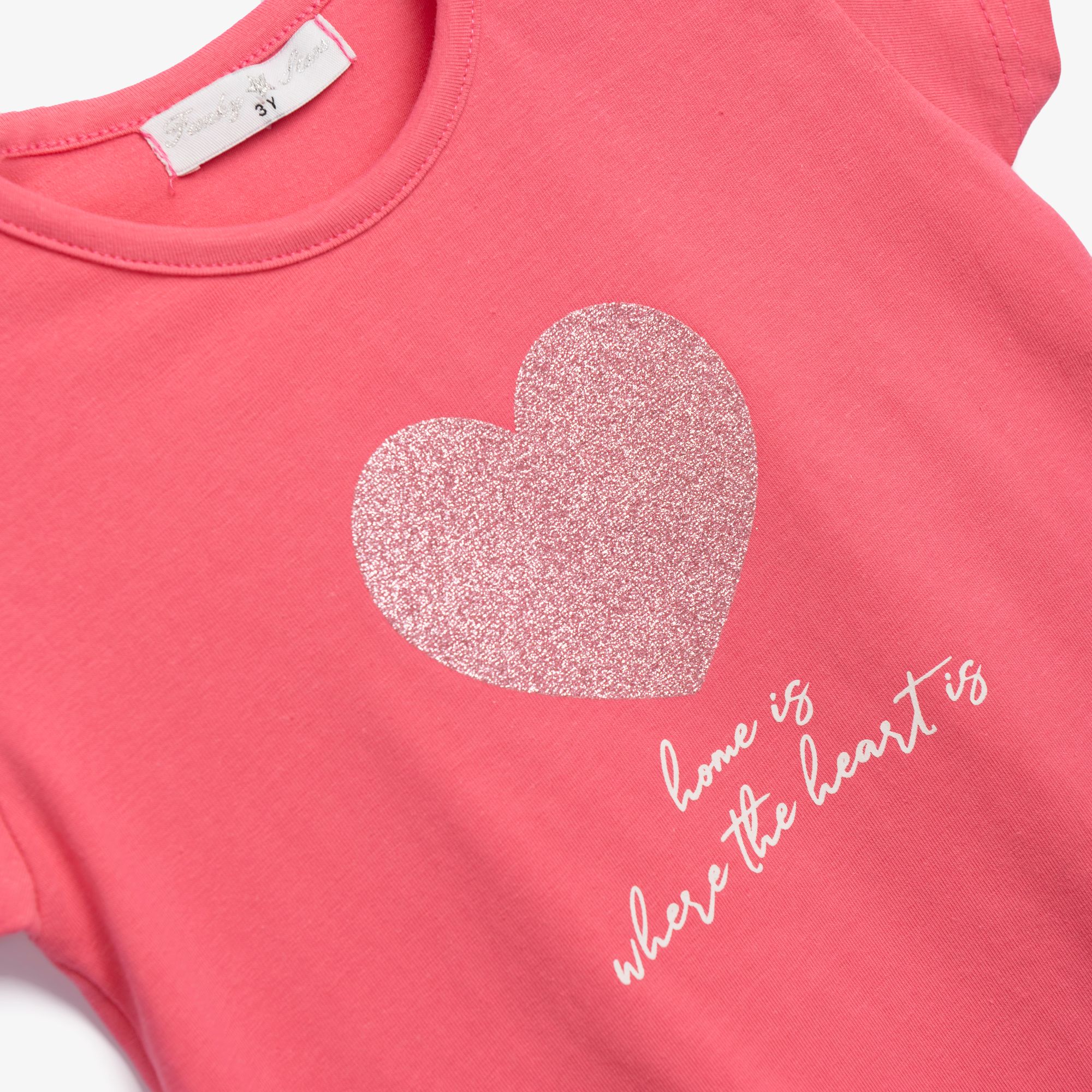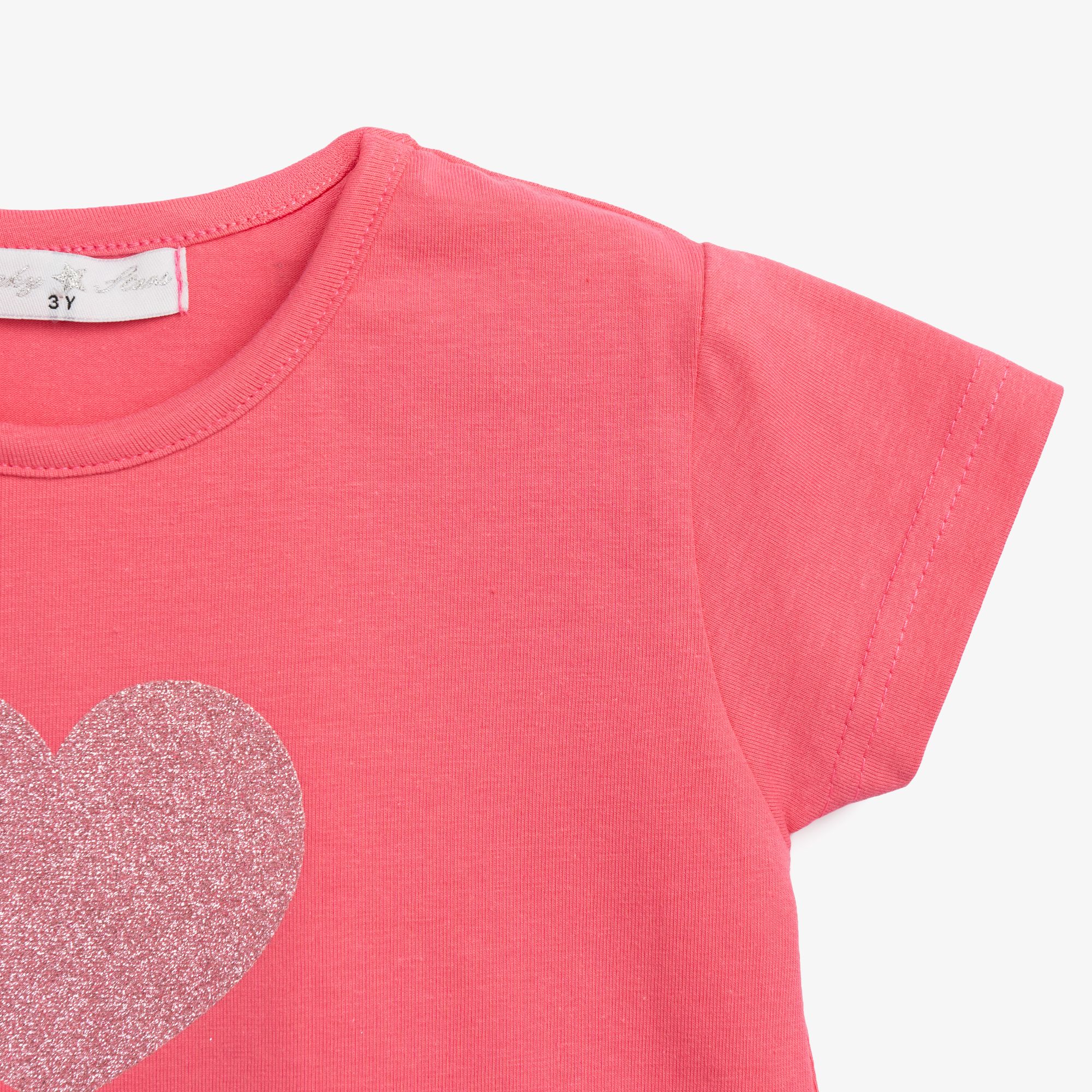 Blouse short-sleeved jersey lycra with sequins in color pink flamingo for girls 1-6 years