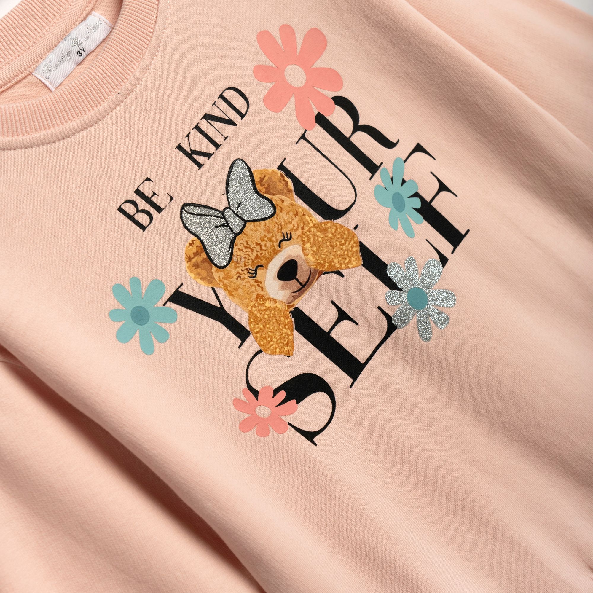 Set fleece with printing (be kind your self) and pants fleece with printing in color pink powder/black for girls 1-6 years