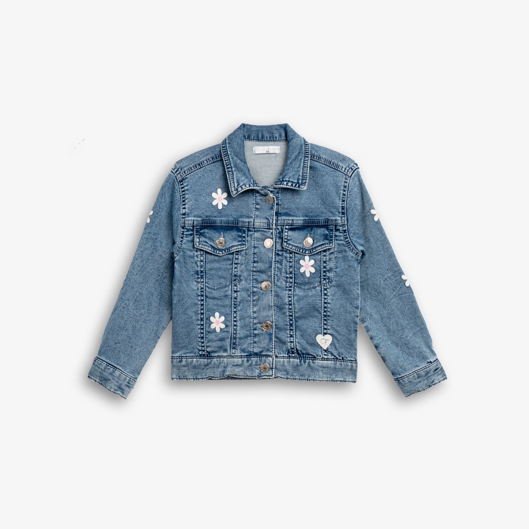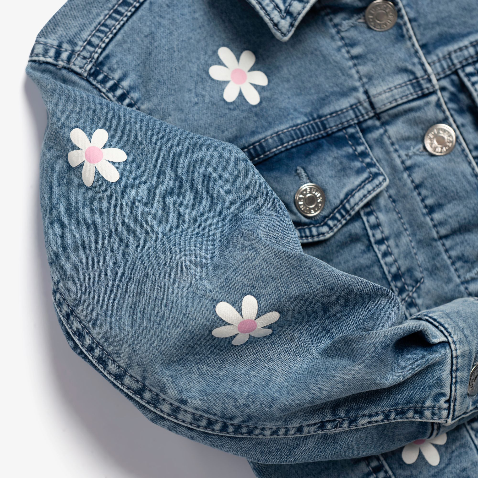 Jacket jean lycra with printing (chamomile) allover in color type for girls 1-6 years