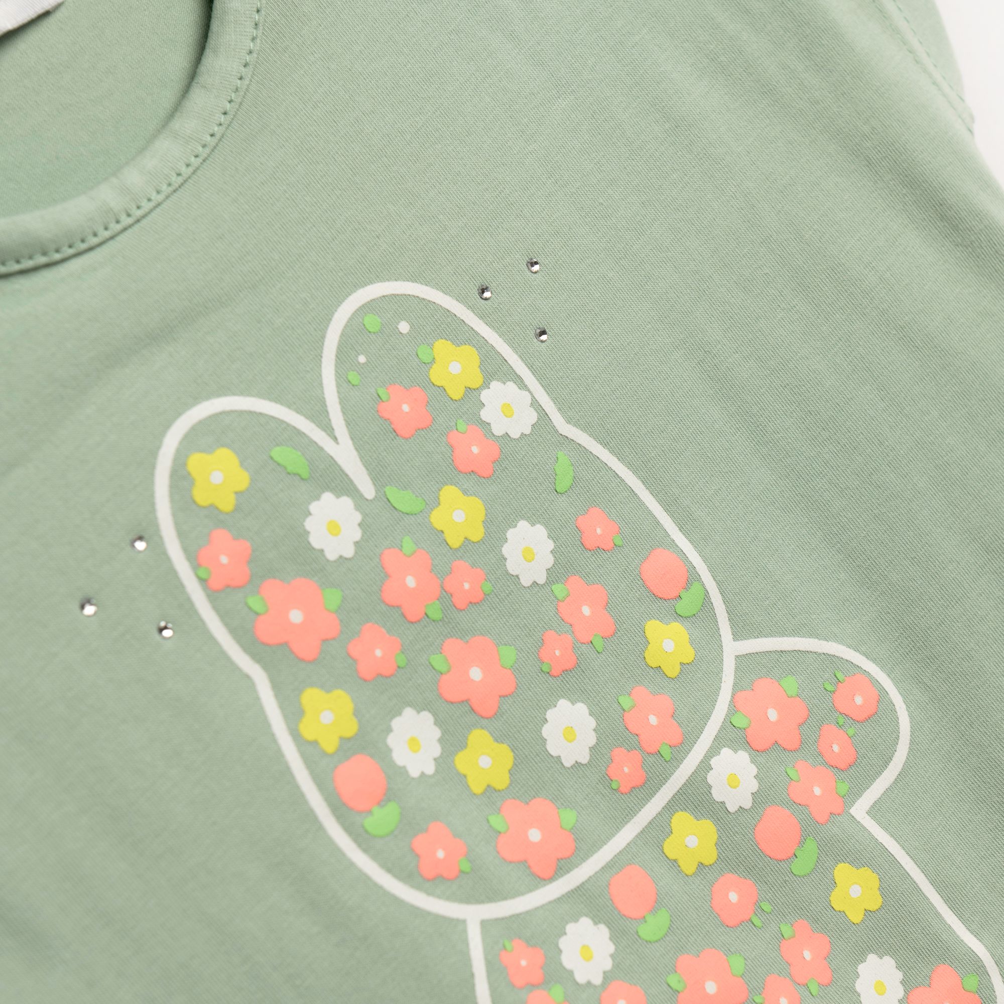 T-Shirt with printing (bunny) and leggings capri jersey lycra in color peanut/fluorescent light salmon for girls 1-6 years