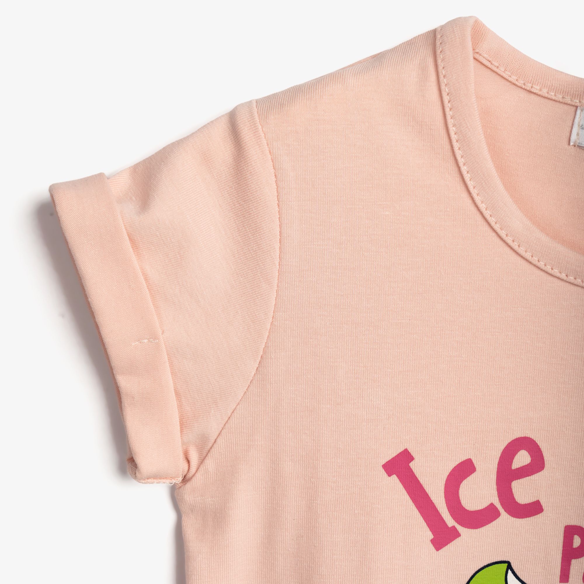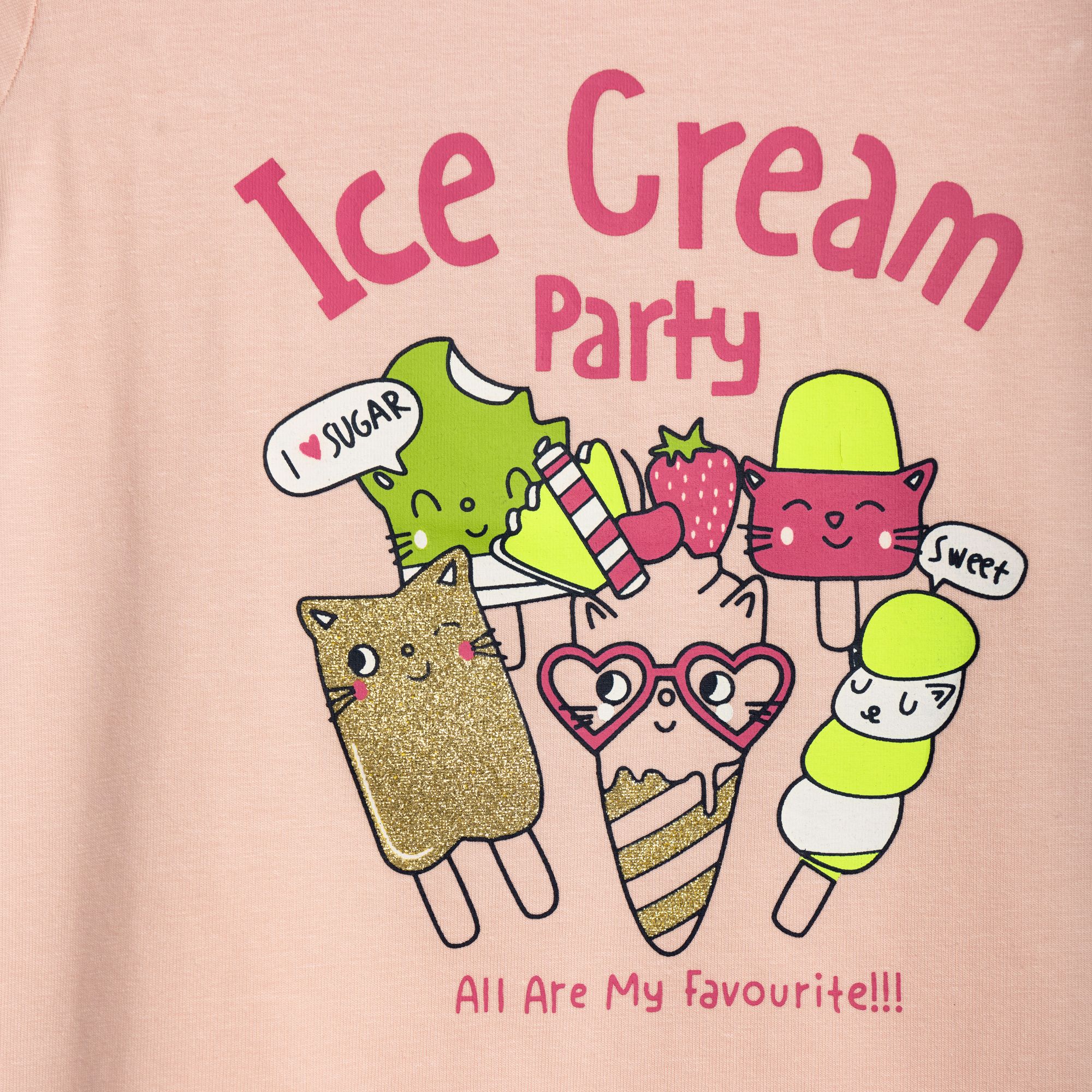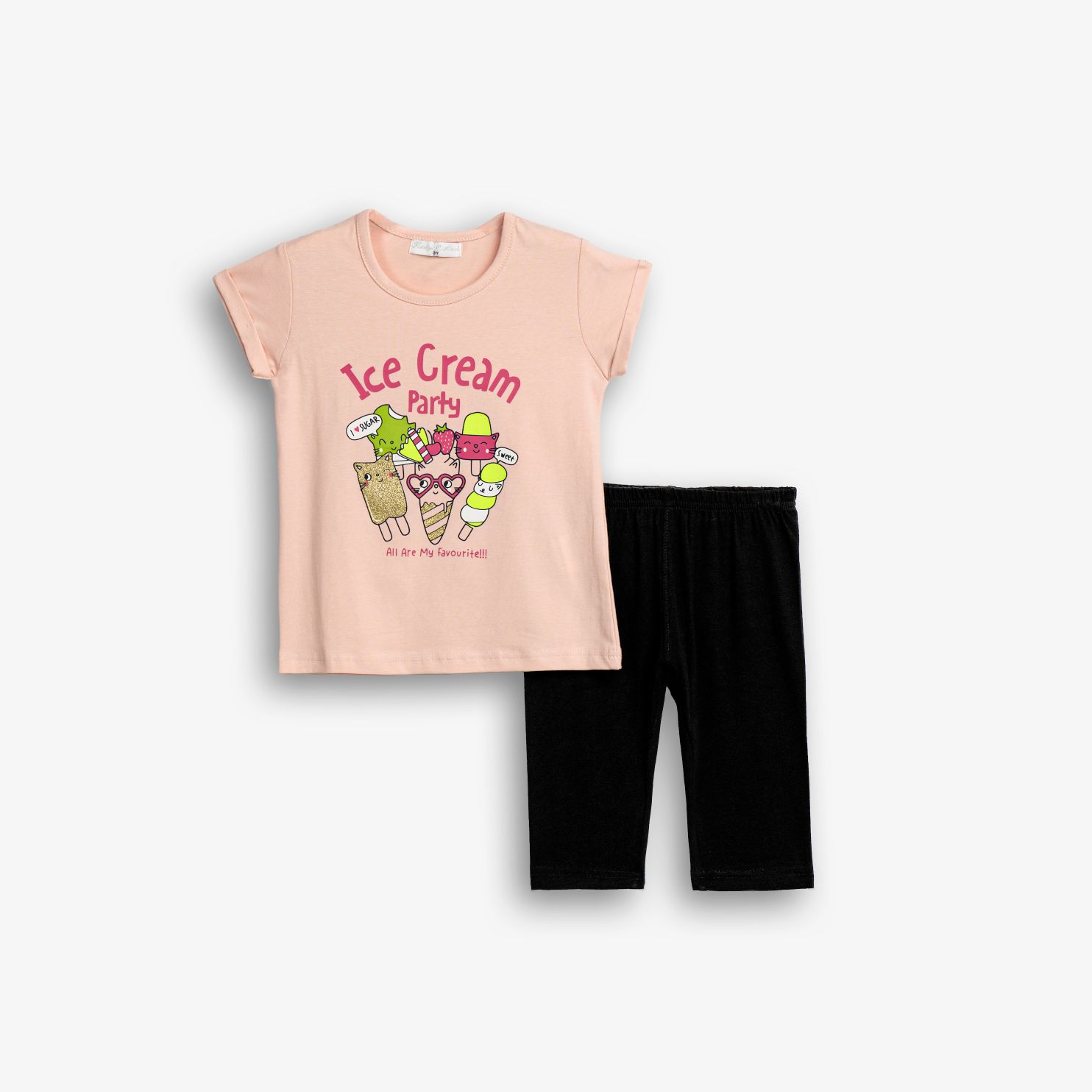 T-Shirt with printing (ice cream party) and leggings capri jersey lycra in color pink powder/black for girls 1-6 years