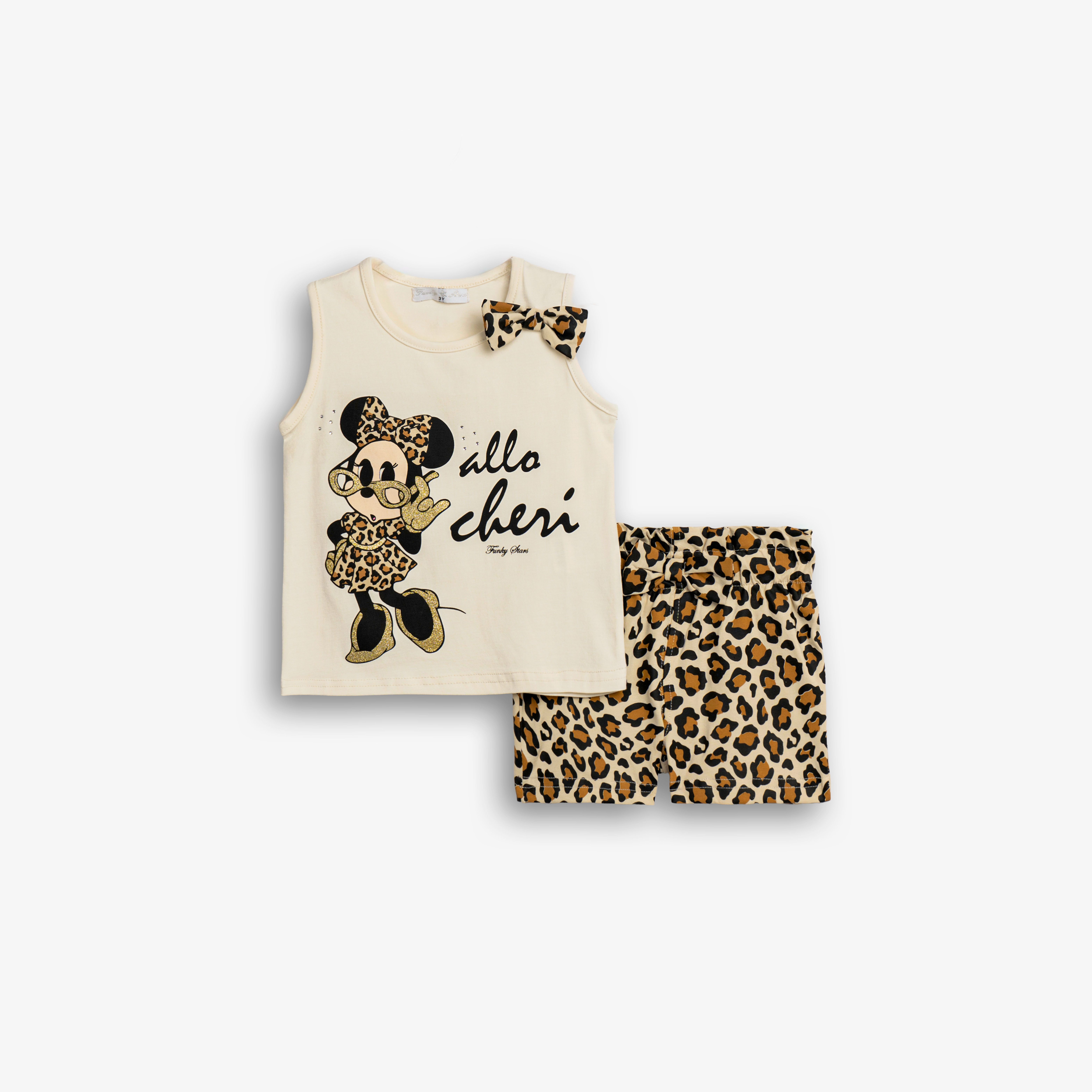 Set blouse jersey lycra with printing (minnie) and shorts with printing allover in color ecru/light beige for girls 1-6 years