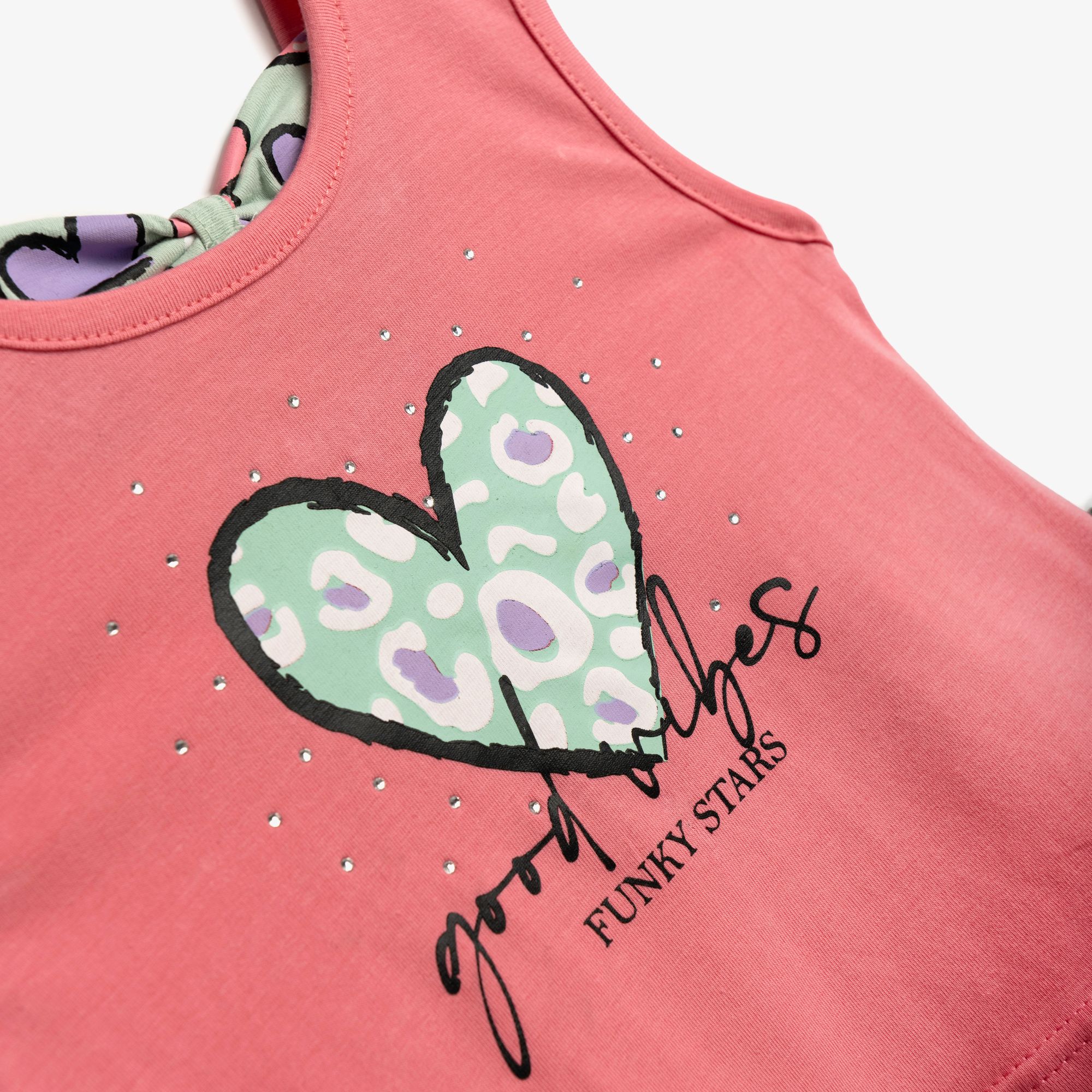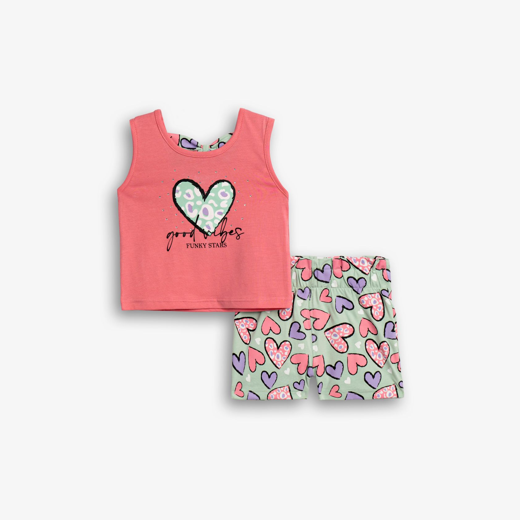 Set blouse jersey lycra with printing (heart) and shorts with printing allover in color crayon rouge-peanut/crayon rouge for girls 1-6 years