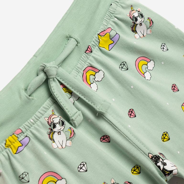 Set blouse jersey lycra with printing (unicorn) and fringes and shorts with printing allover in color crayon rouge/peanut for girls 1-6 years