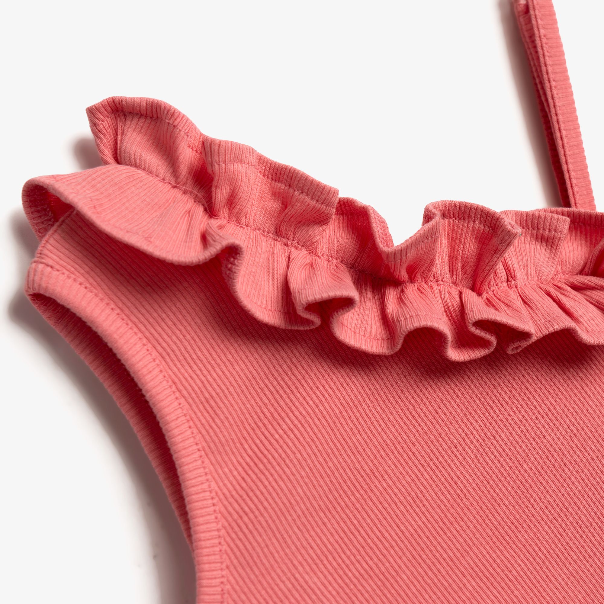 Set blouse rip and shorts with printing (flowers) allover in color crayon rouge/vanilla for girls 1-6 years