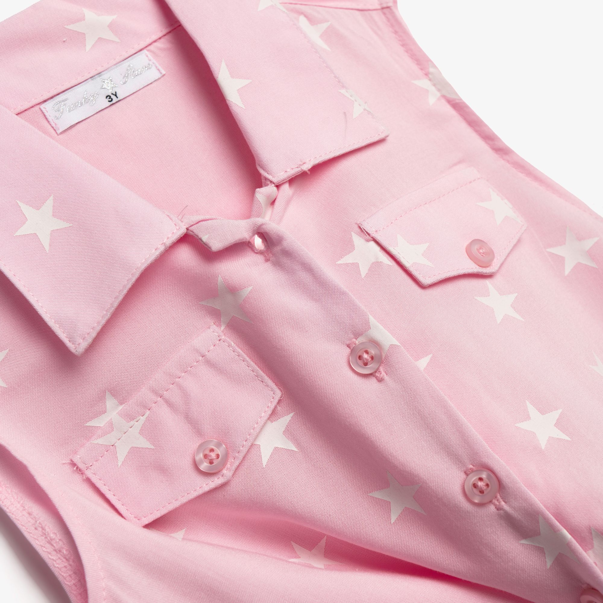Set shirt with printing (stars) allover and shorts poplin and jean lycra with belt in color lady pink/white for girls 1-6 years