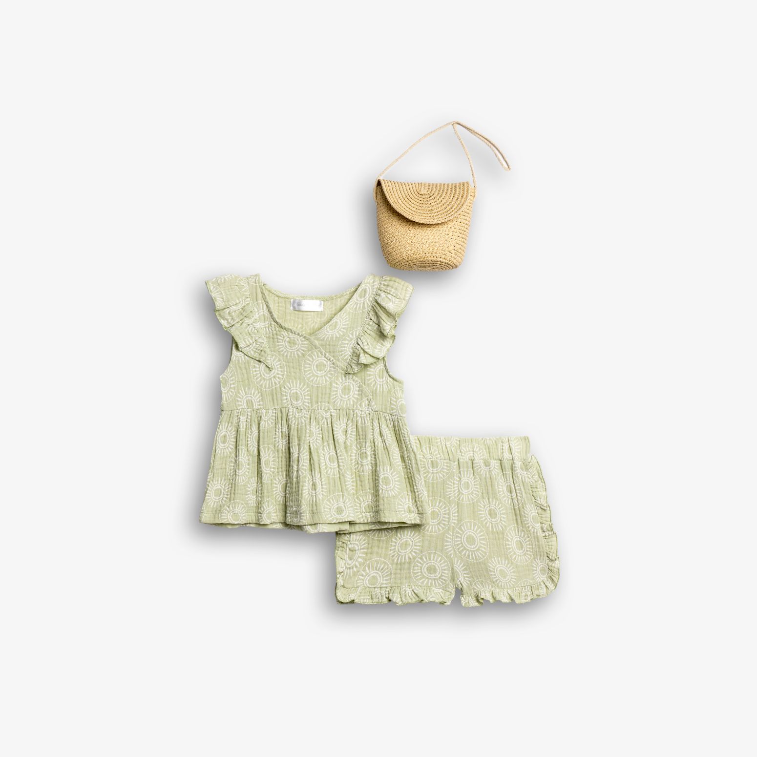Set blouse and shorts and bag in color type for girls 1-6 years